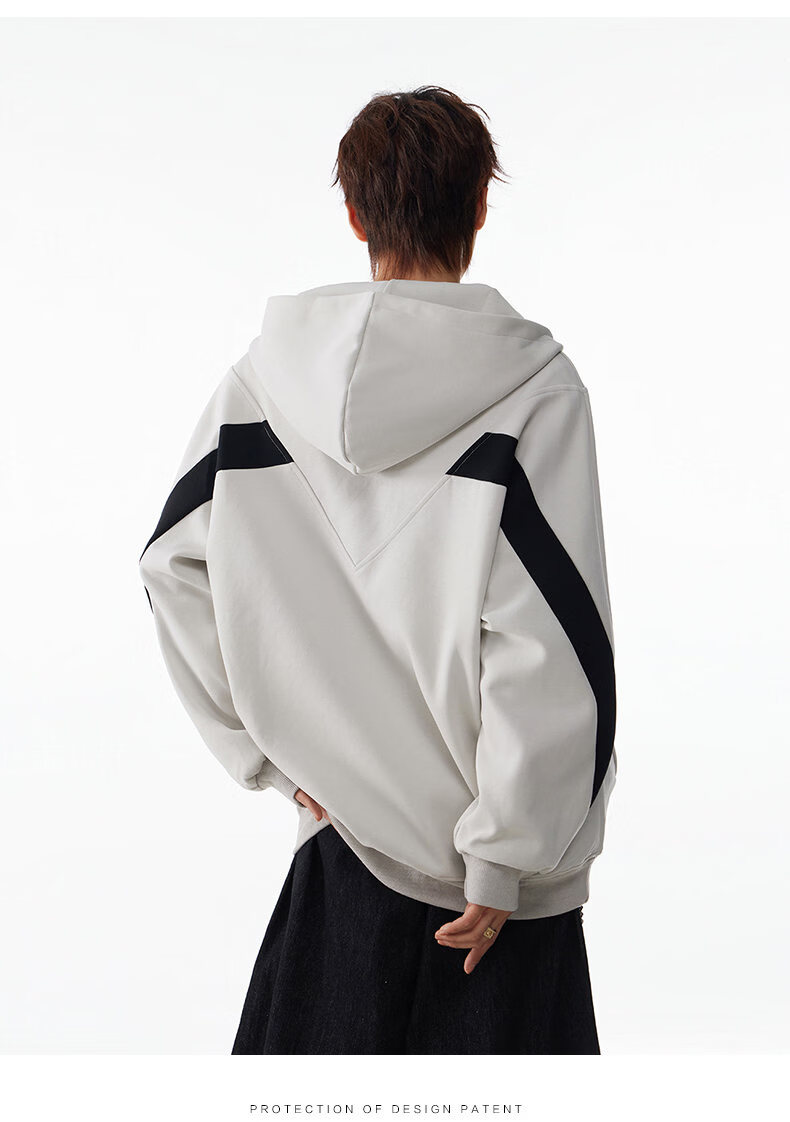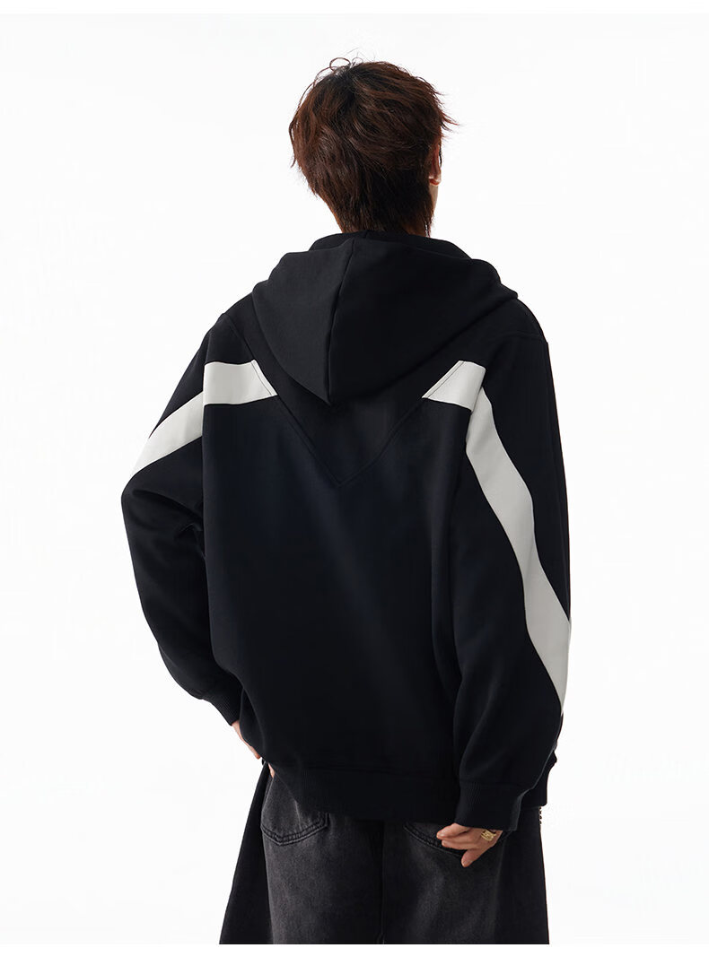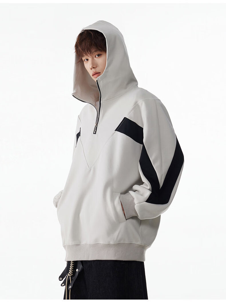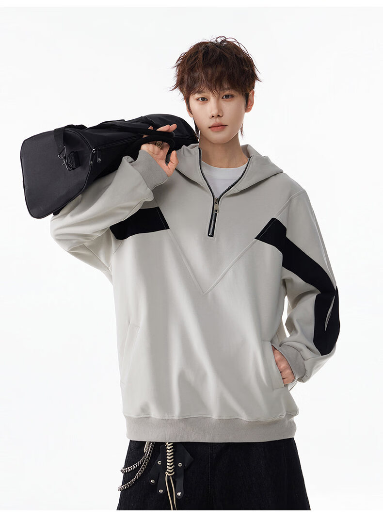 NEW OR MODE美式条纹撞色半拉链连帽卫衣男春季新款潮牌宽松休闲百搭帽衫外套 黑色【高品质】 M 【建议90-110斤】