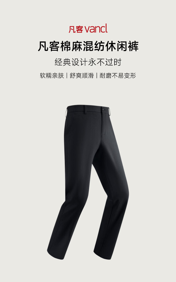 凡客诚品(VANCL)凡客夏季新款棉麻混纺休闲直筒裤宽松透气 蓝色 30