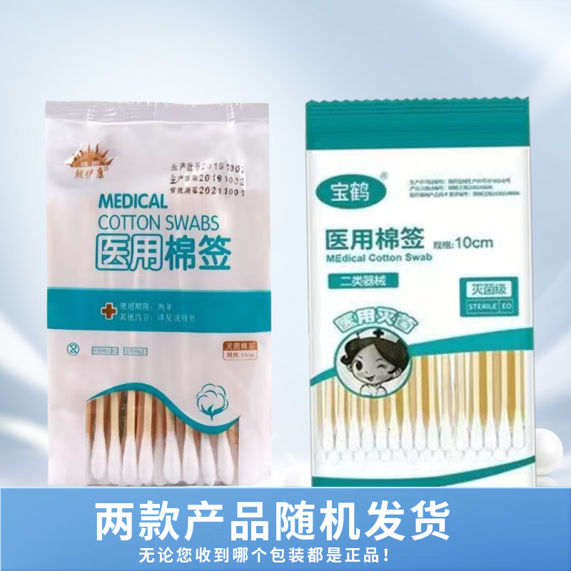 医用棉签无菌消毒棉棒一次性清洁掏耳朵单头棉花木棒 医用棉签10cm 50支/包【1包】