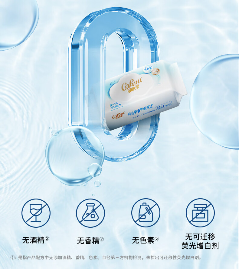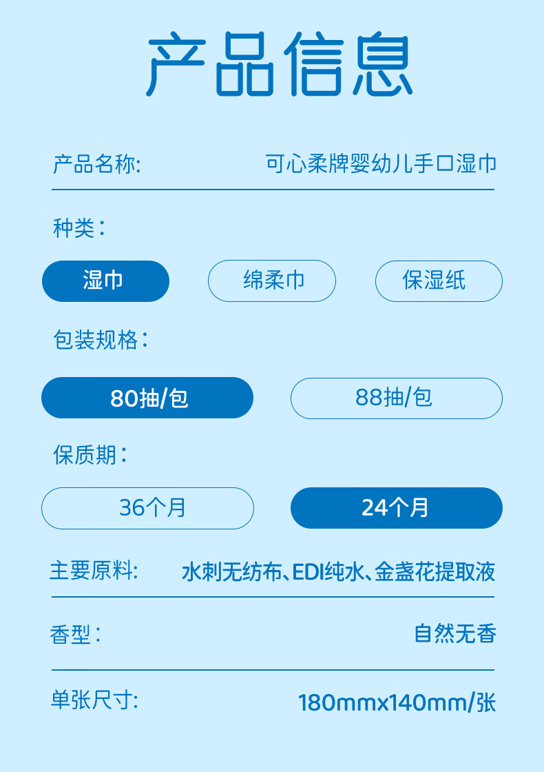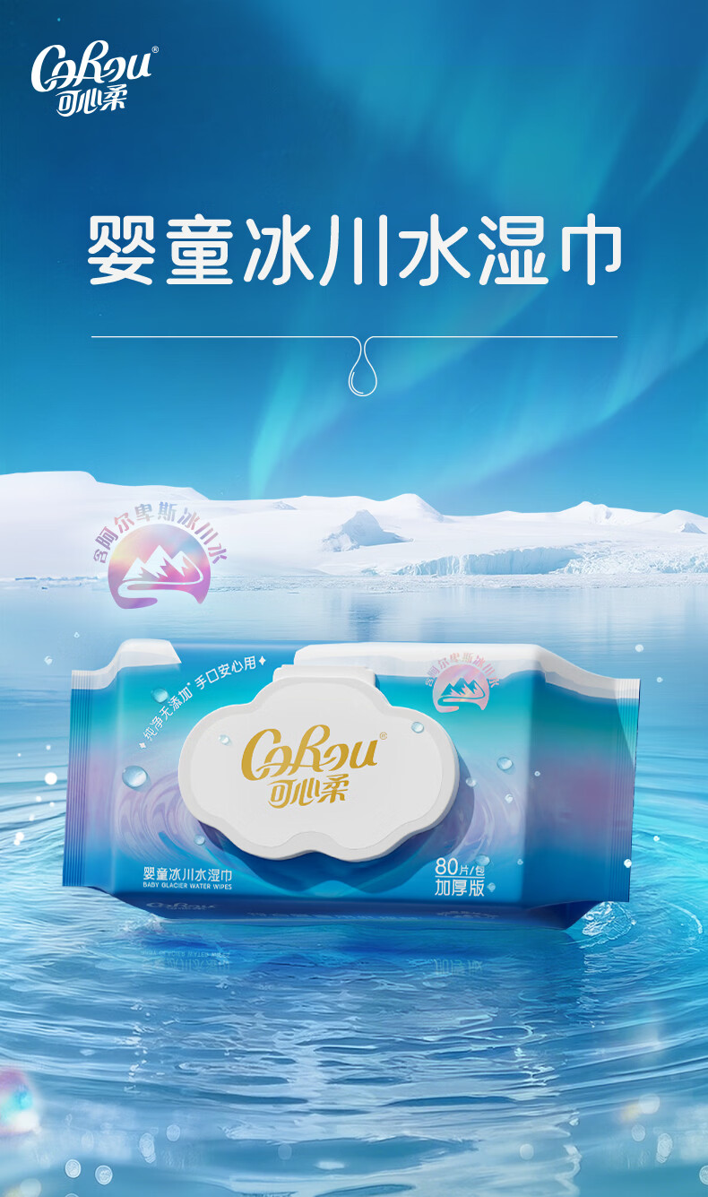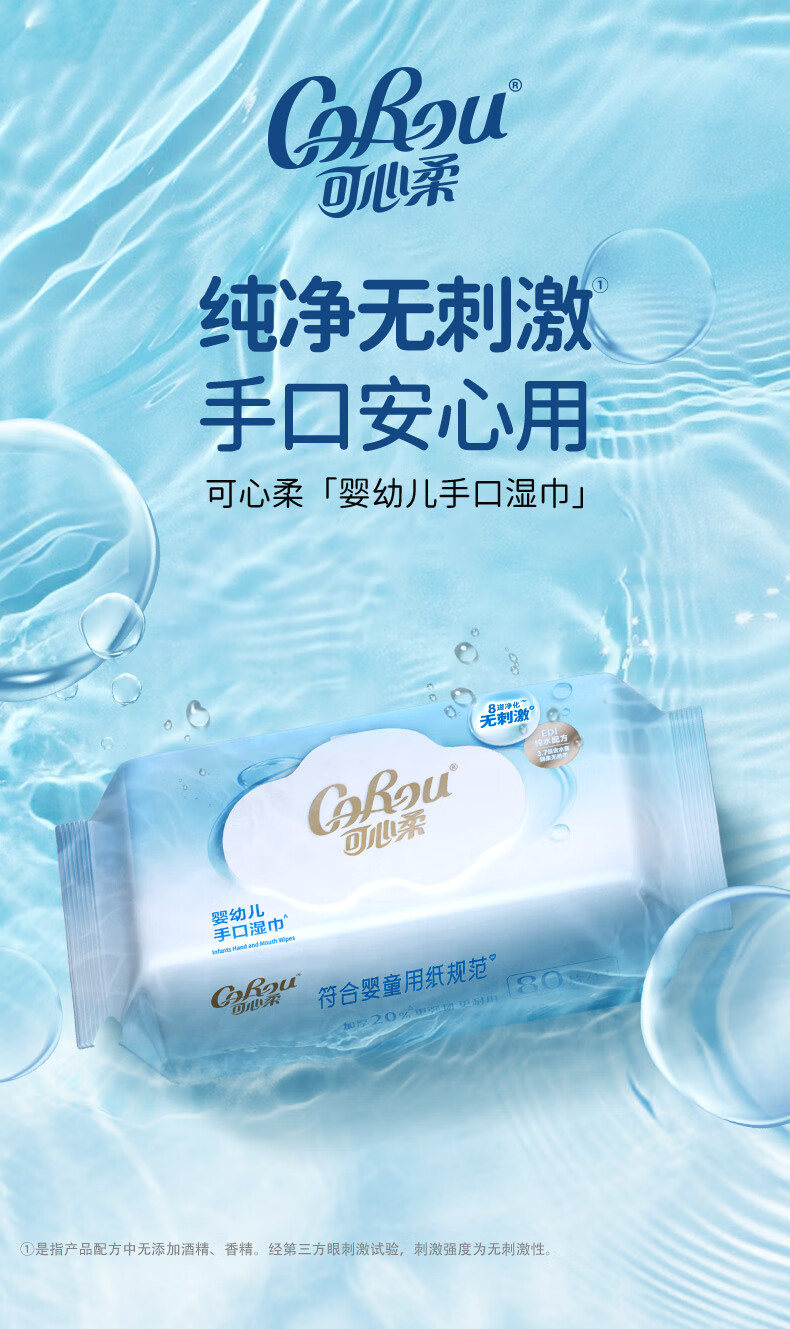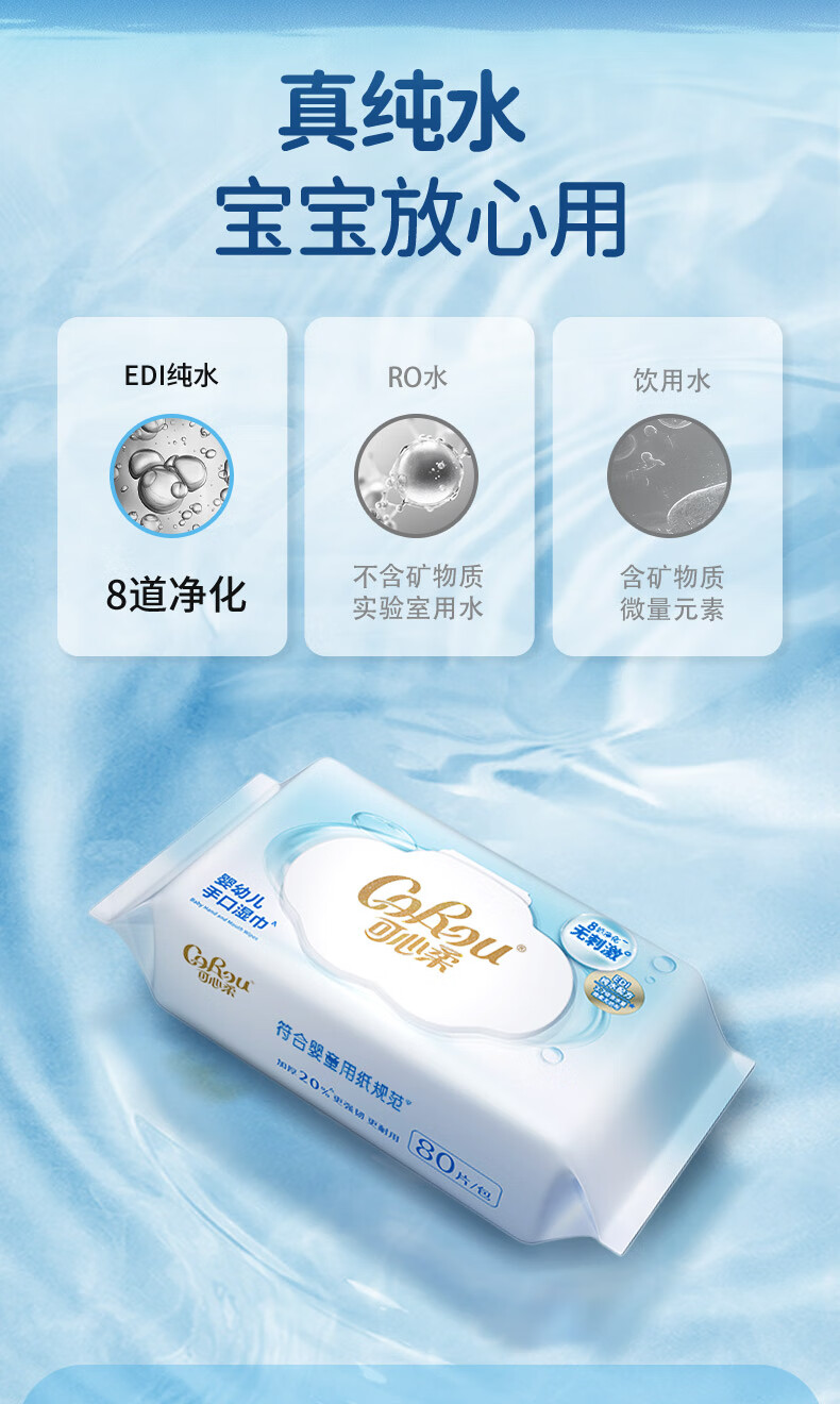 可心柔(COROU)婴儿湿巾EDI纯水湿巾儿童宝宝新生儿手口专用无酒精湿纸巾 【体验装】 80抽 1包