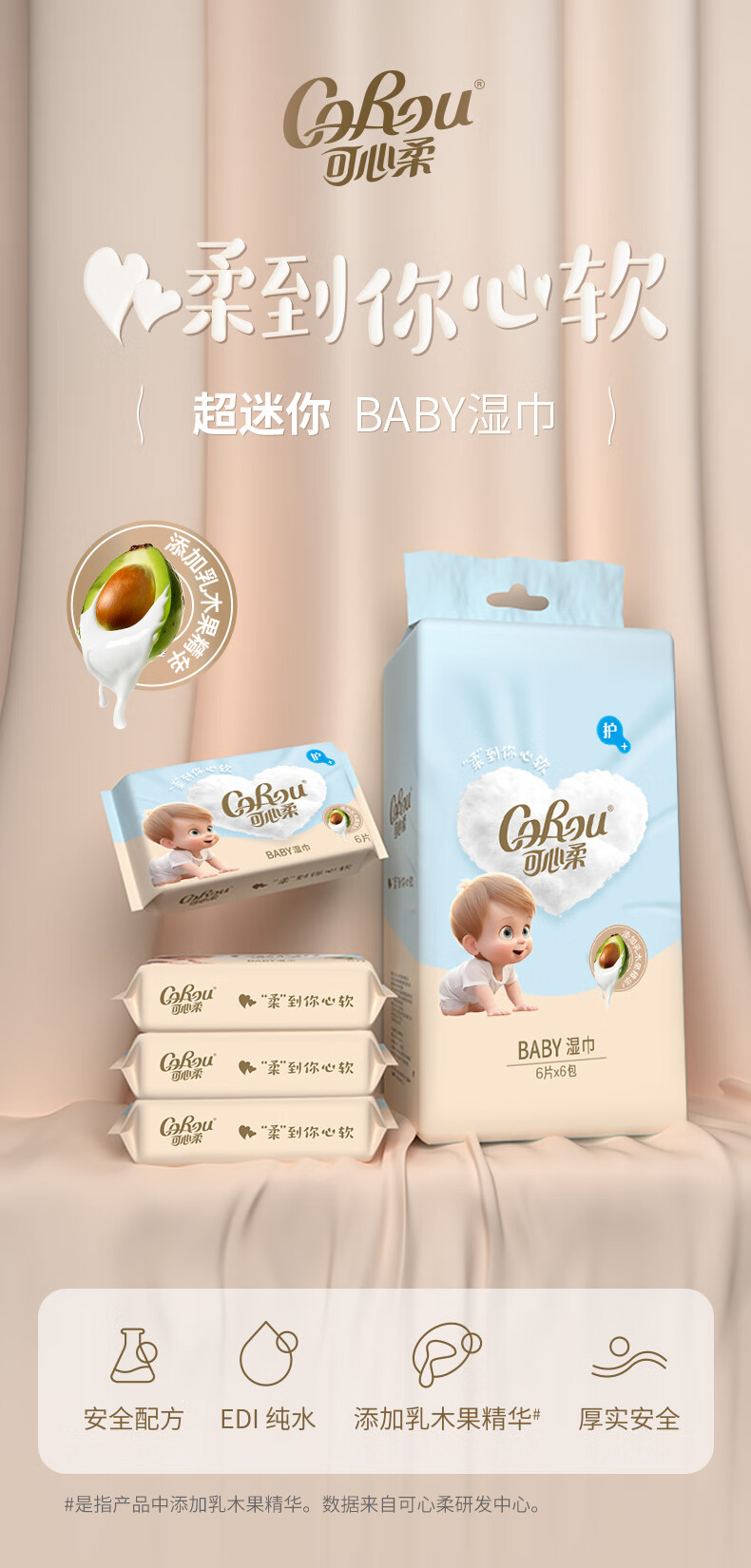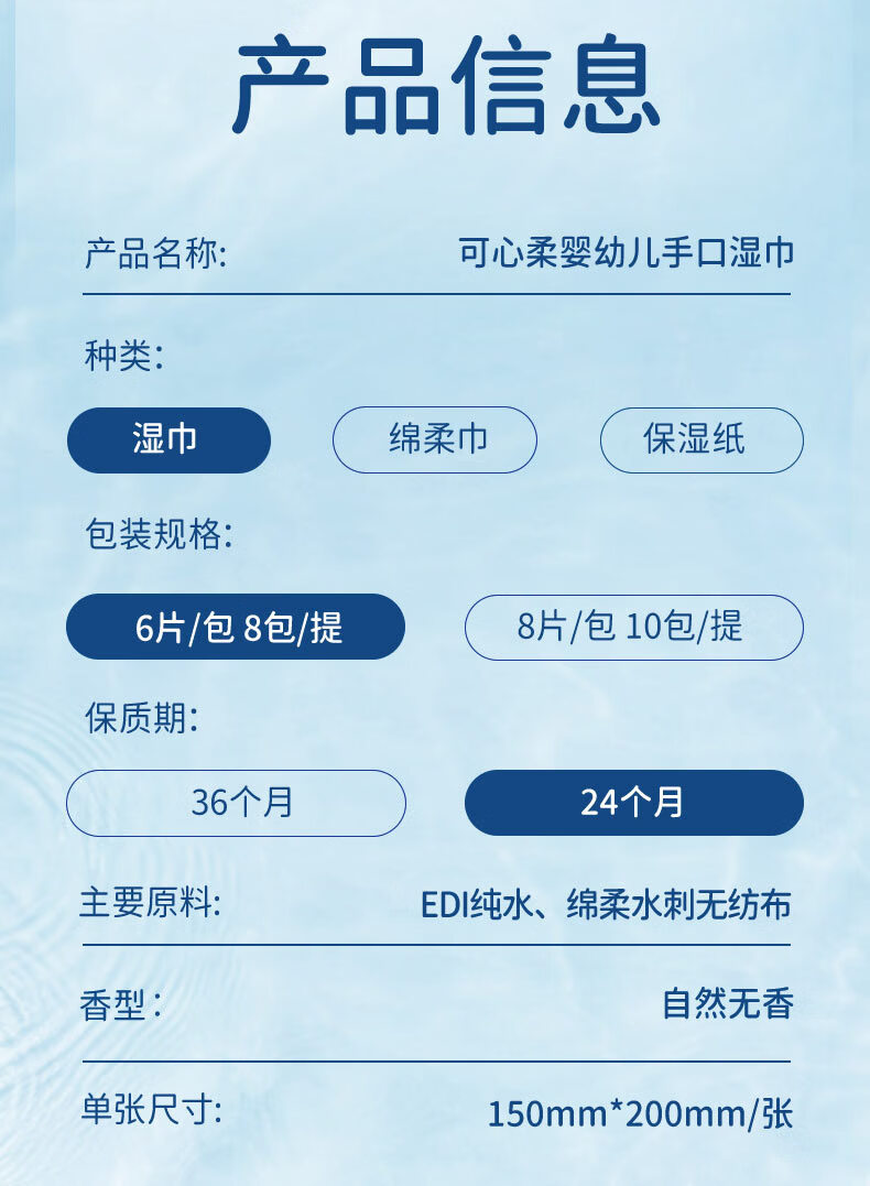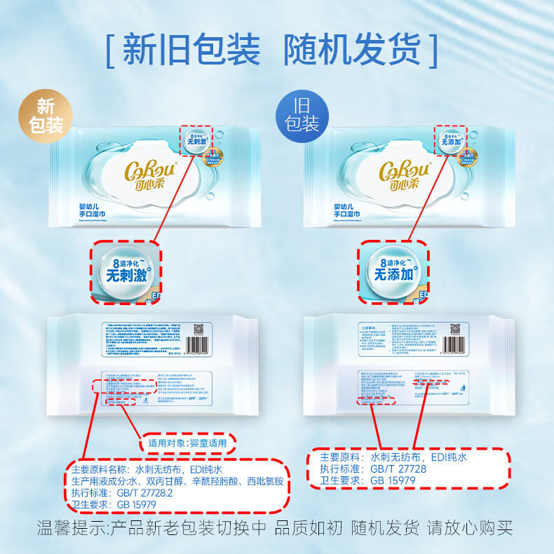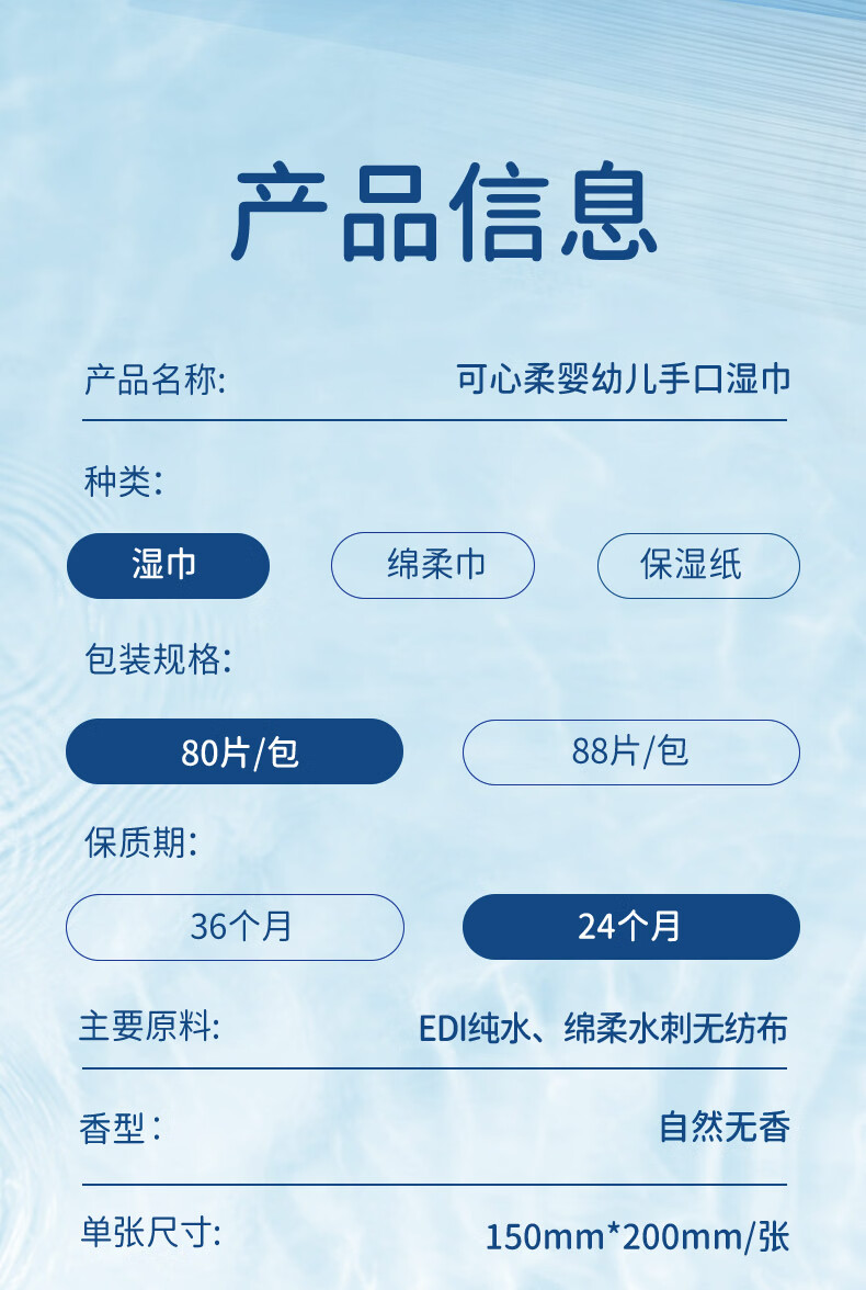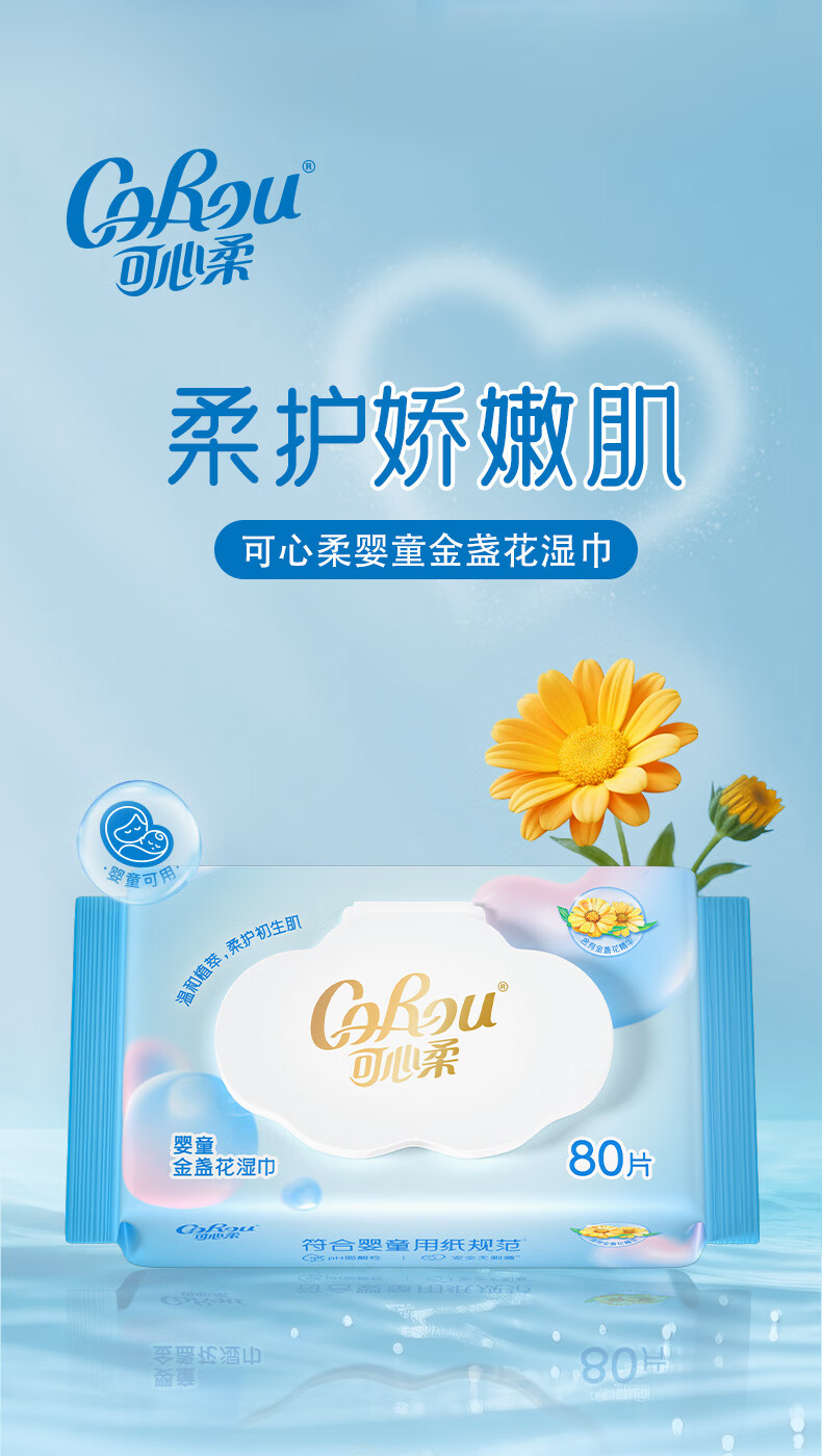 可心柔(COROU)婴儿湿巾EDI纯水湿巾儿童宝宝新生儿手口专用无酒精湿纸巾 【体验装】 80抽 1包