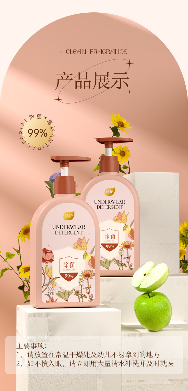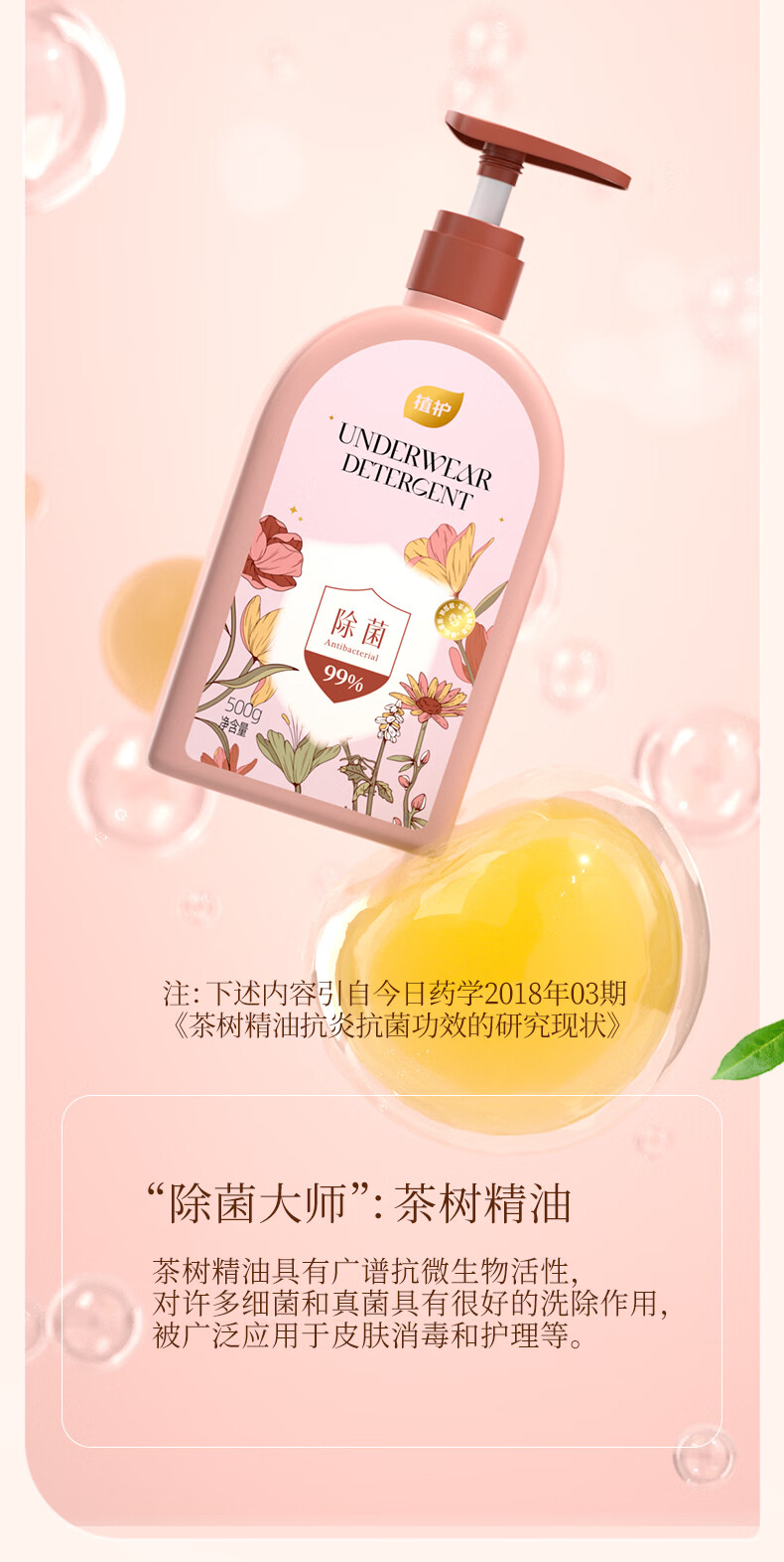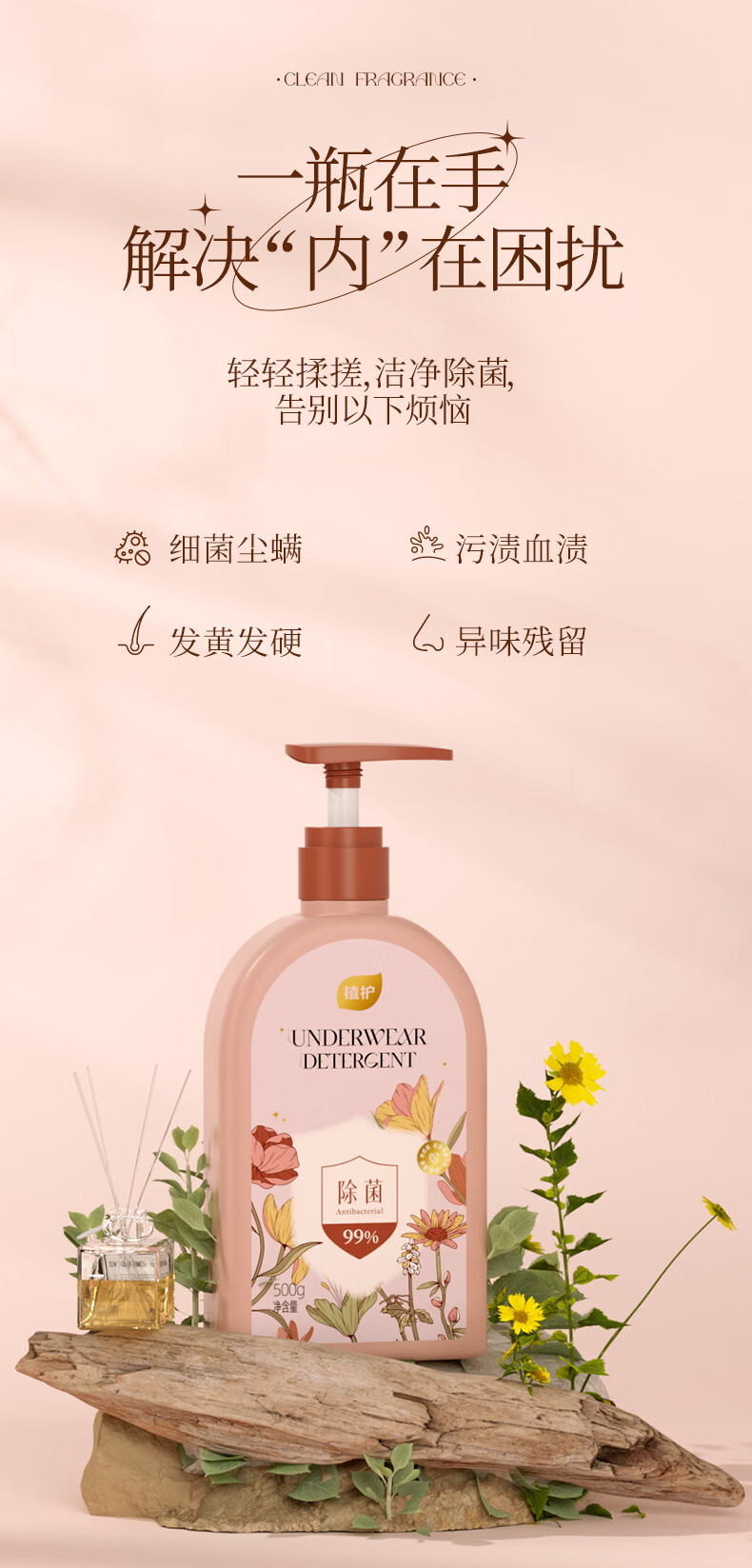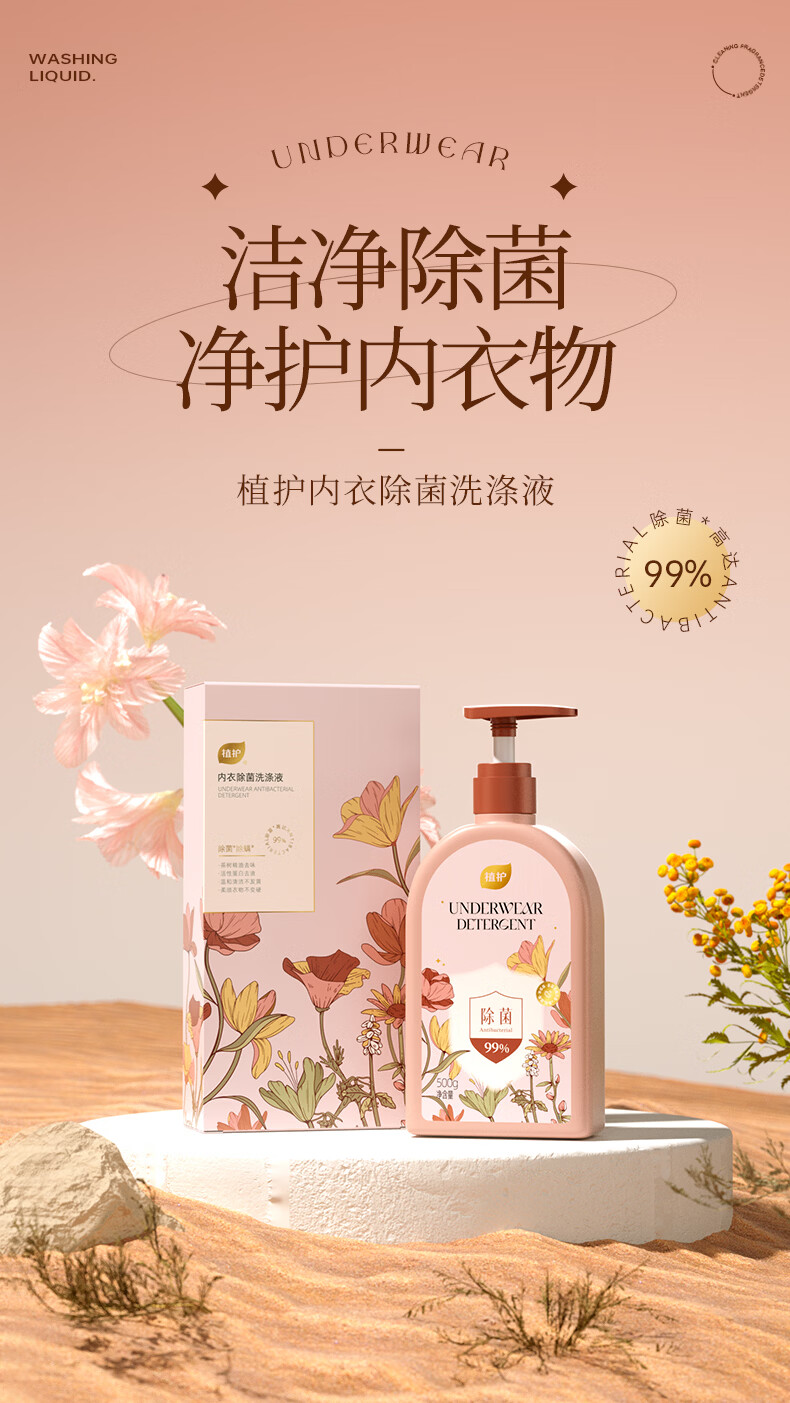 植护内衣清洗液除菌除螨洗内裤专用液男女士内衣洗衣液 【绮梦花园】500g*1瓶
