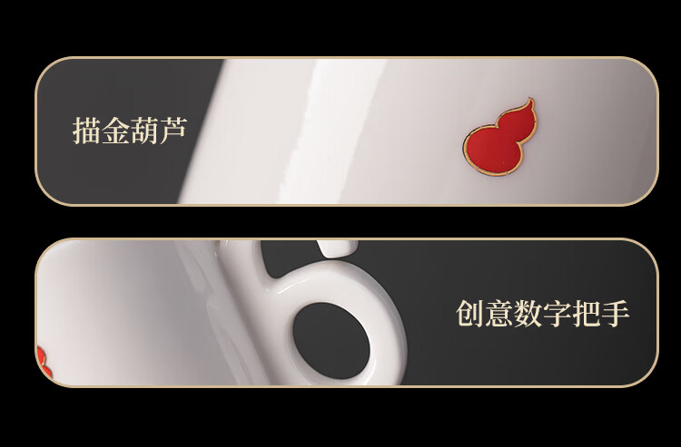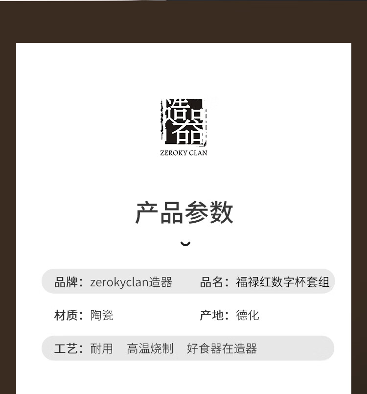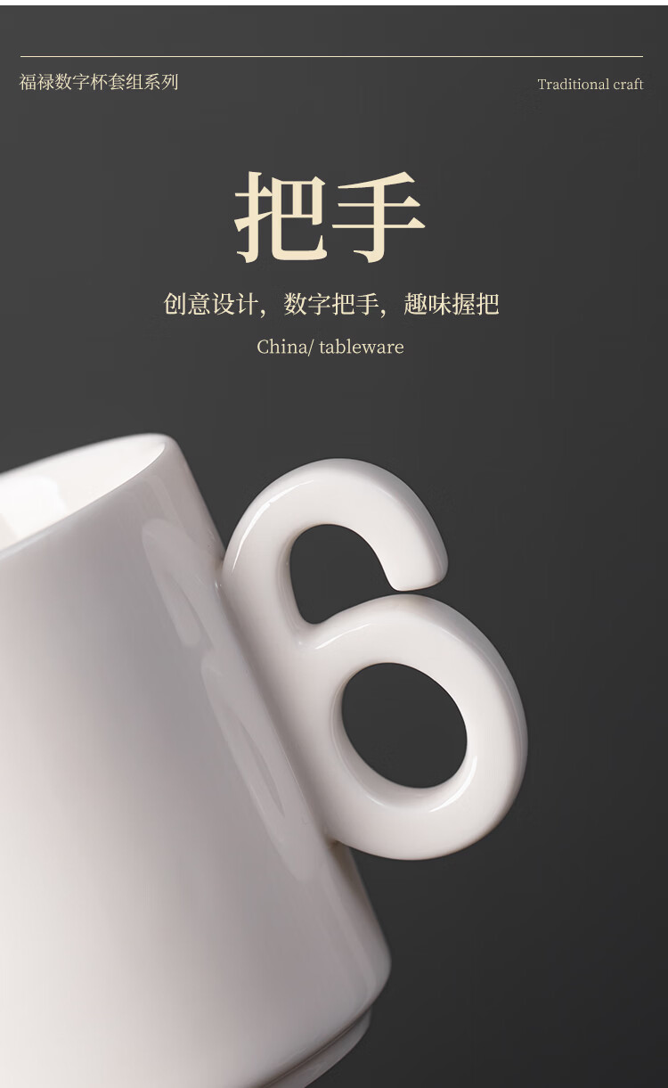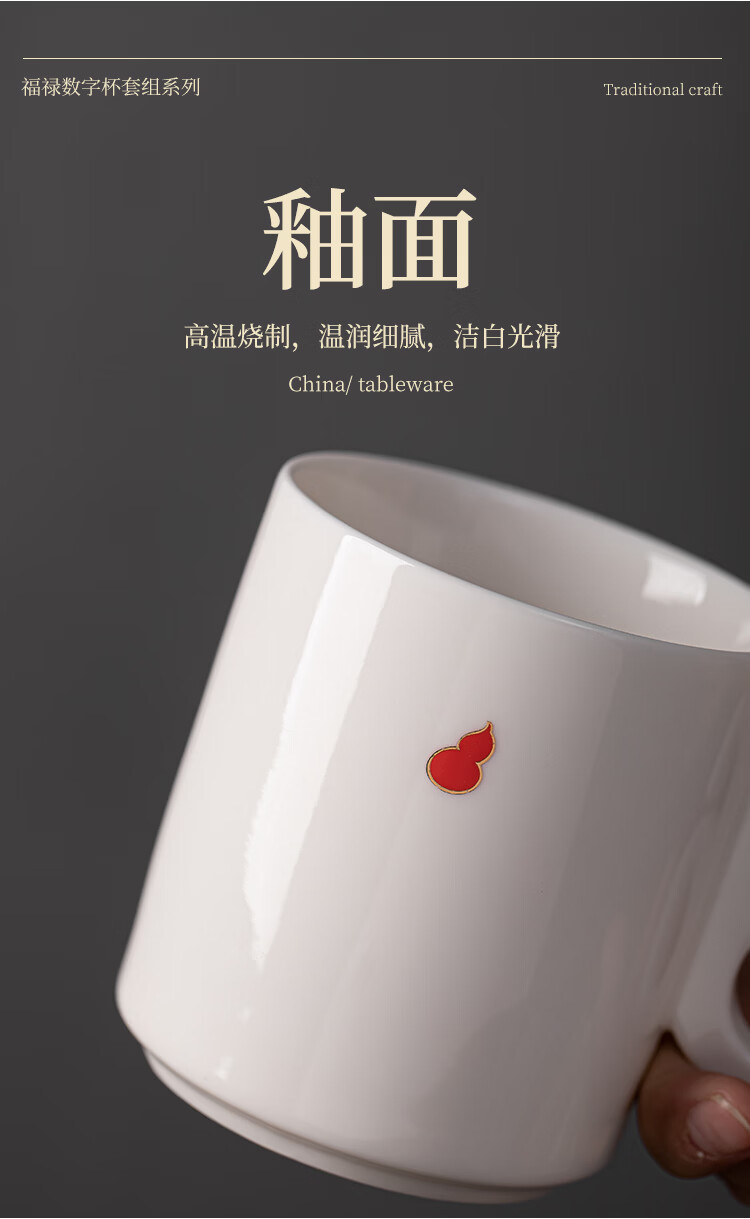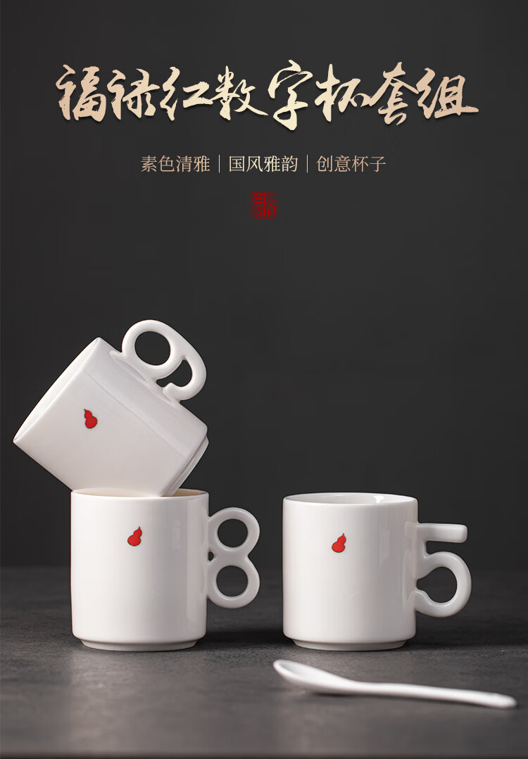 造器(ZEROKY CLAN)德化咖啡杯套装家用陶瓷数字马克杯办公室喝水杯子轻奢伴手礼盒装 数字杯套组礼盒装(福禄红)