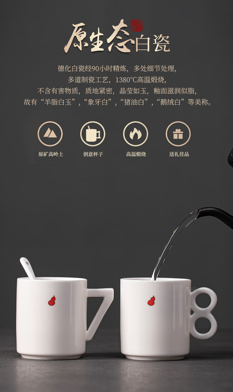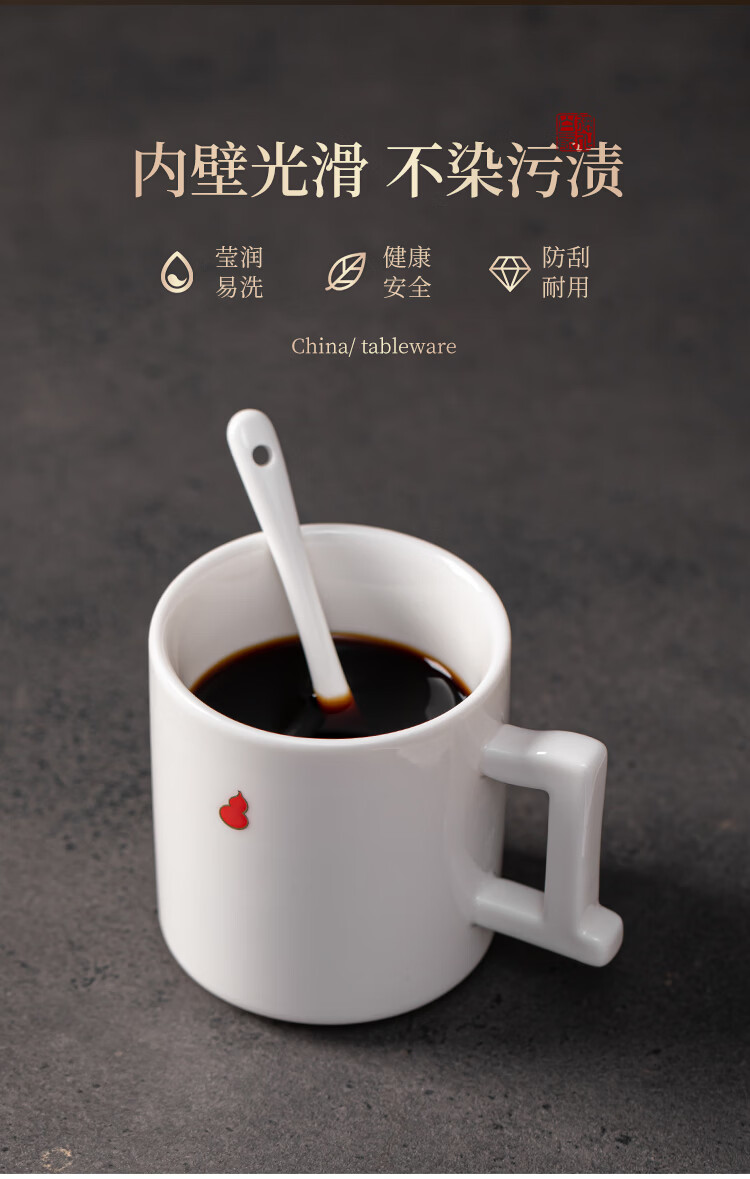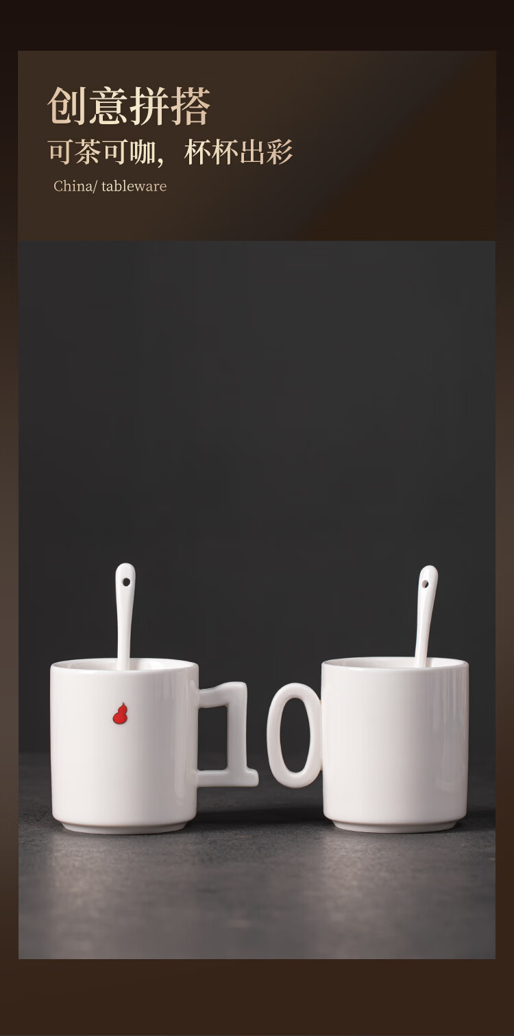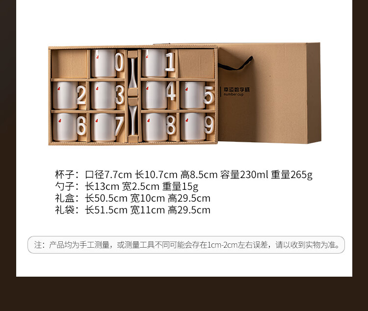 造器(ZEROKY CLAN)德化咖啡杯套装家用陶瓷数字马克杯办公室喝水杯子轻奢伴手礼盒装 数字杯套组礼盒装(福禄红)