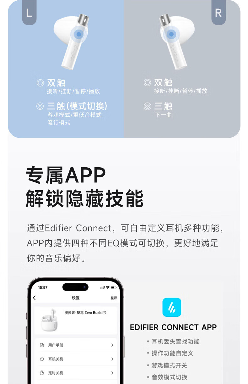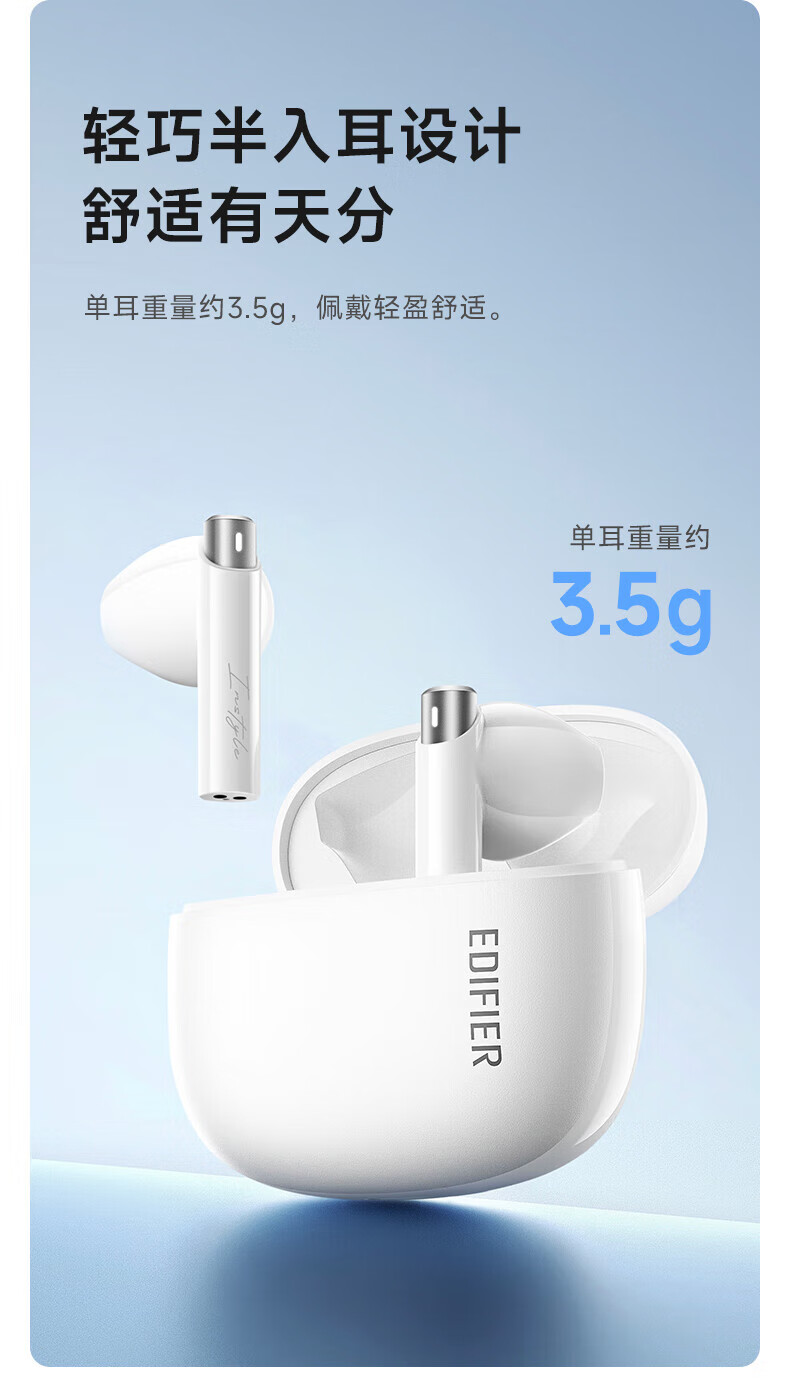 漫步者(EDIFIER)花再Zero Buds真无线蓝牙耳机零感佩戴半入耳式通话降噪适用于华为苹果Pro小米红米荣耀花在 荼白