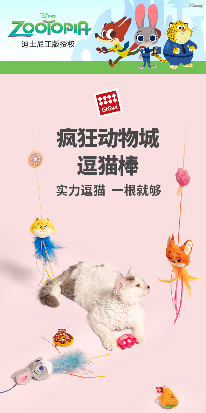 贵为(GiGwi)迪士尼疯狂动物城逗猫棒猫玩具自嗨解闷耐咬养猫幼猫玩具宠物用品 尼克逗猫棒