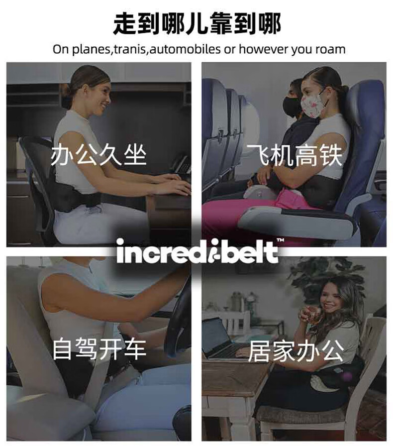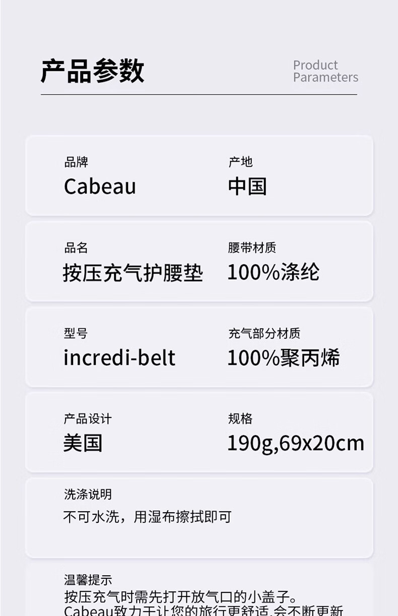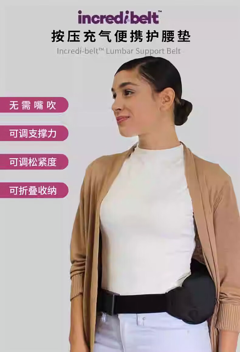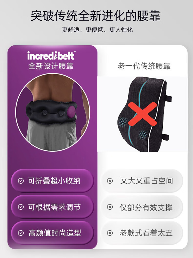 Cabeau(美国品牌)充气腰靠垫护腰便携汽车靠背上班久坐高铁飞机腰痛睡觉 黑色腰靠