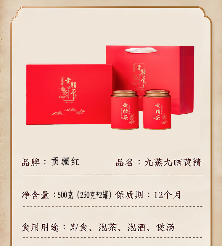 贡疆红九制黄精礼盒 滋补养生茶 九制黄精礼盒500g(250g*2罐)