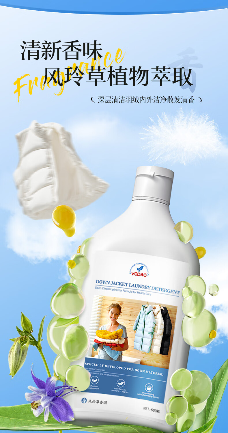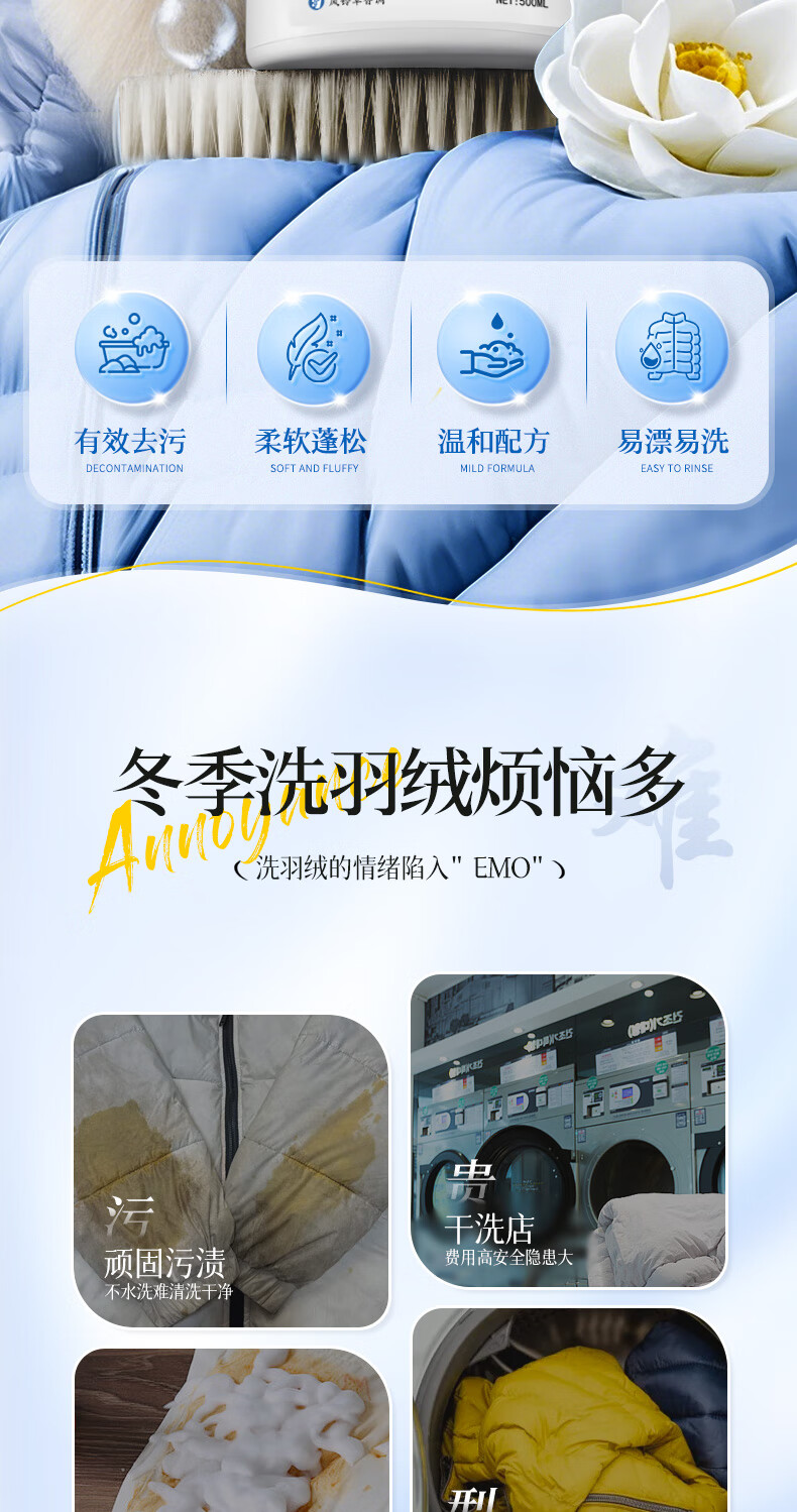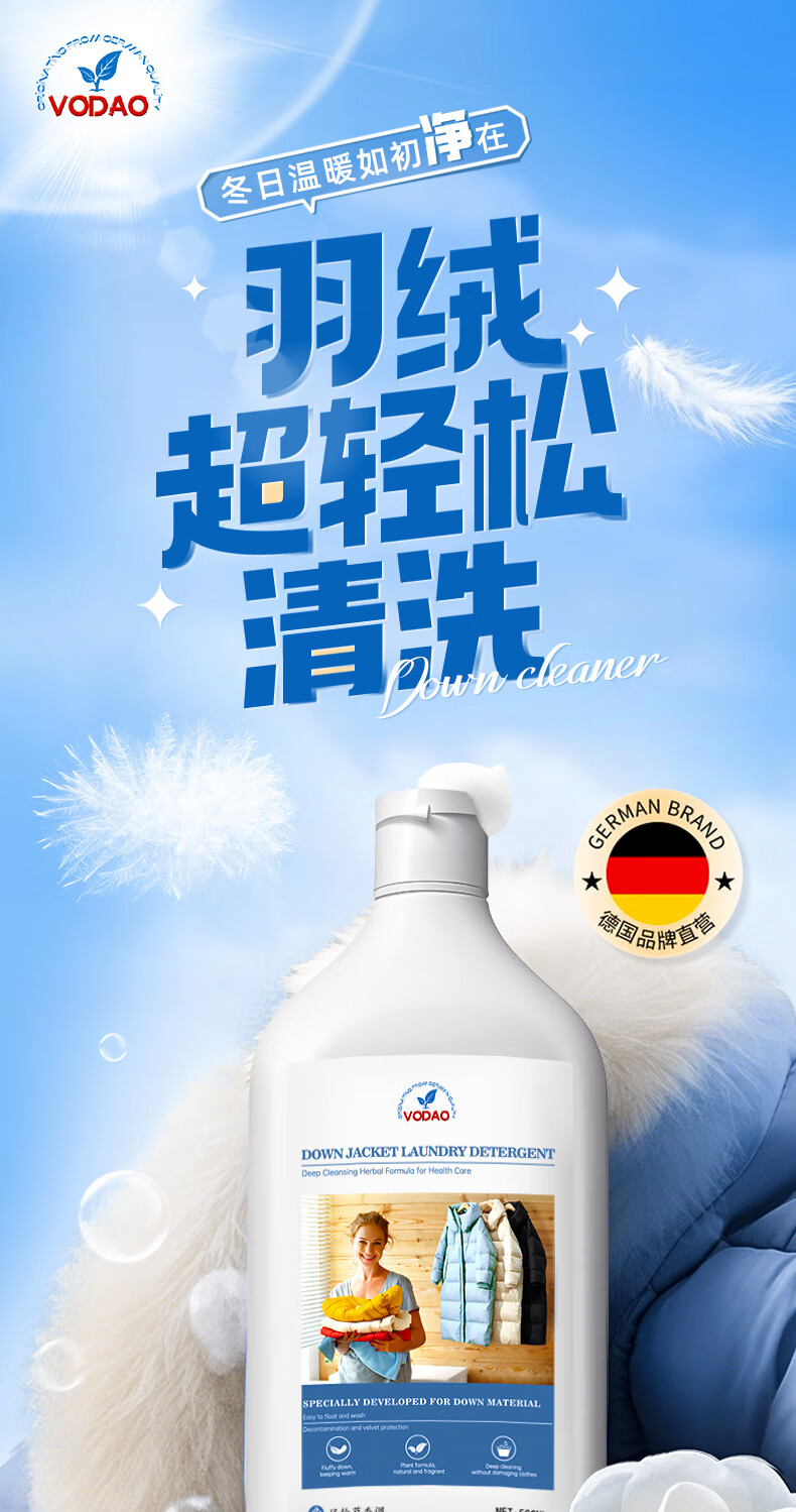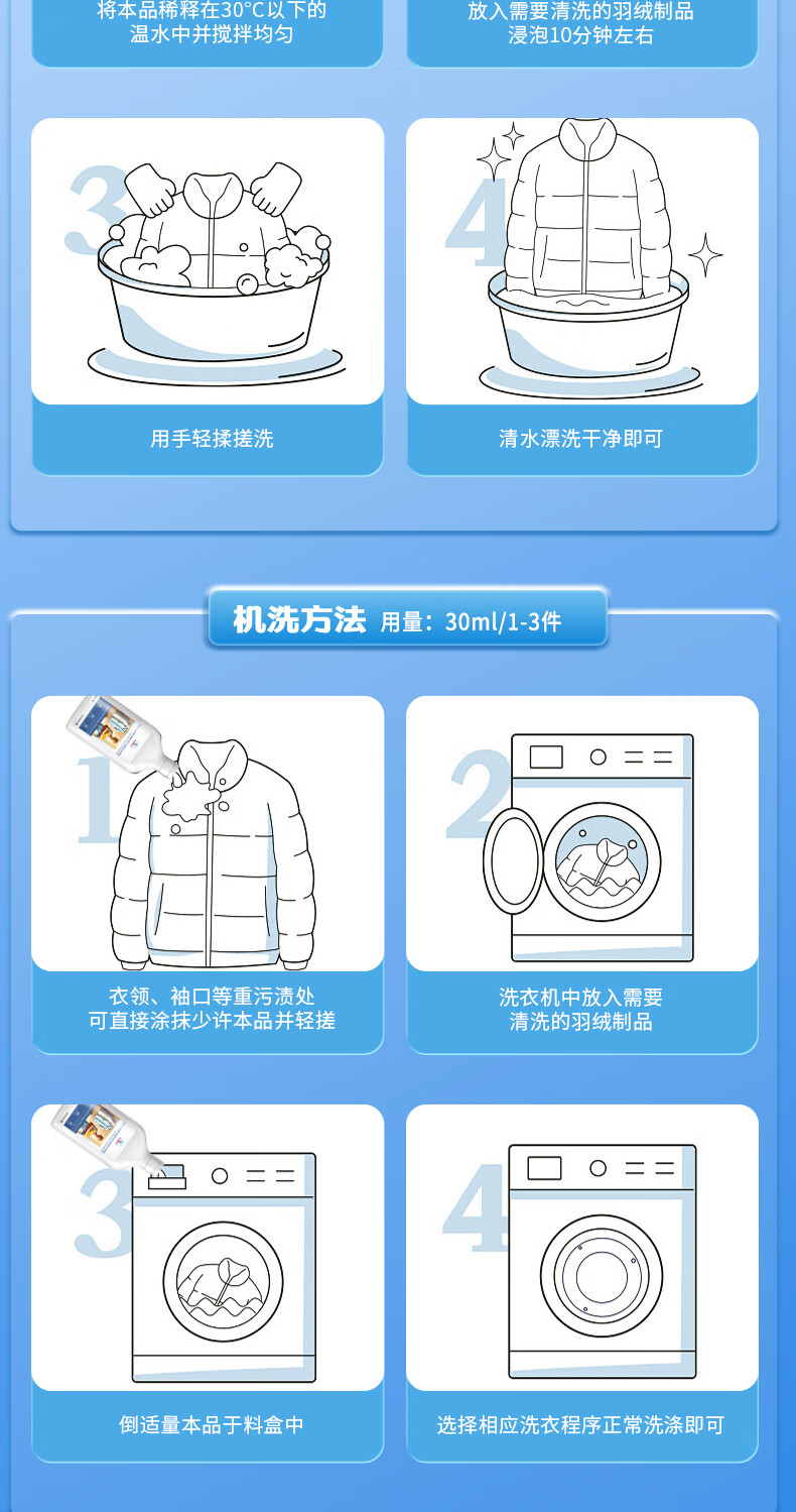 MISTOLIN德国羽绒服蓬松洗涤剂水洗洗衣机专用羽绒服清洗剂去污柔顺洗衣液 500ml 1瓶装 防结块+蓬松+可机洗