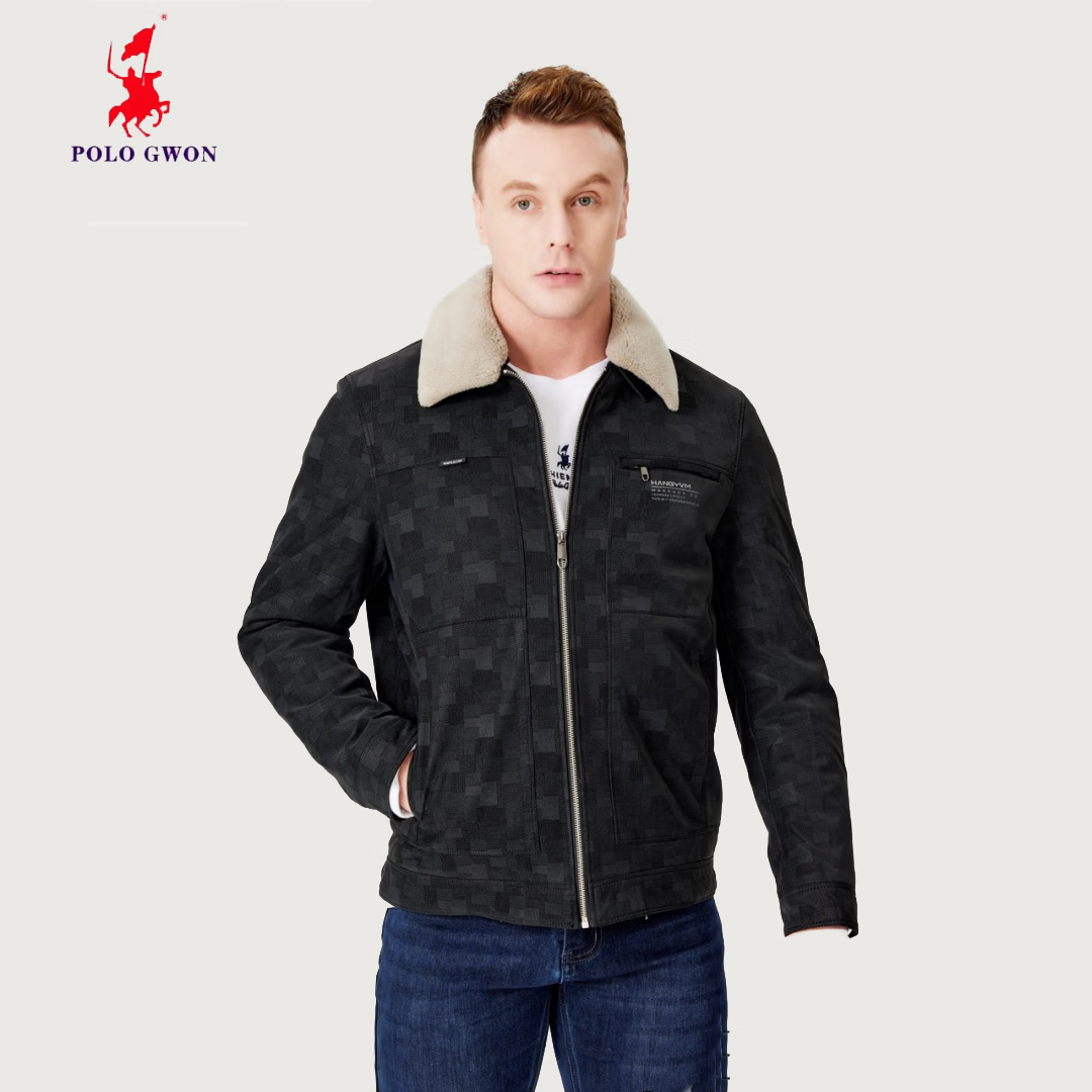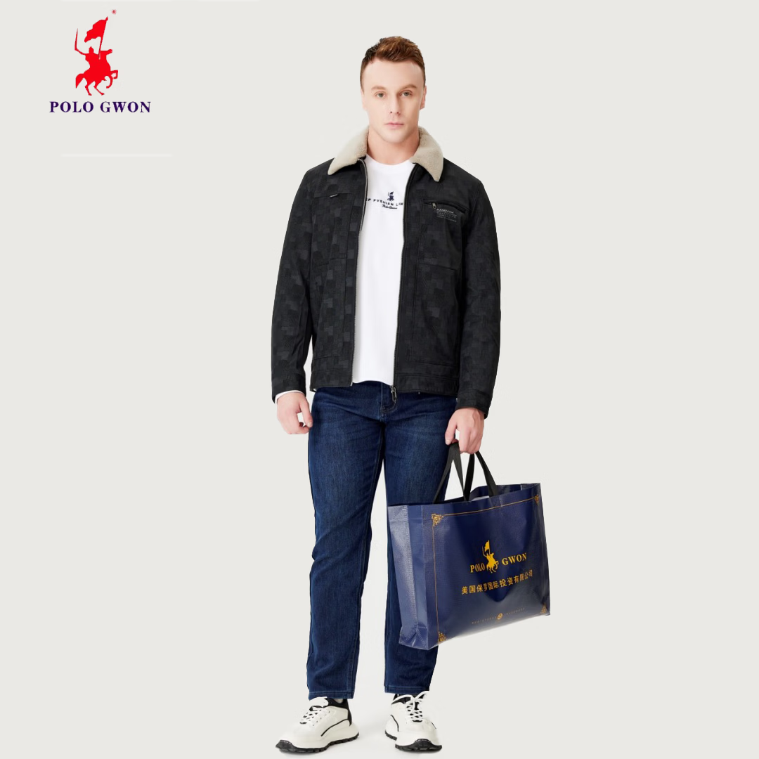 POLOGWON保罗皮羽绒服男士翻领外套男冬季经典保暖休闲皮衣羽绒外套 黑色 3XL (190) 建议180—200斤