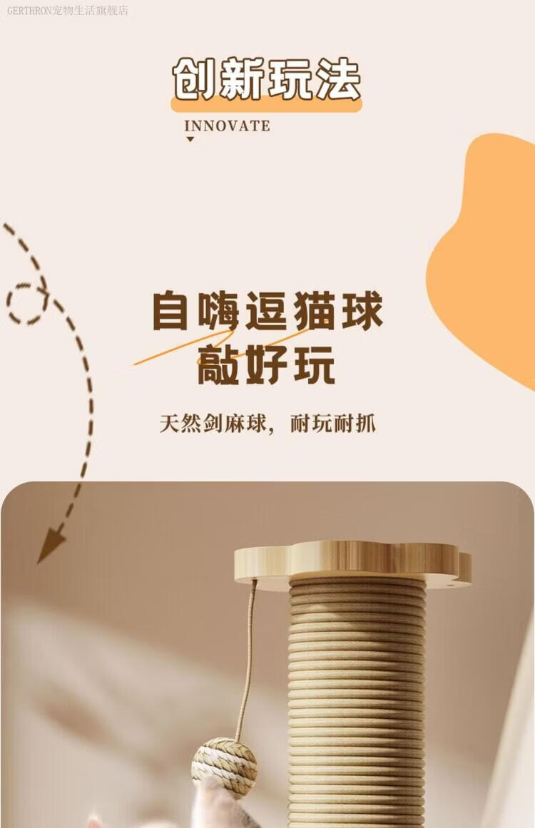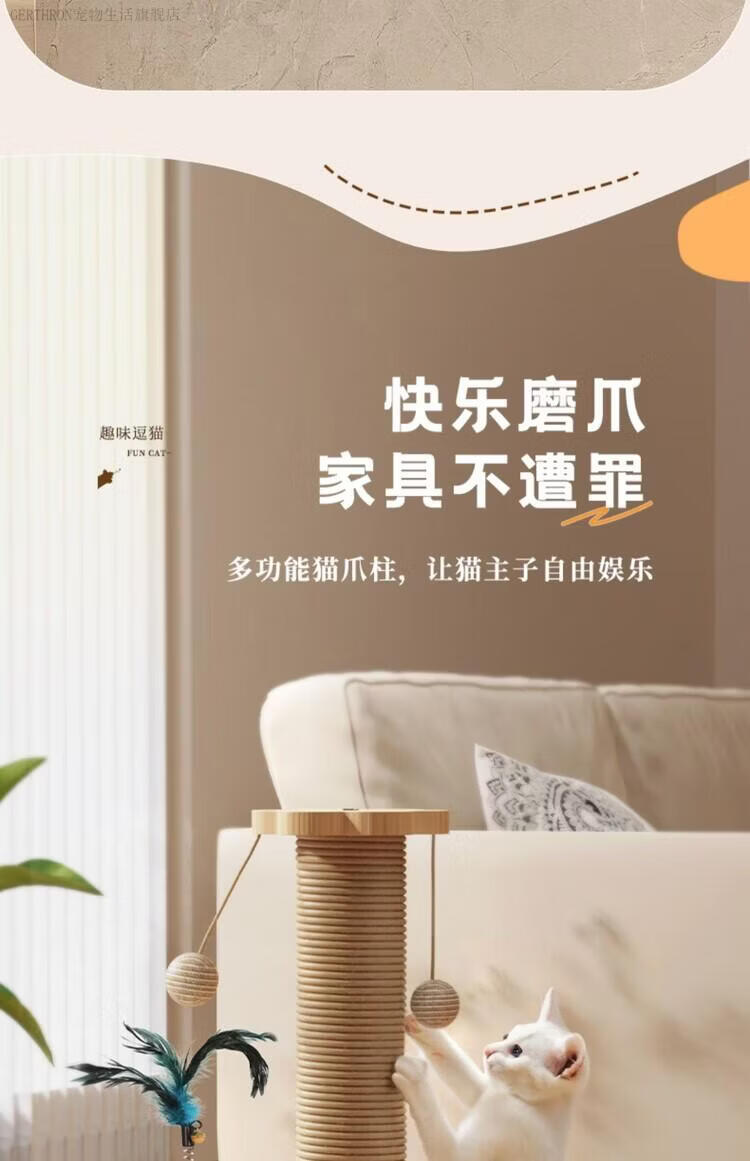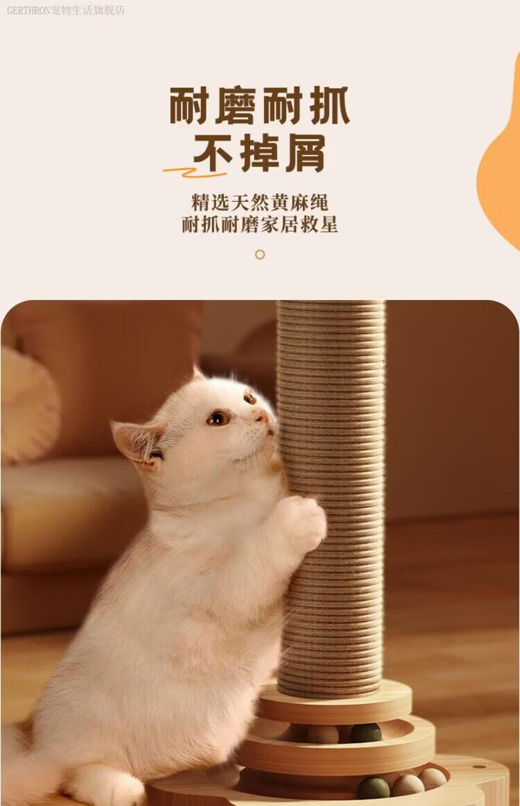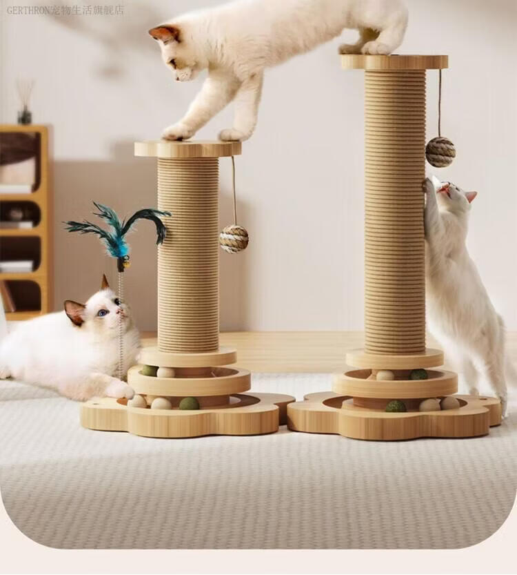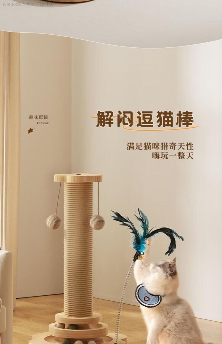 GERTHRON德国猫抓板耐磨不掉屑剑麻猫咪爪柱小猫玩具逗猫棒自嗨解闷猫爬架 【实木款 品质首选】四合一猫抓柱