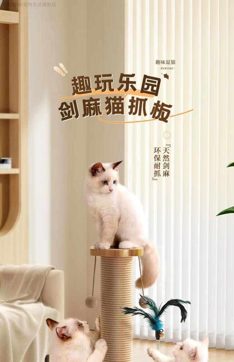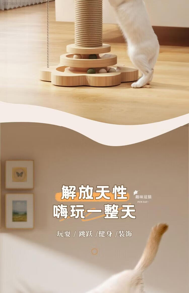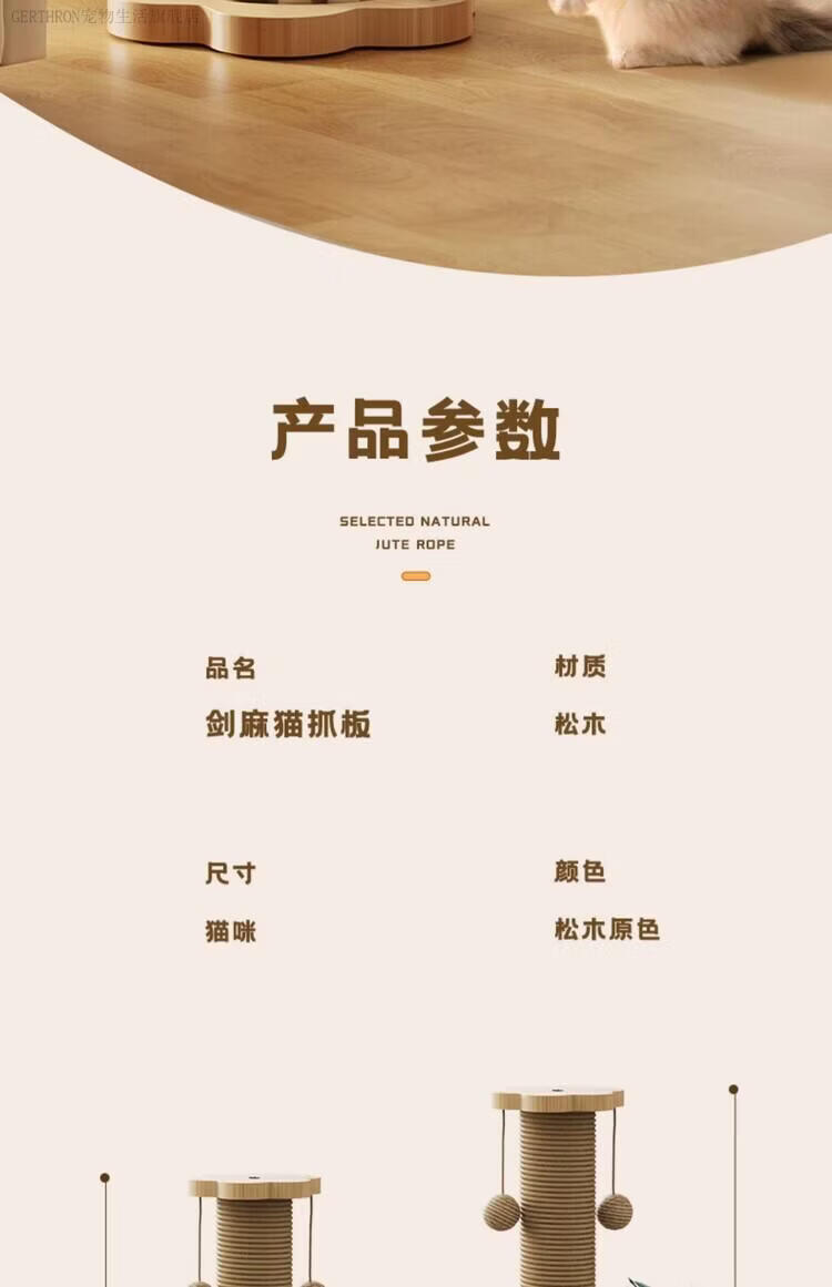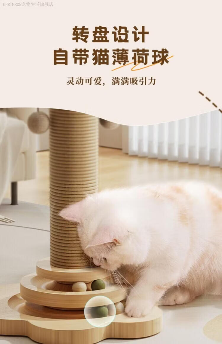 GERTHRON德国猫抓板耐磨不掉屑剑麻猫咪爪柱小猫玩具逗猫棒自嗨解闷猫爬架 【实木款 品质首选】四合一猫抓柱