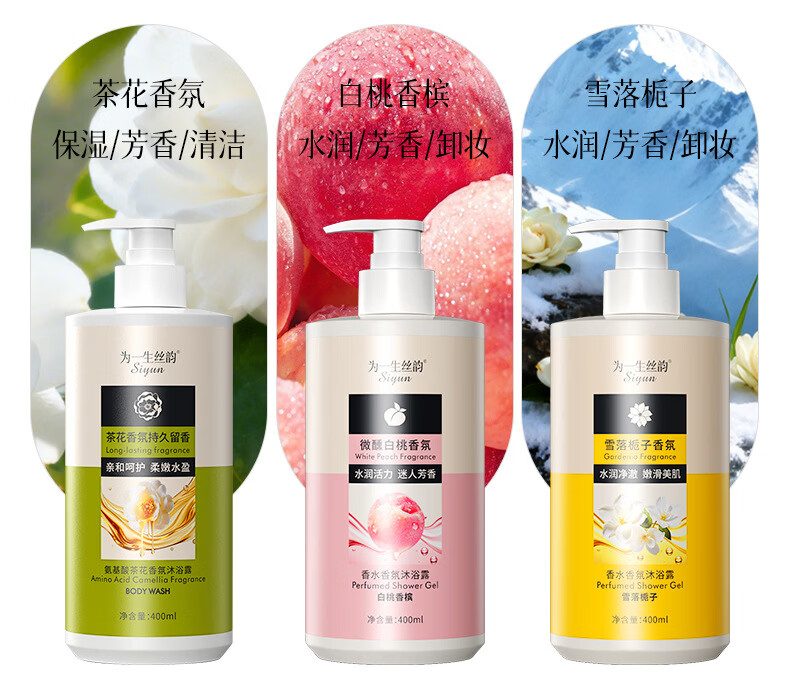 MRYU为一生丝韵雪落栀子沐浴露乌木玫瑰香氛冬季润养沐浴液持久留香 雪落栀子沐浴露400ml*3瓶装 官方直售 京质保障