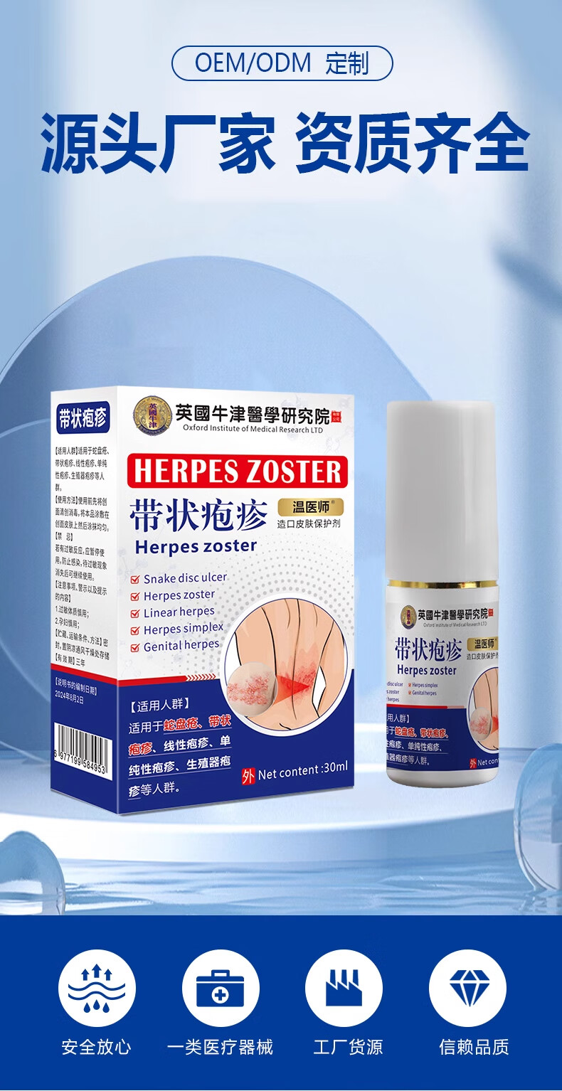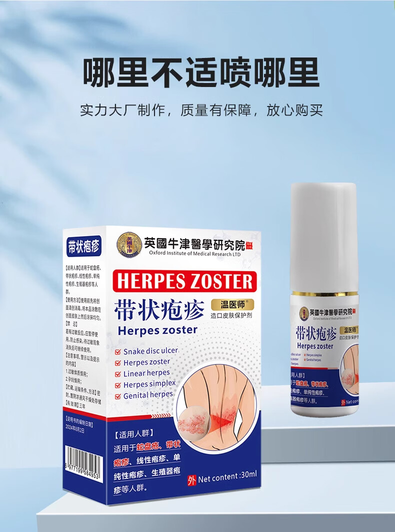 温医师带状疱疹后遗症神经痛外用喷中药蛇缠腰蛇盘疮 30ml 带状疱疹喷剂:1瓶/