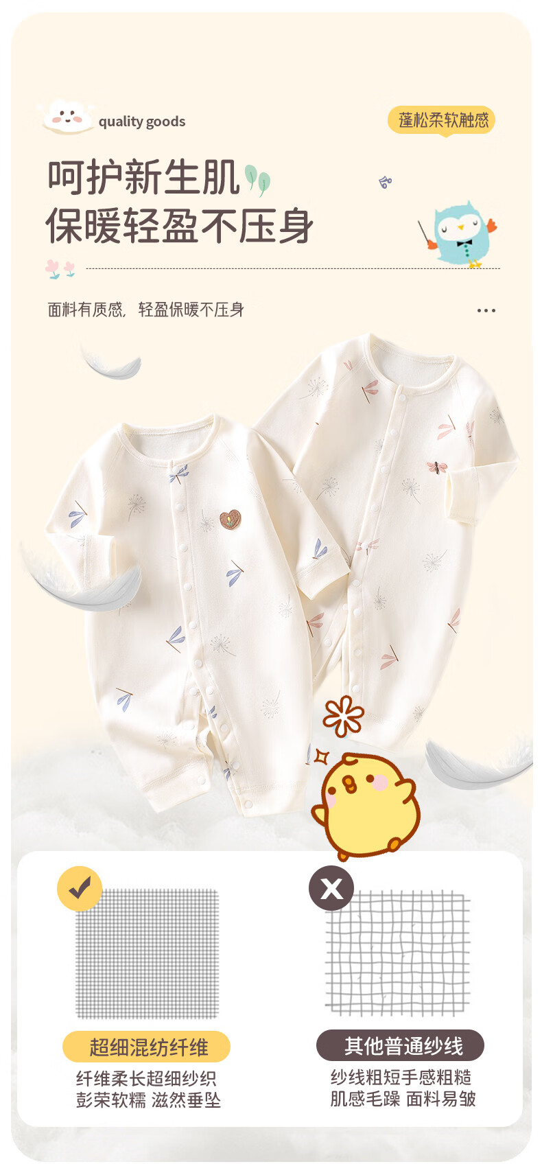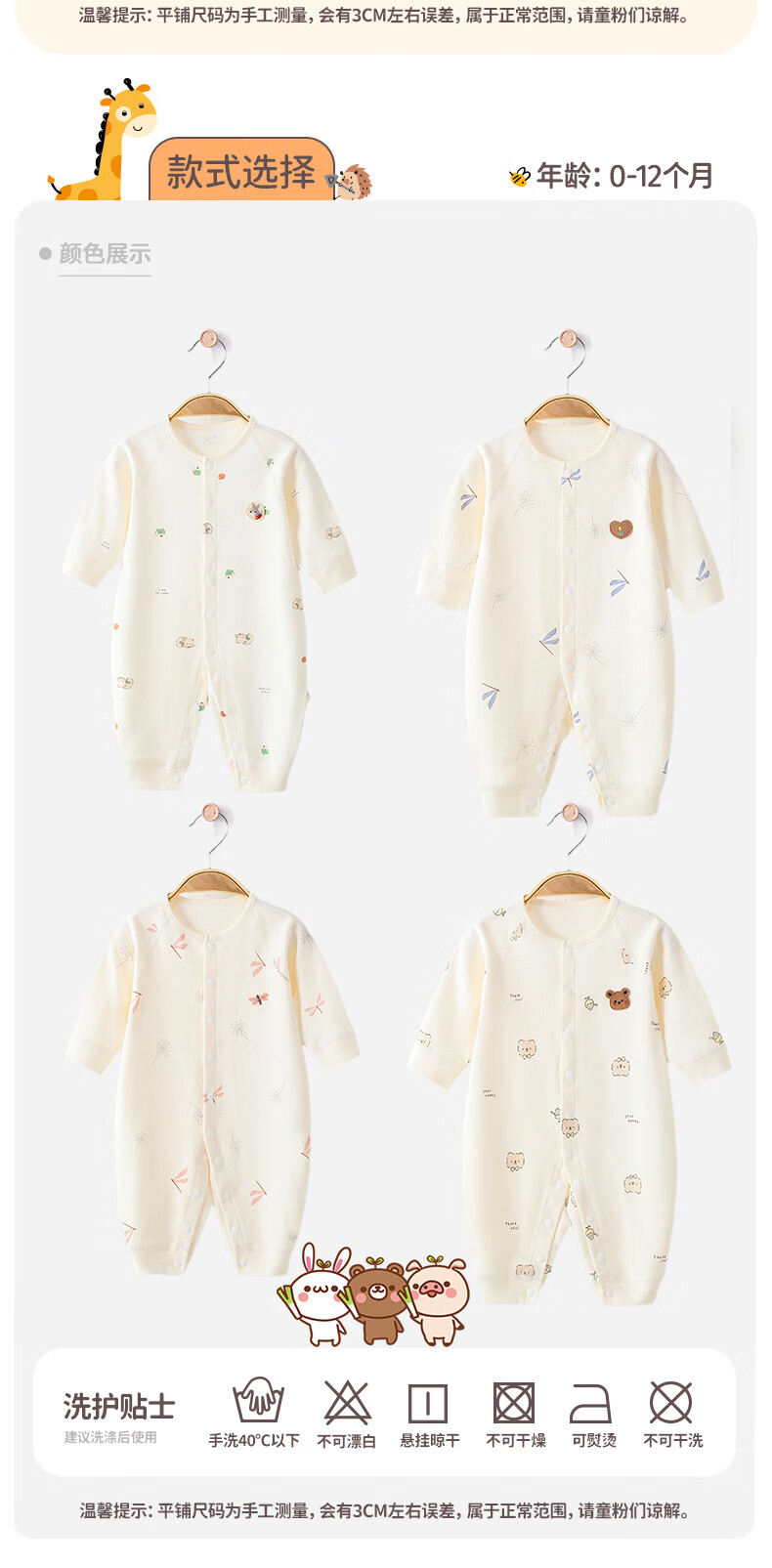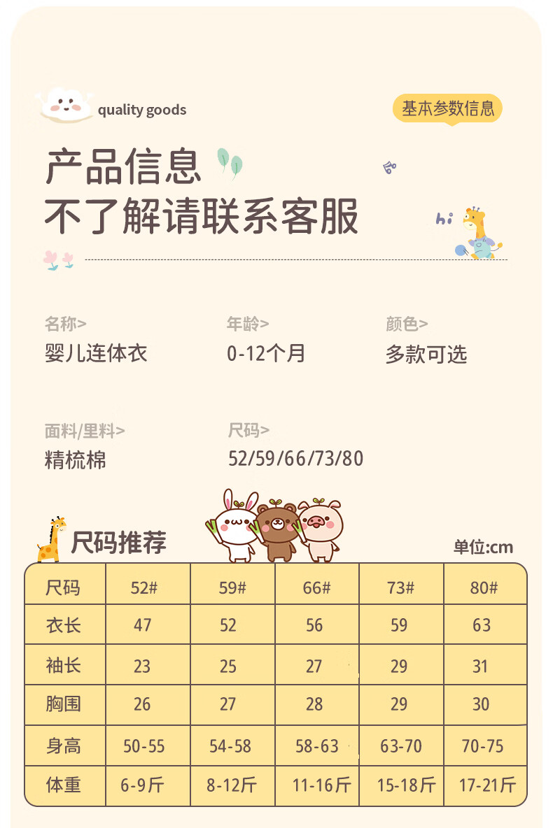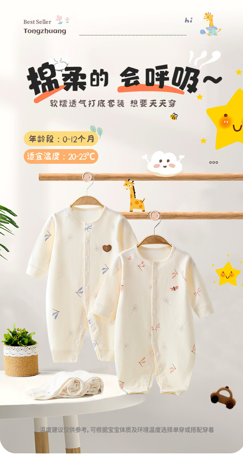 藤之木工房(T.moo)婴儿宝宝纯棉连体衣长袖春秋衣服哈衣爬服 巧乐杯小熊 52cm