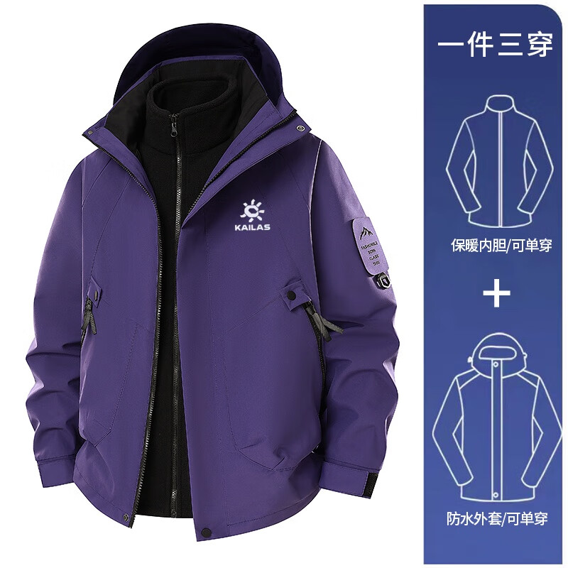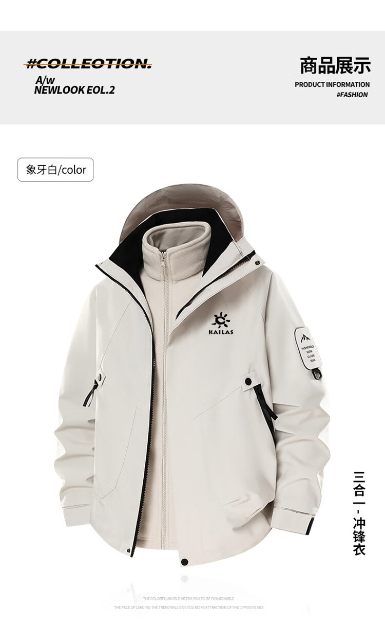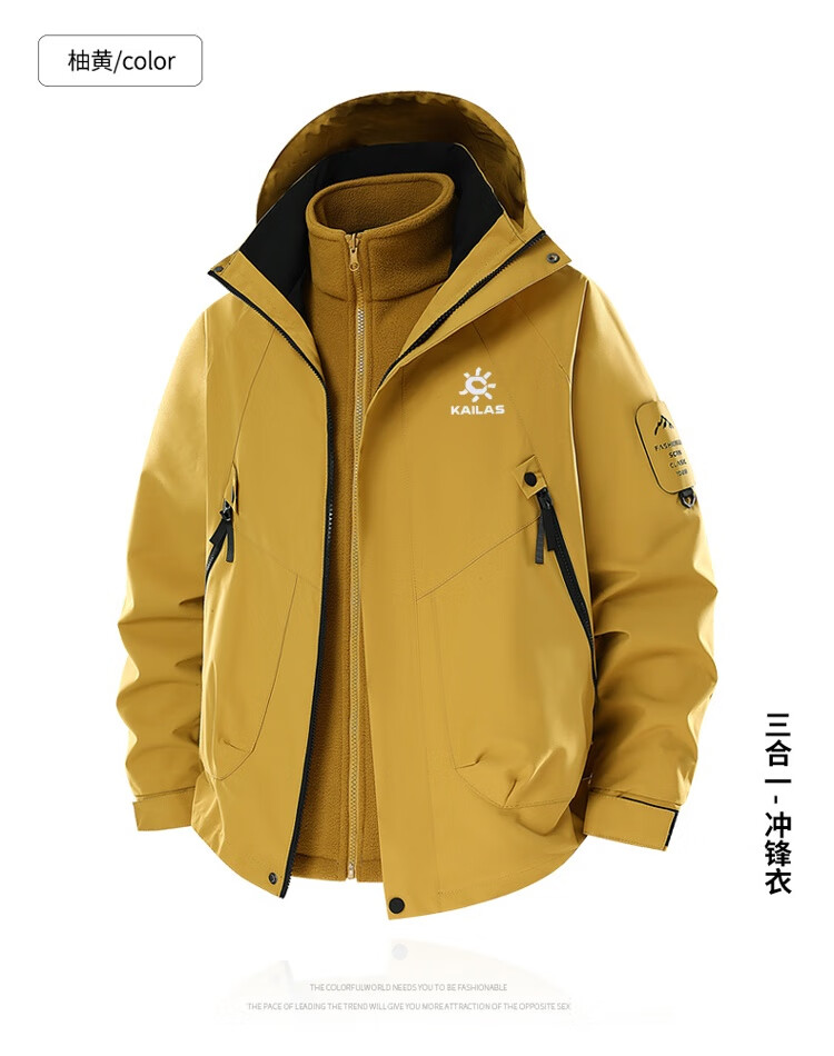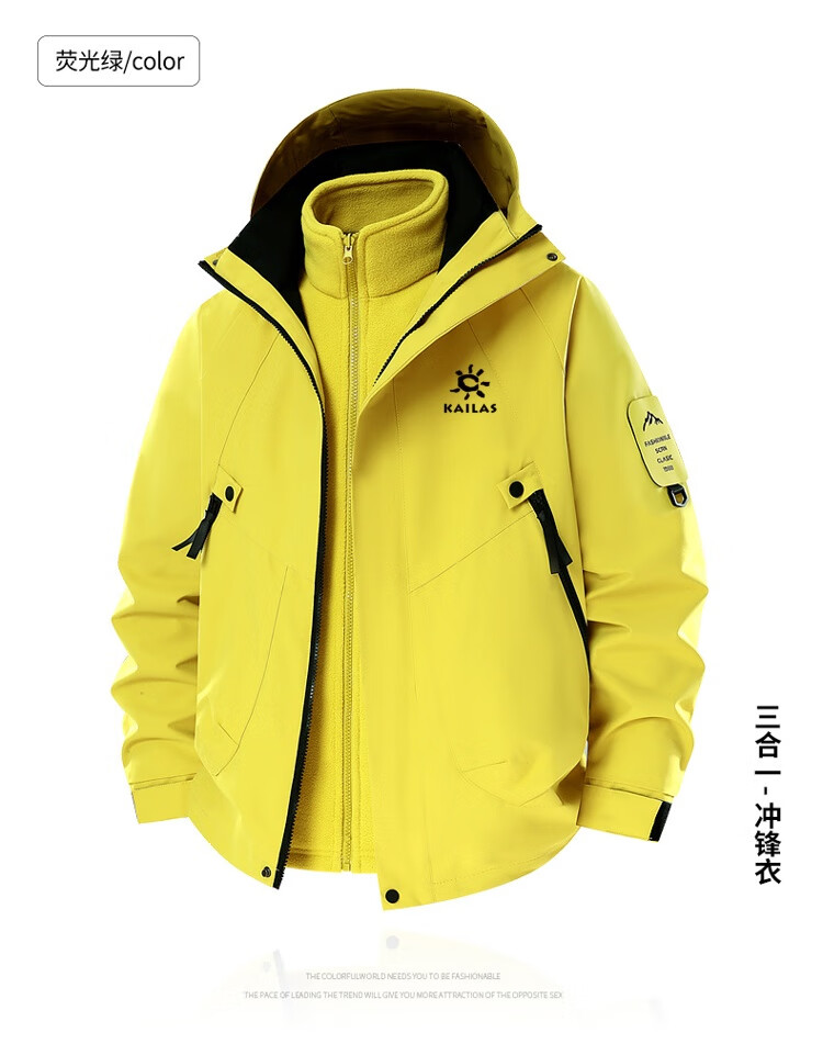 KAILAS薄荷三合一冲锋衣男女情侣款防风防水可拆卸内胆户外登山外套 凯乐石 荧光绿 4XL(215-245斤)