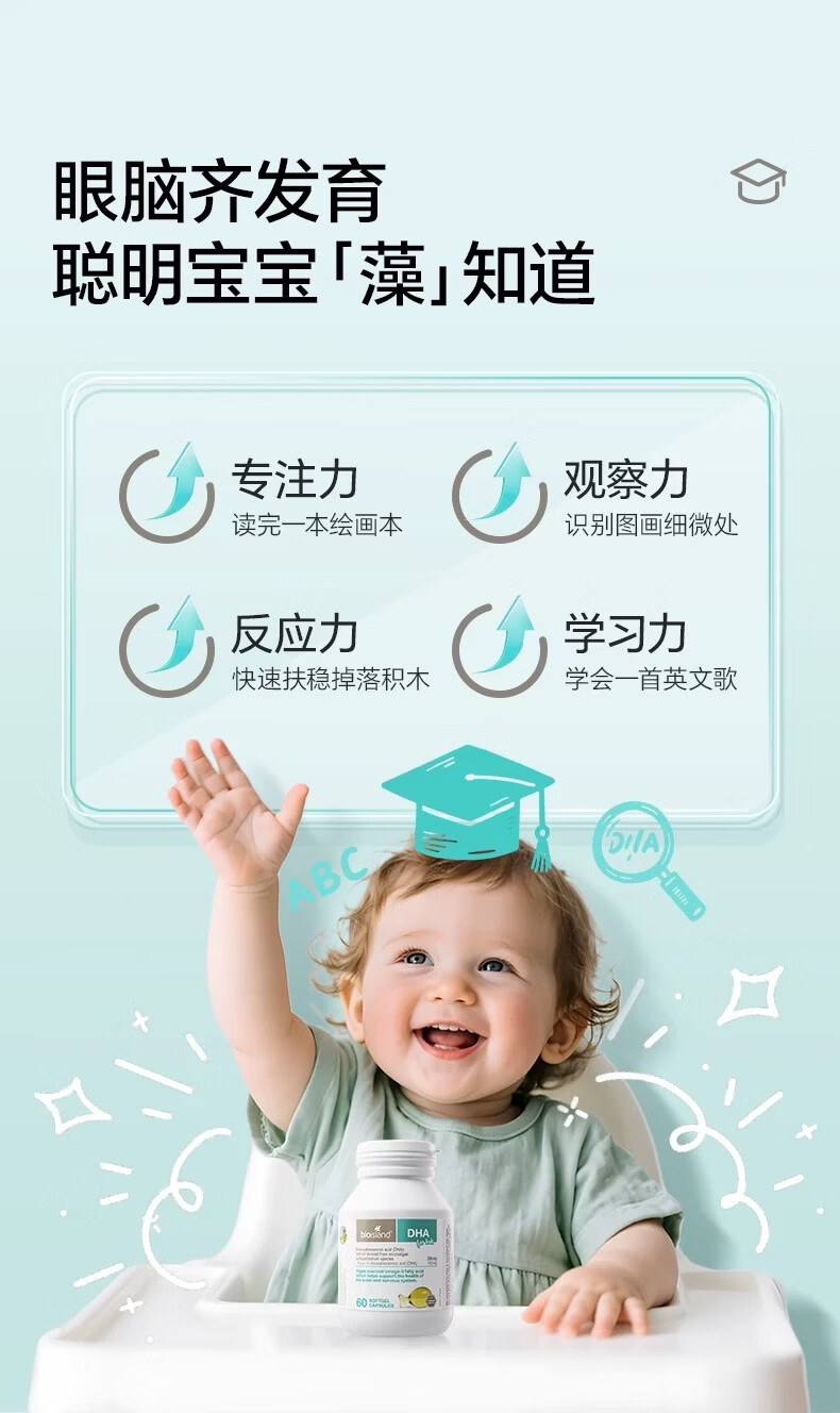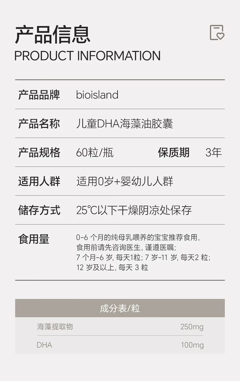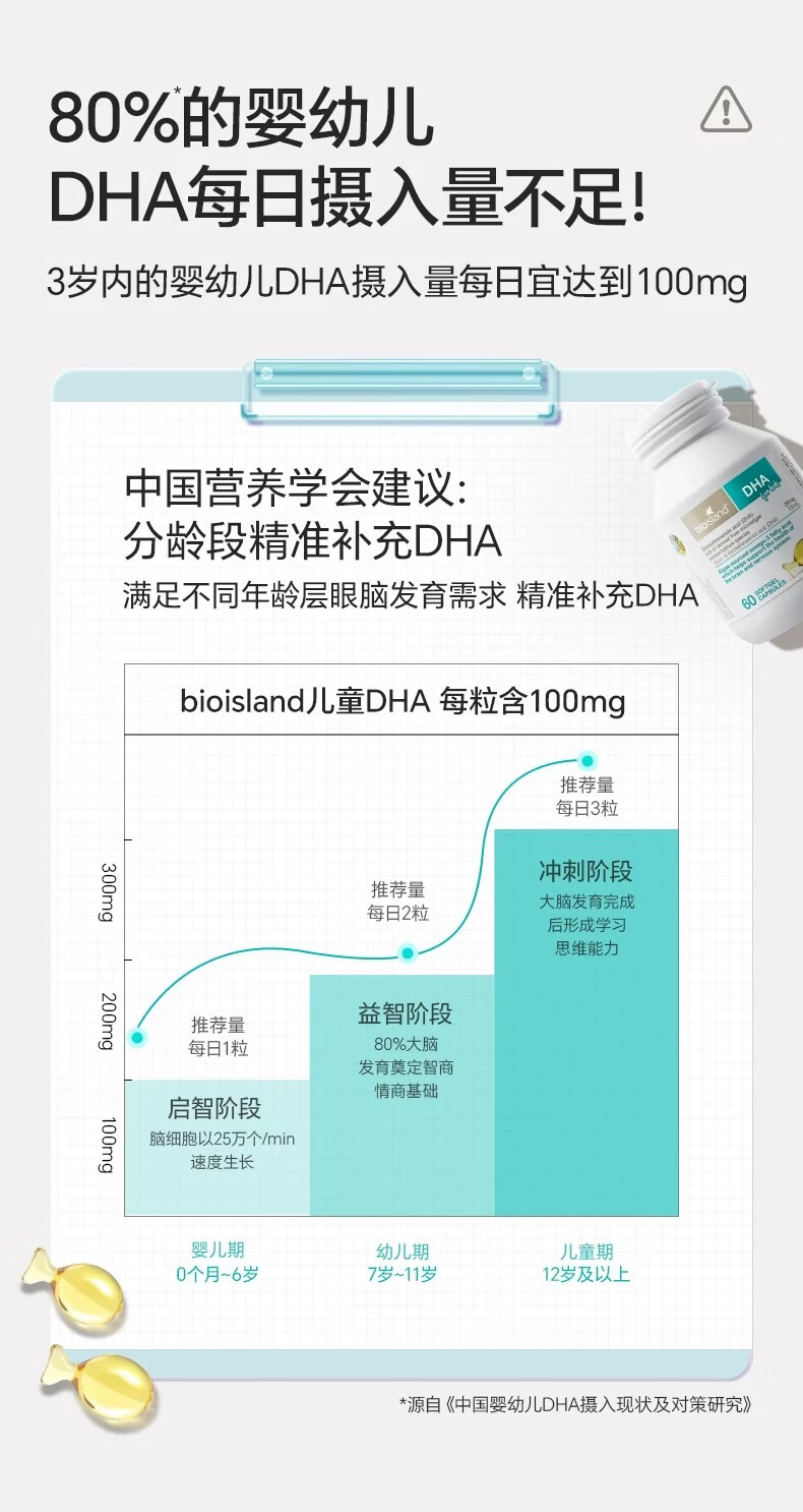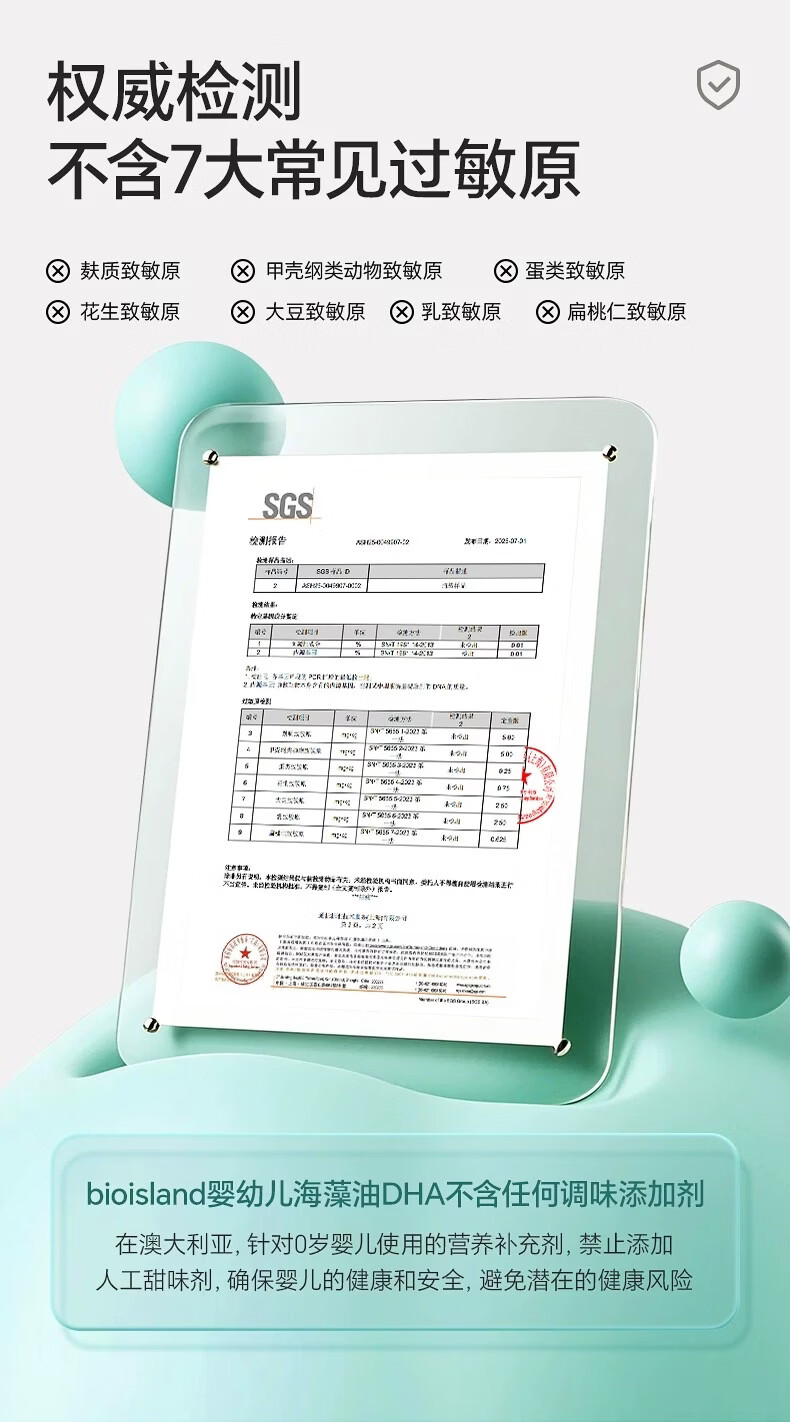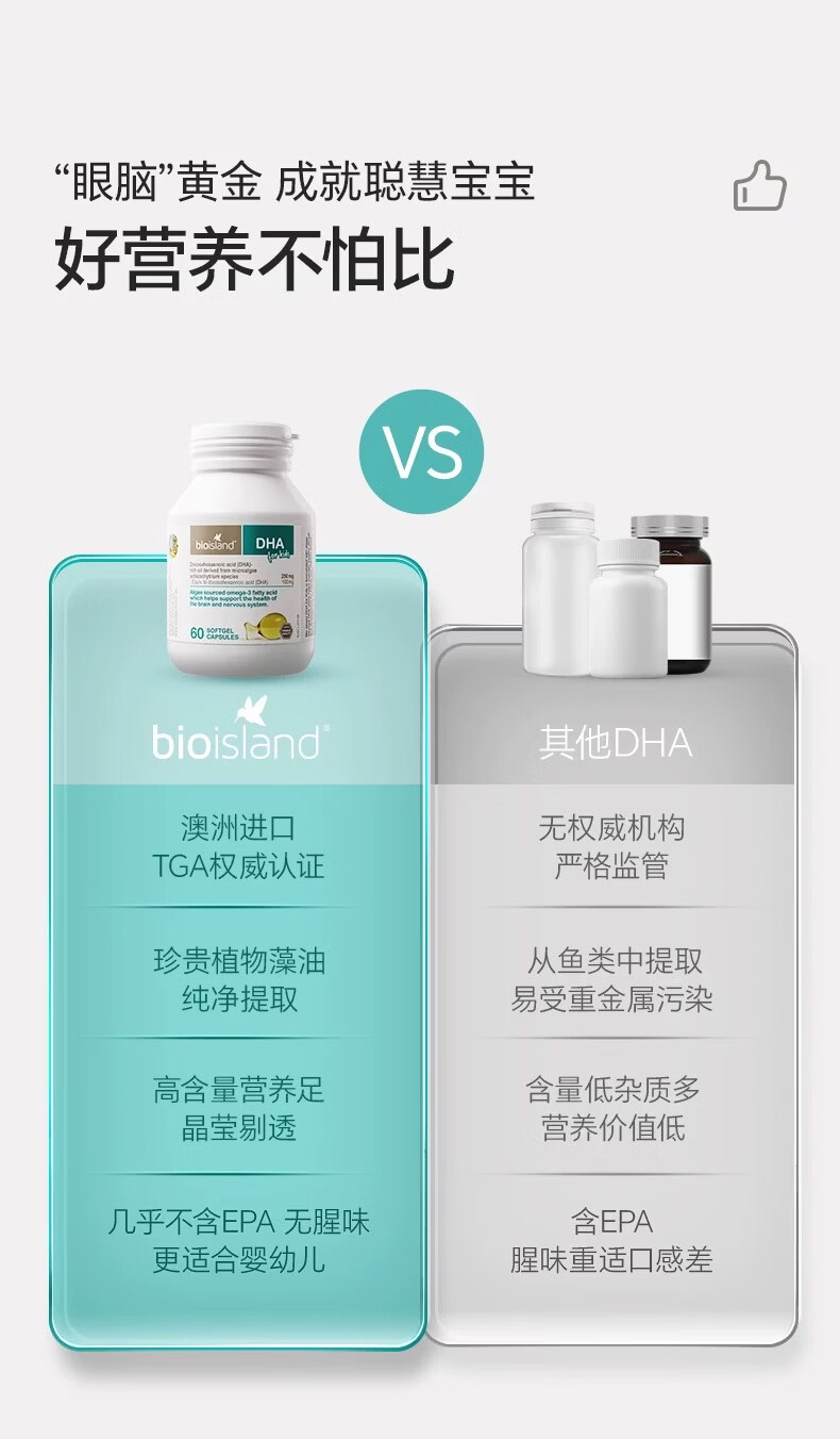 Bio Island佰澳朗德婴幼儿DHA胶囊60粒/瓶 澳洲进口婴幼儿DHA 60粒*6瓶