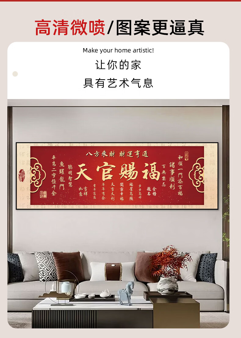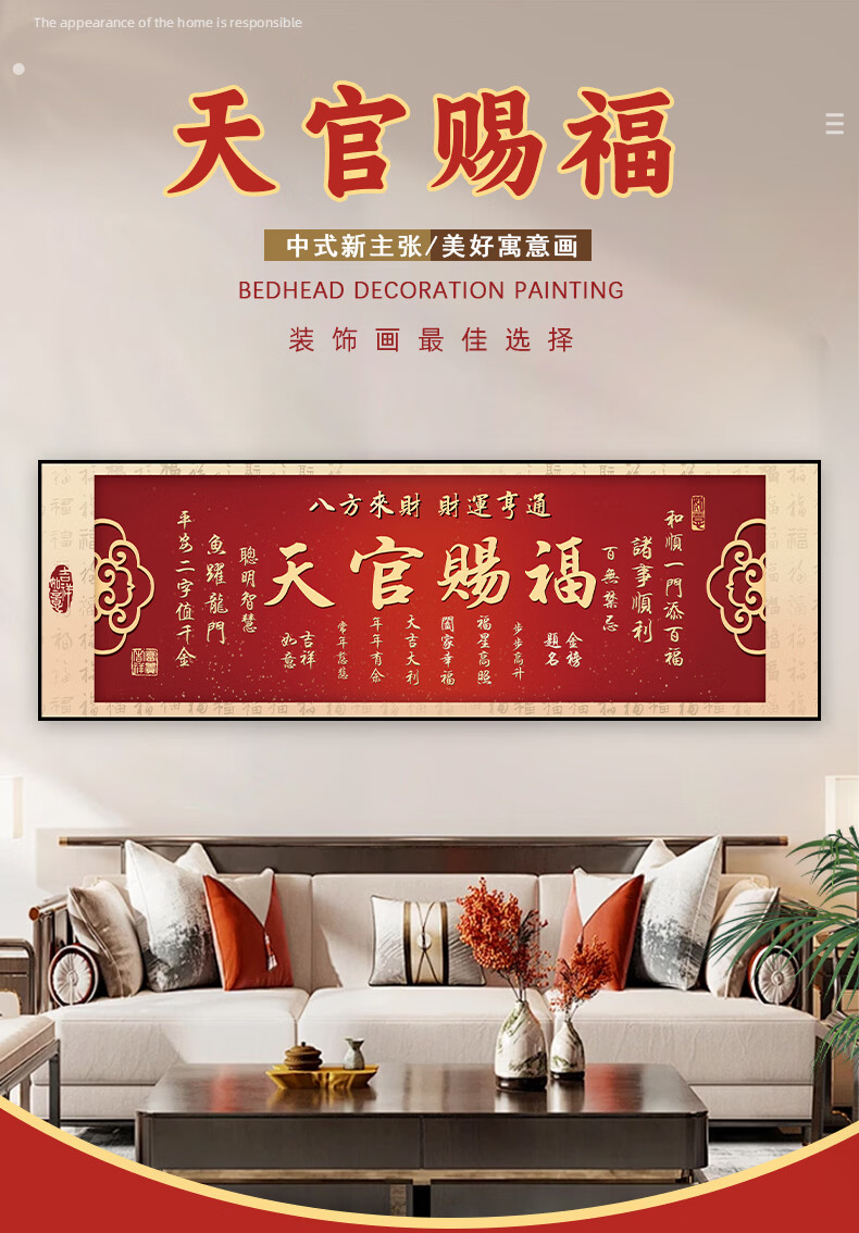 2026新款床头贴画主卧室装饰画挂画自粘客厅房间酒店背景墙壁贴纸 风生水起(不伤墙面简单易贴) 宽270cm-高90cm