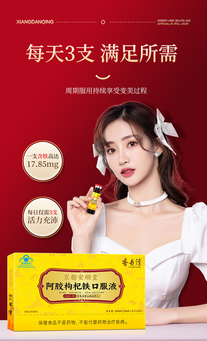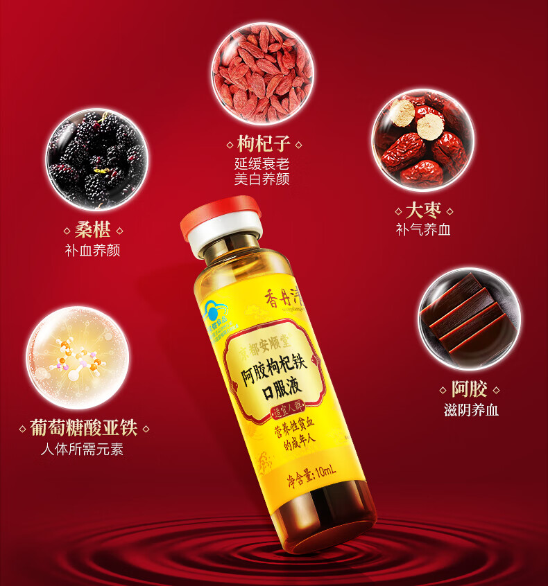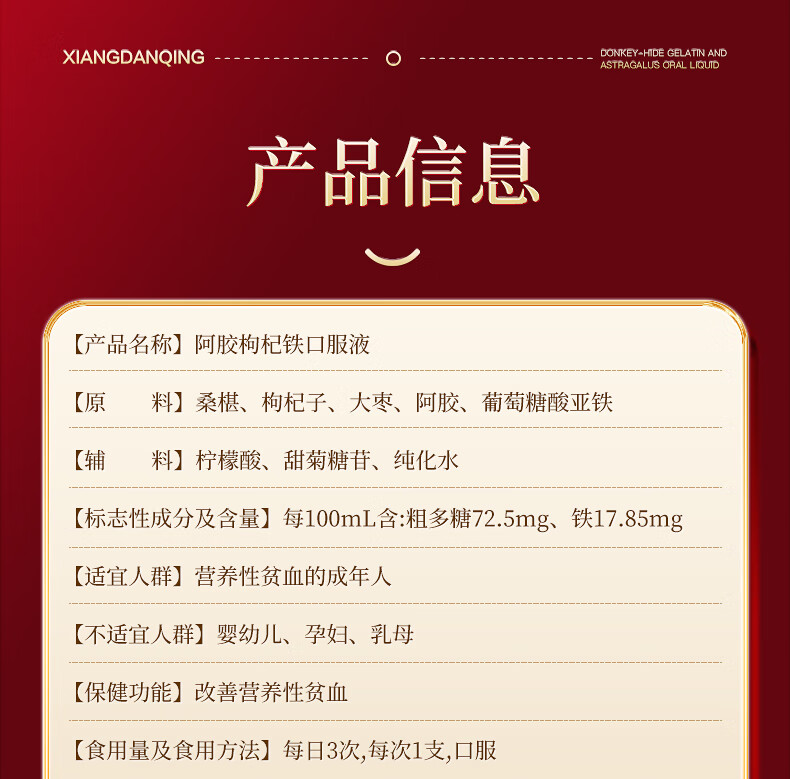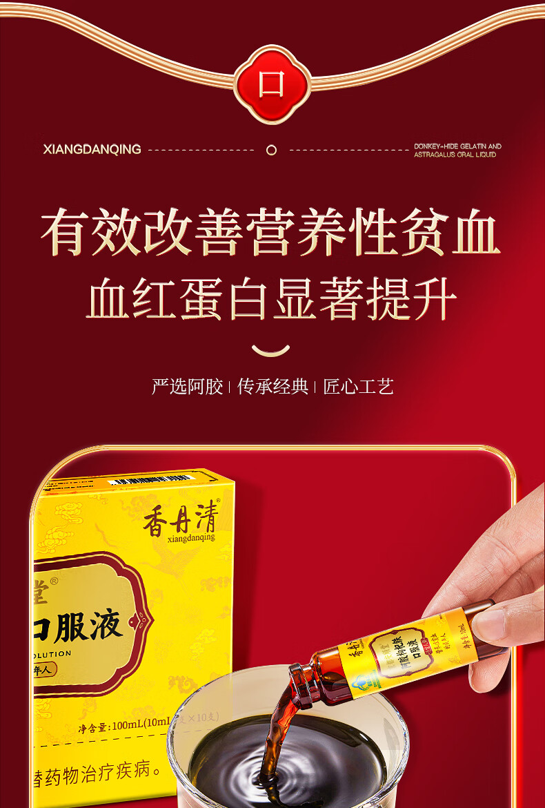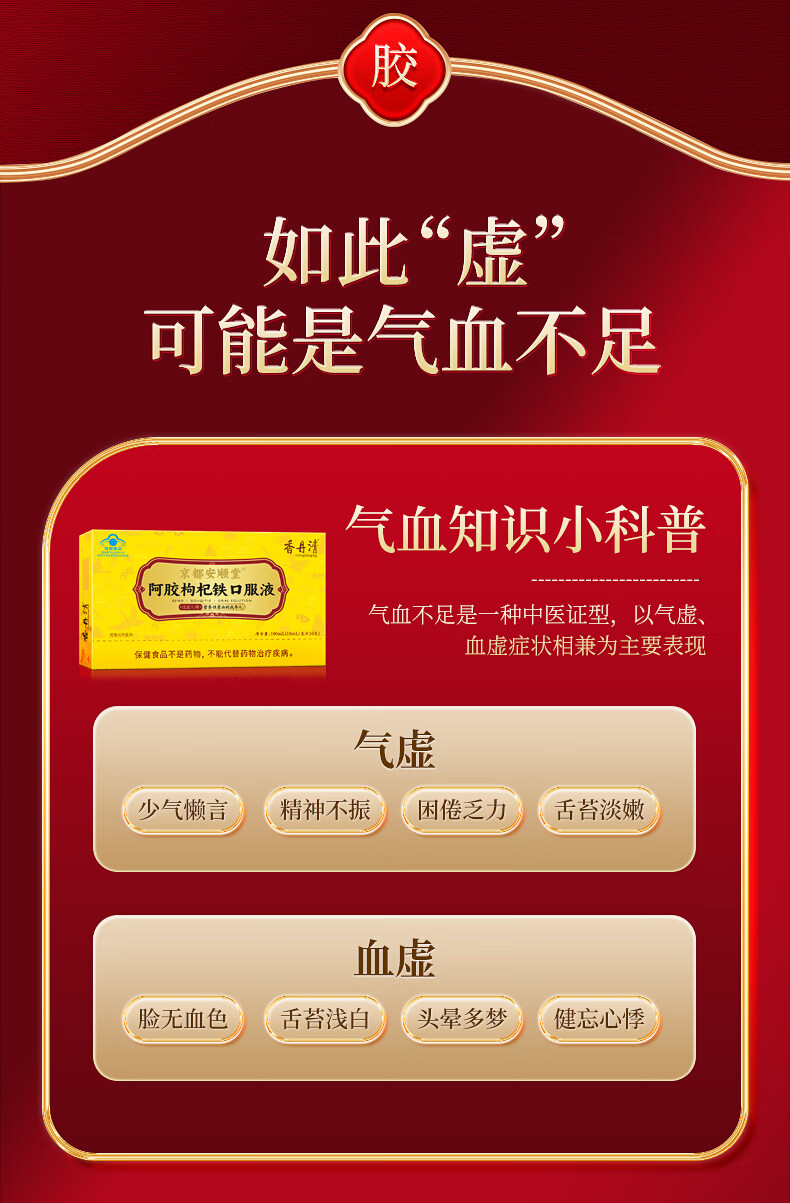 香丹清阿胶枸杞铁口服液贫血中老年人补气补血女性成人桑椹送礼 【补气补血】阿胶口服液*3盒