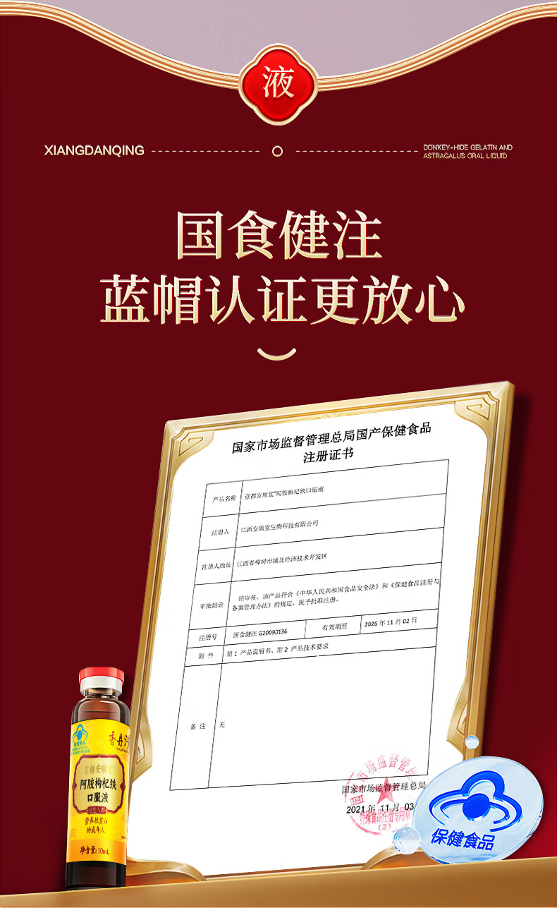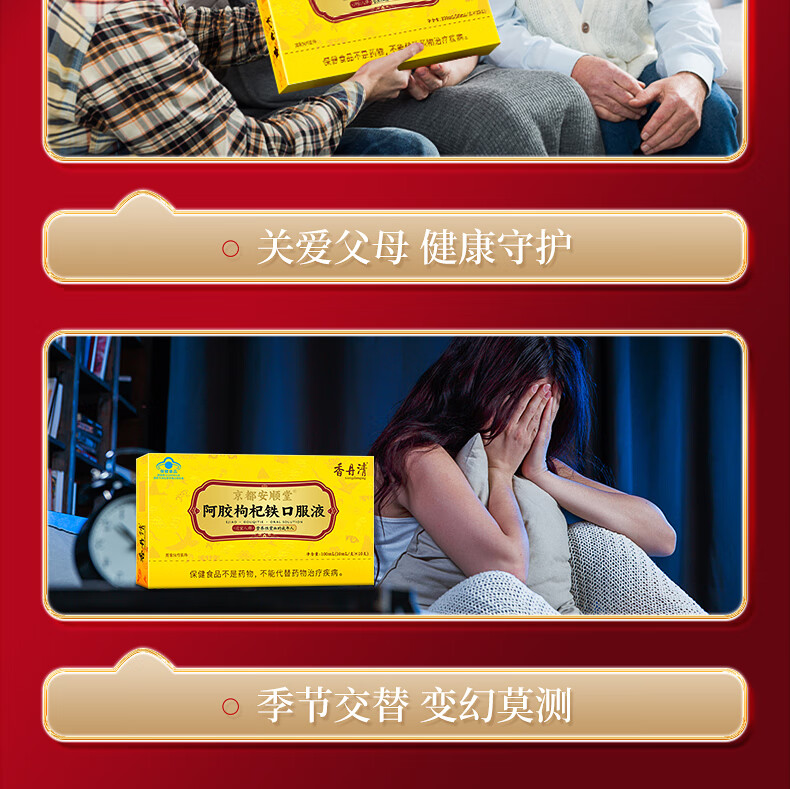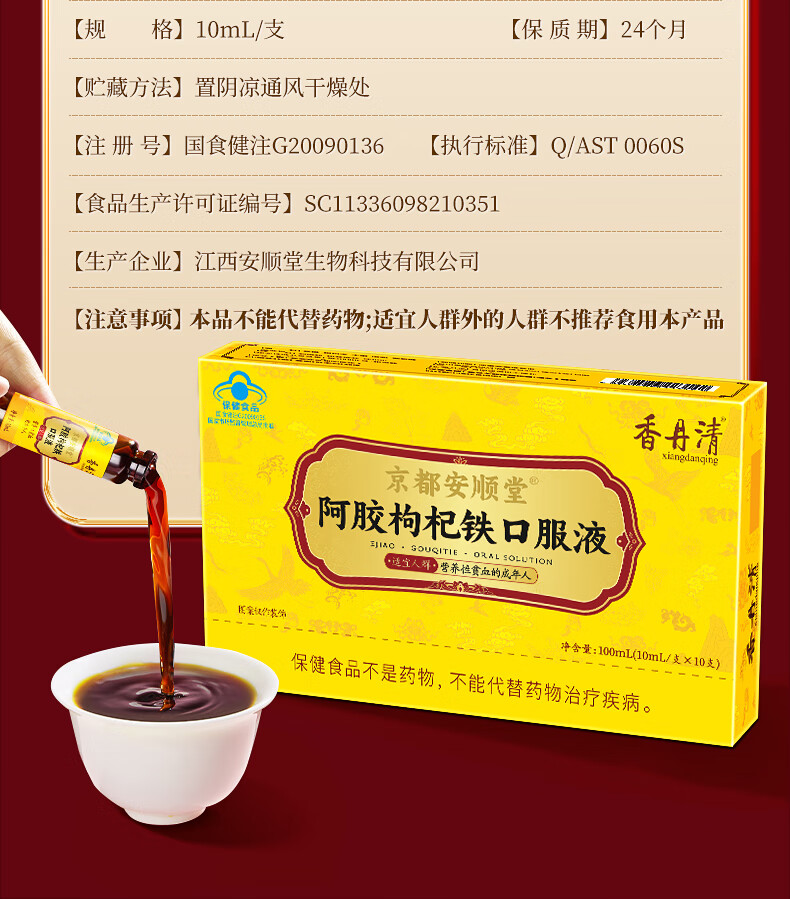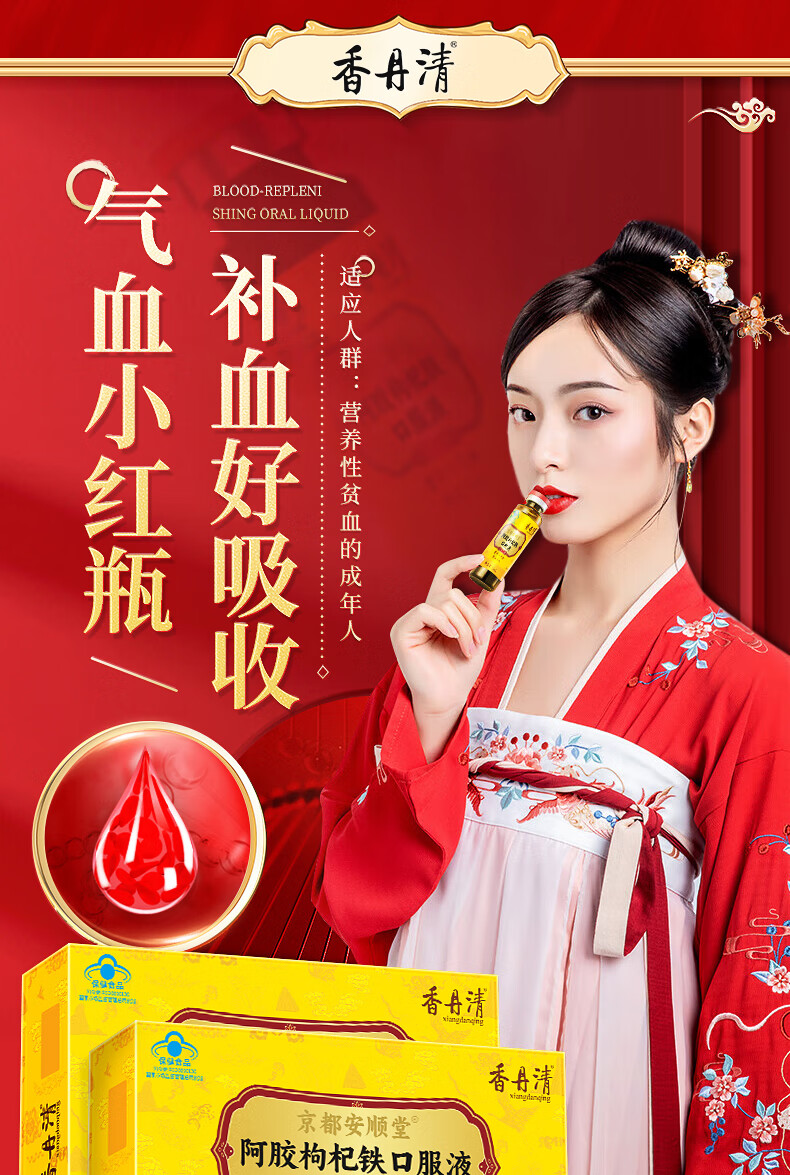 香丹清阿胶枸杞铁口服液贫血中老年人补气补血女性成人桑椹送礼 【补气补血】阿胶口服液*3盒