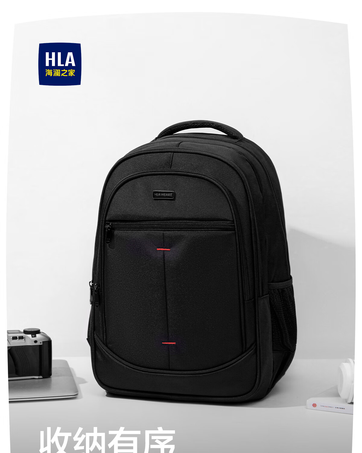 海澜之家双肩包男背包大容量电脑包男士户外旅行防泼水商务包学生简约书包 黑色