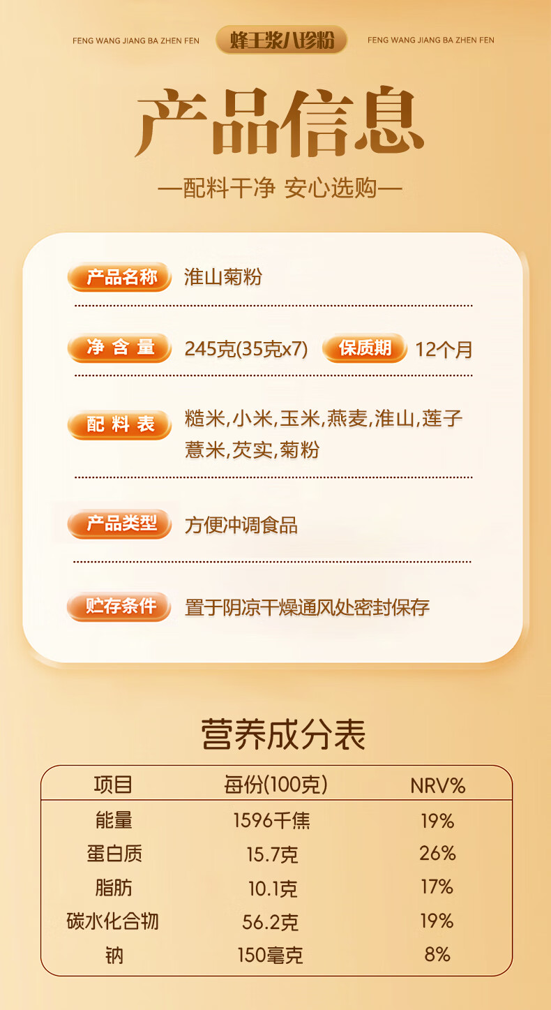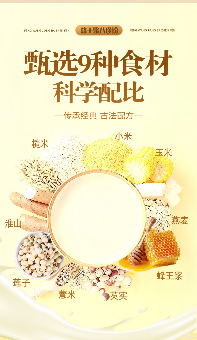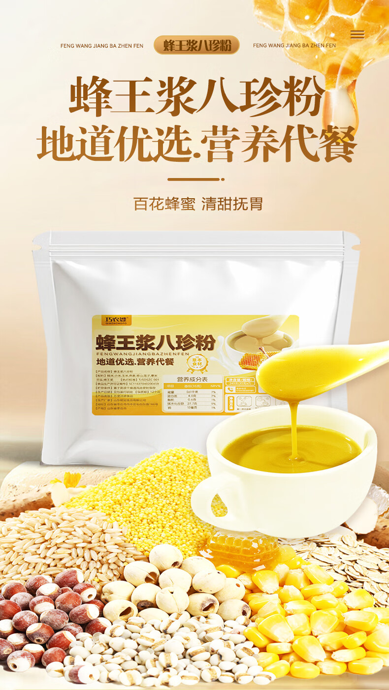巧农婆蜂王浆八珍粉245g营养早餐代餐粉即食冲泡食补调理养胃滋补营养品 八珍粉 245g*3袋