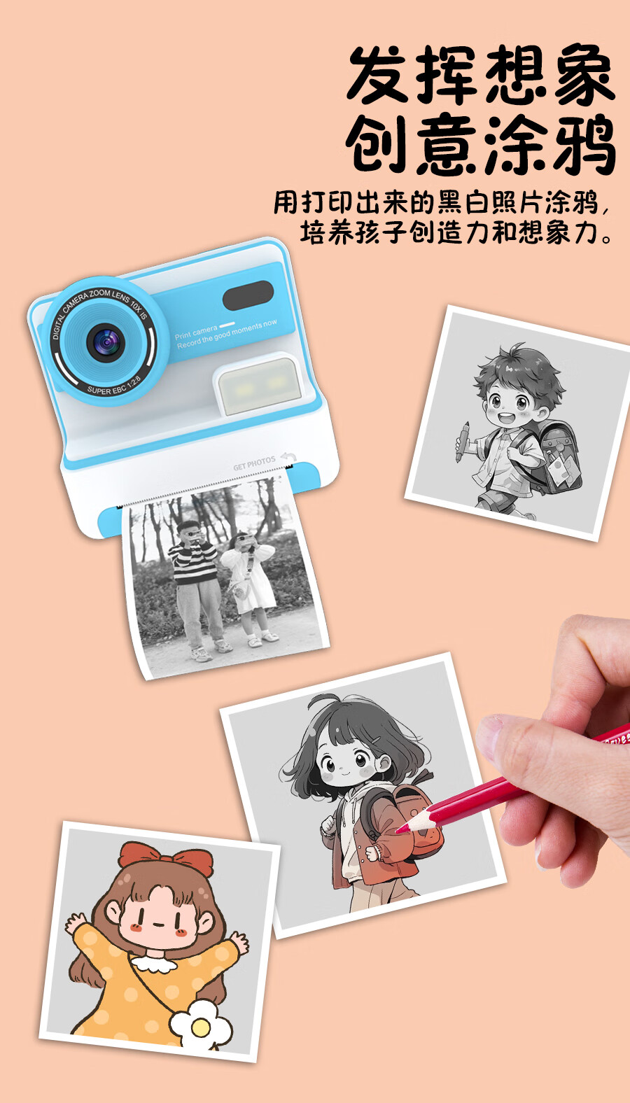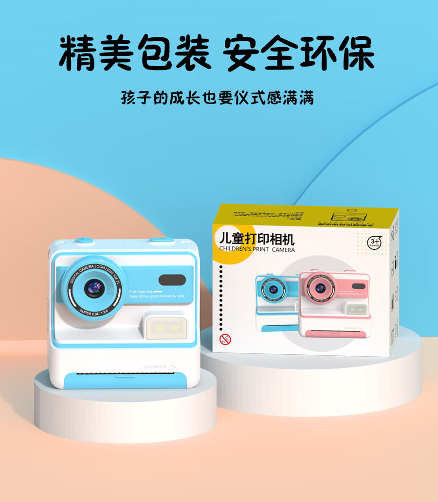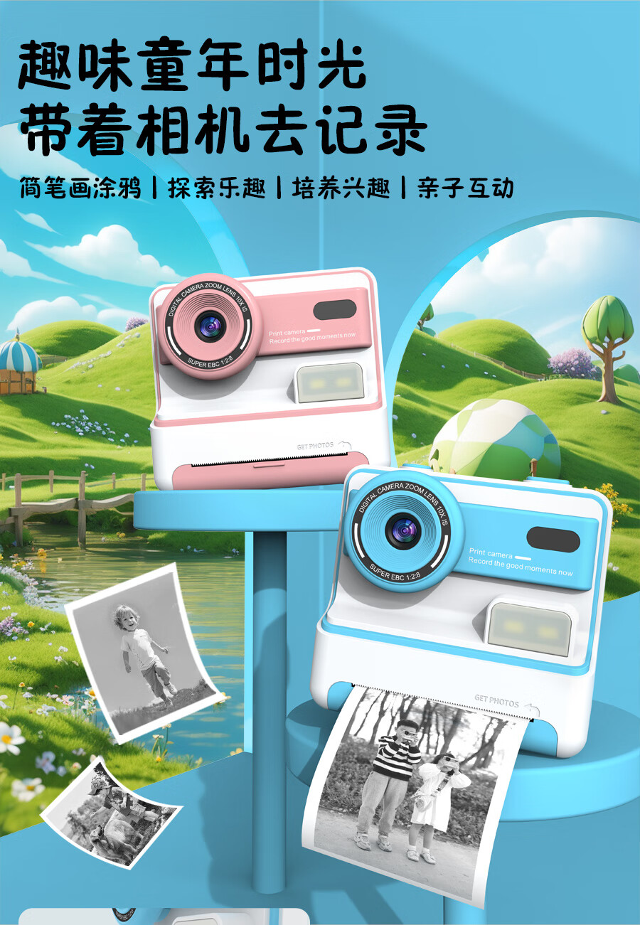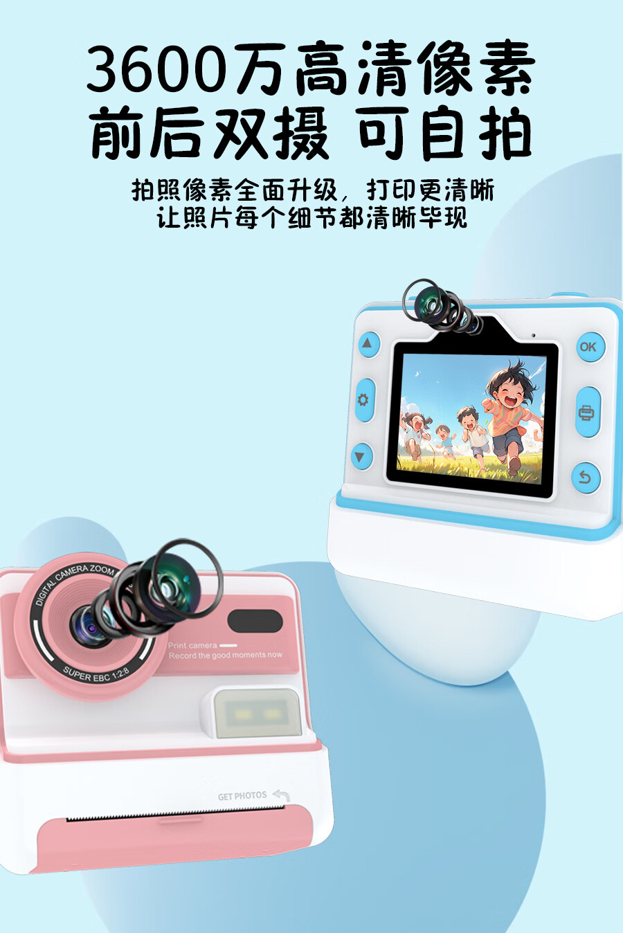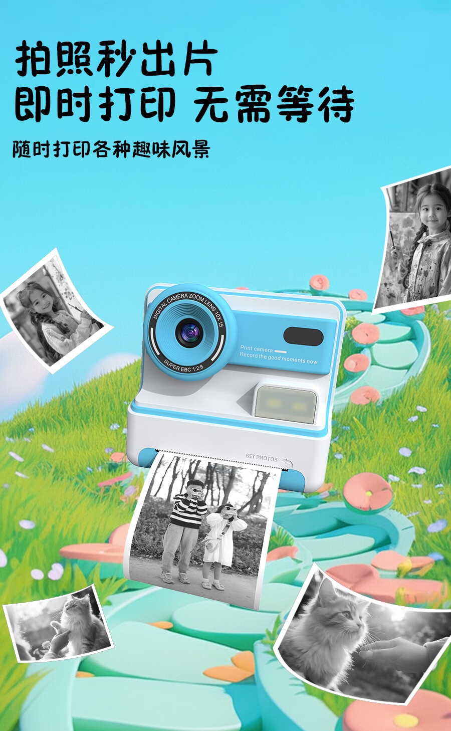 巧智拍立得相机一次成像便携拍照打印一体机高清双摄数码相机卡片机学生旅游随身拍 蓝色【拍立得/前后双摄】+打印纸10卷 标配【含32G内存卡】