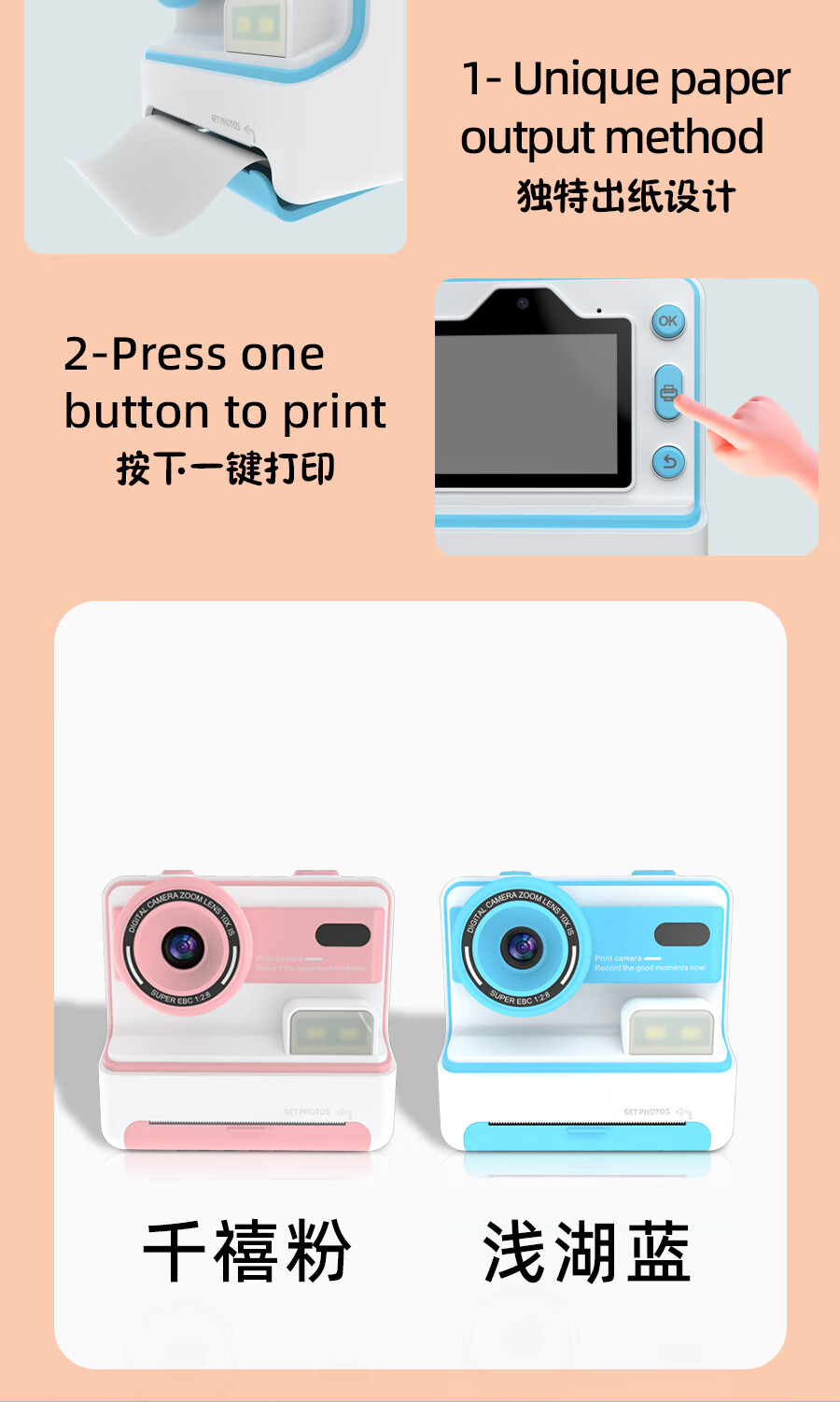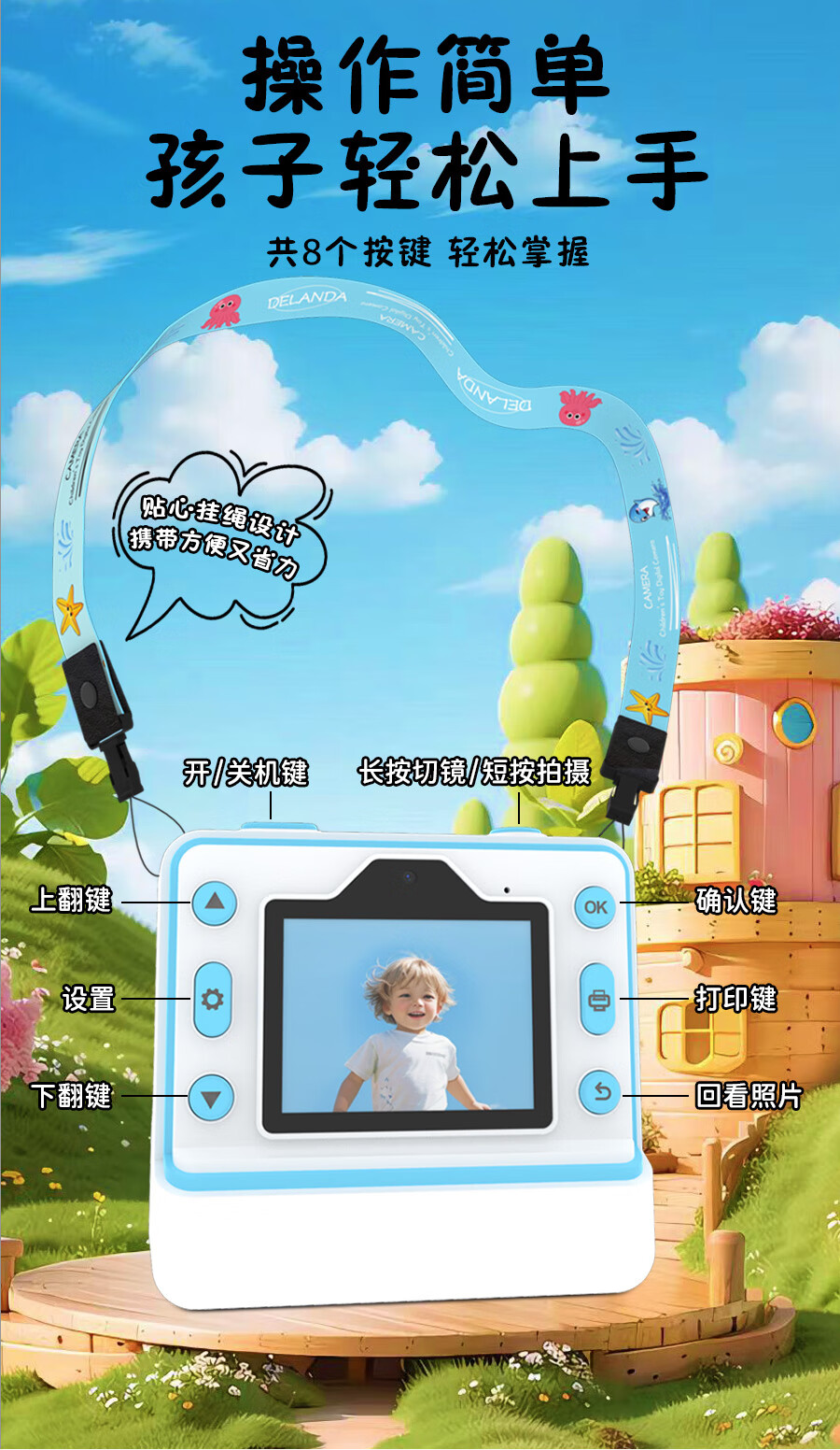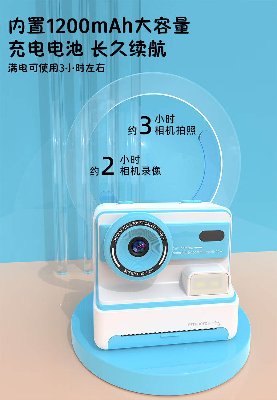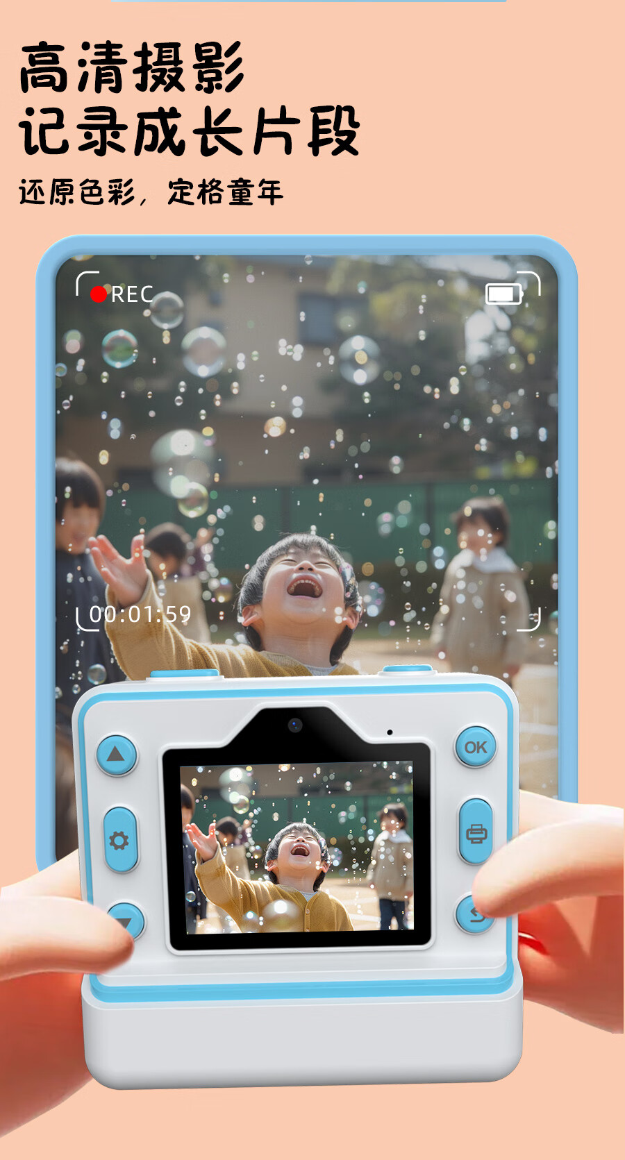 巧智拍立得相机一次成像便携拍照打印一体机高清双摄数码相机卡片机学生旅游随身拍 蓝色【拍立得/前后双摄】+打印纸10卷 标配【含32G内存卡】