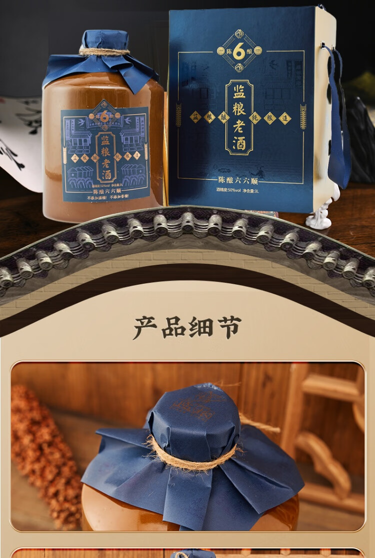 监粮 传统智慧·民间情趣陈坛老酒六六顺监利粮酒糯谷原酒3L陶坛50度小曲清香纯粮固态白酒 50%vol 3000mL 1坛