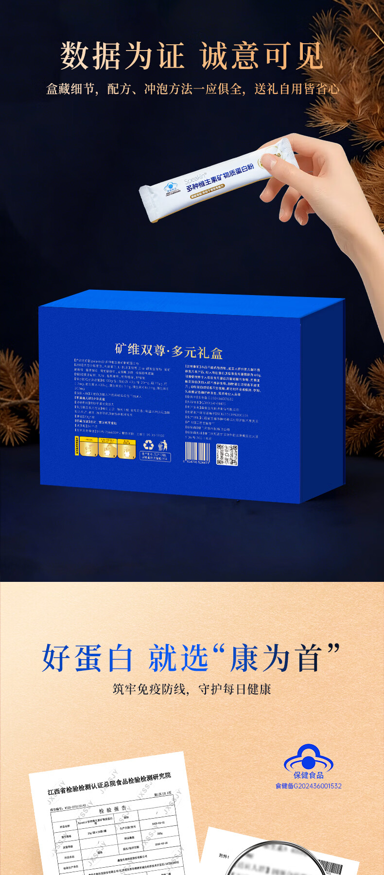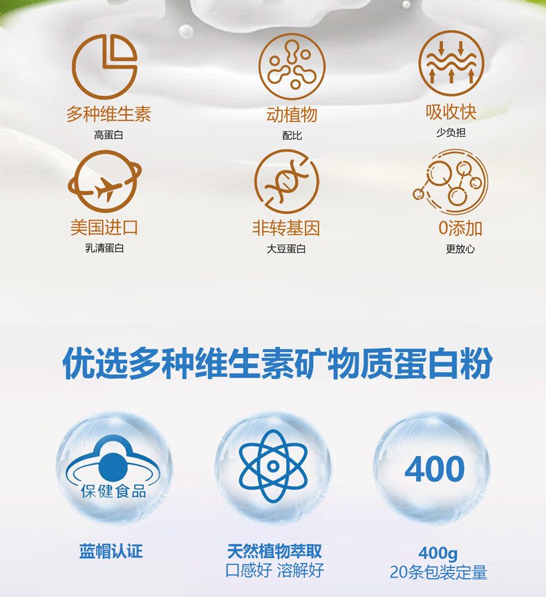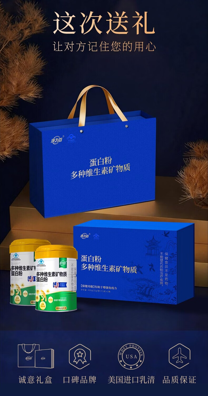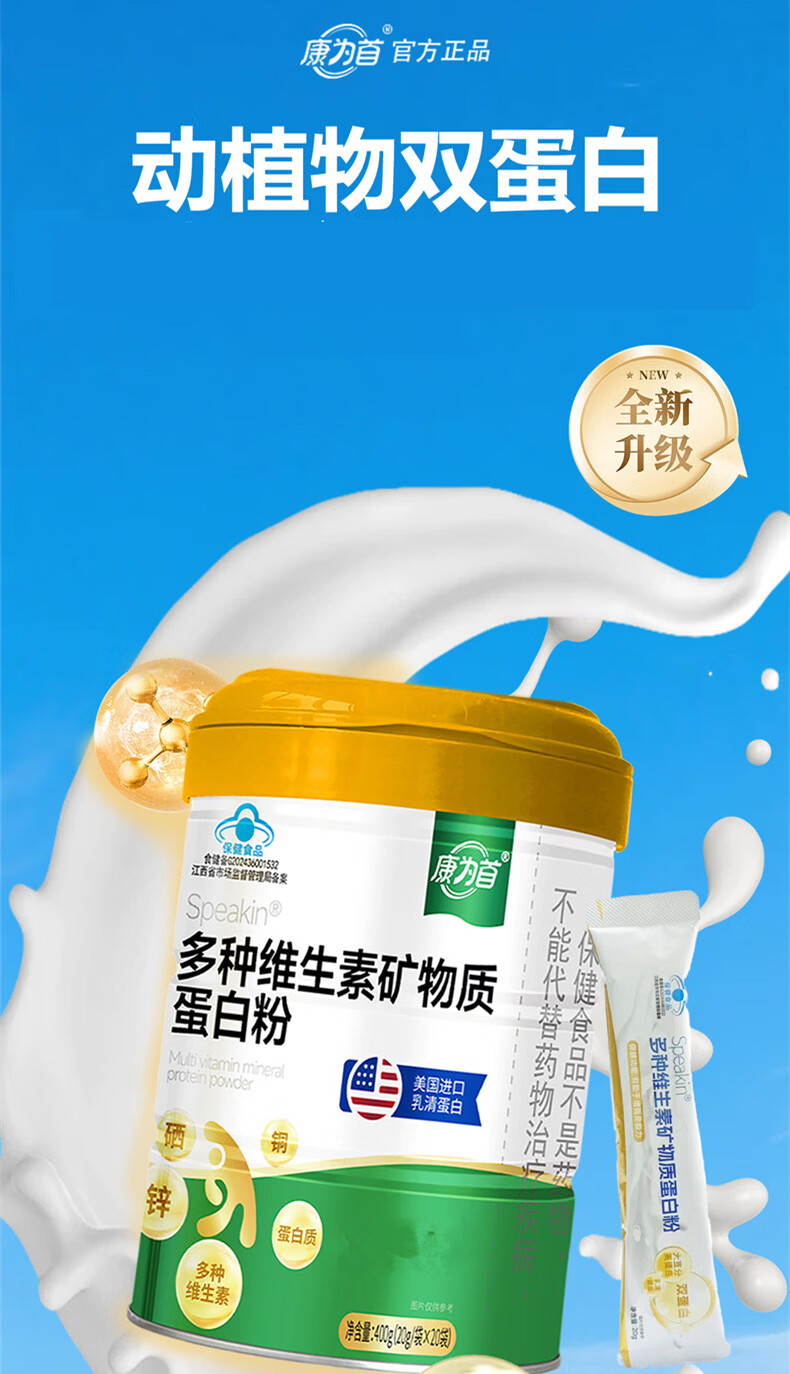 康为首 优质双蛋白质粉 多种矿物质维生素助增强身体免疫力男女营养品 升级版配方多种维生素双蛋白粉 400g*2罐