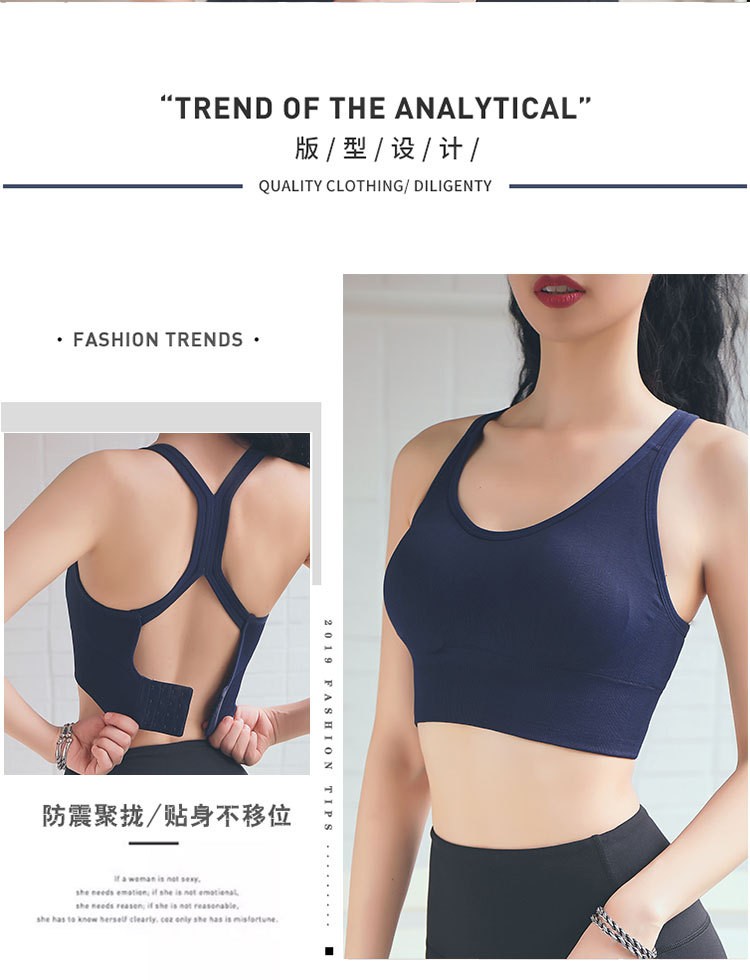 将远行新款运动背心瑜伽健身跑步文胸背心式无钢圈胸衣学生bra 藏青色 L (建议115-130斤)