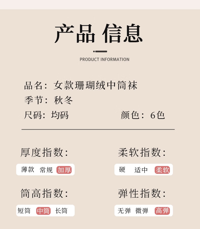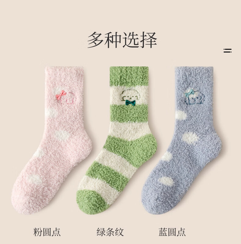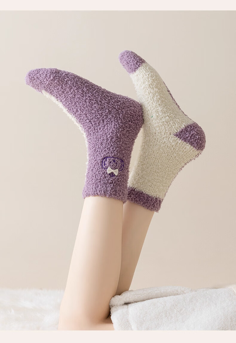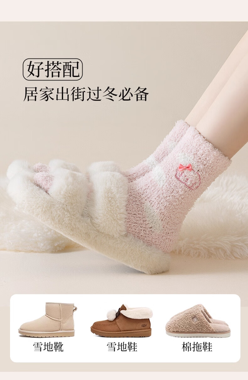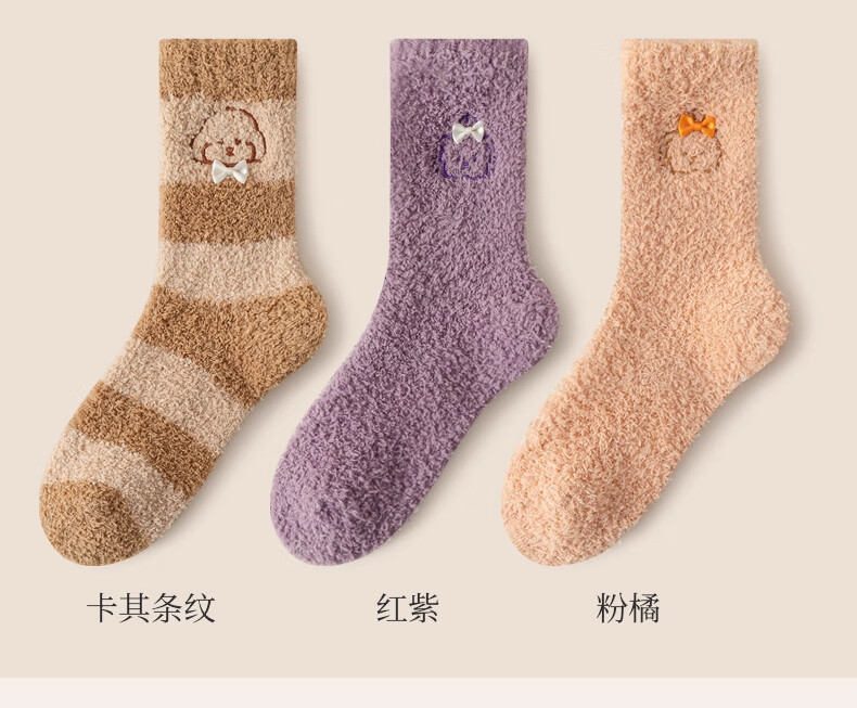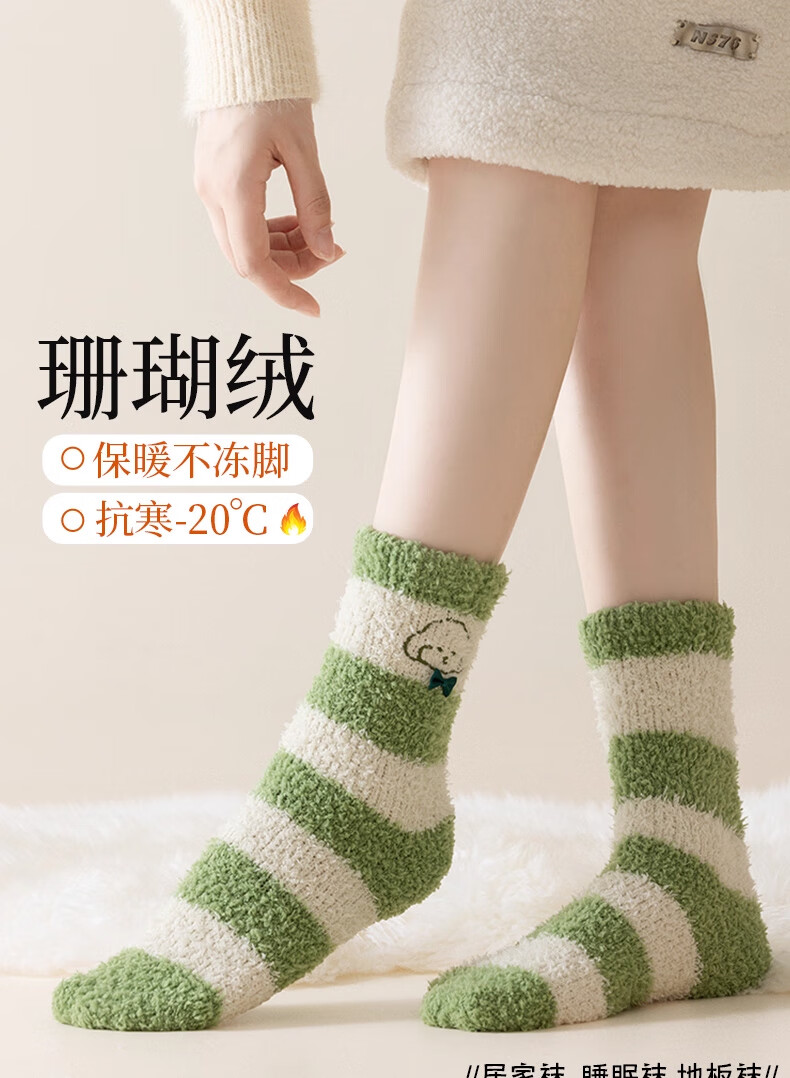 洛·恋珊瑚绒袜子女中筒秋冬季加厚加绒家居保暖舒适月子睡眠地板长筒袜 1粉1卡其1绿1红紫 4双 均码