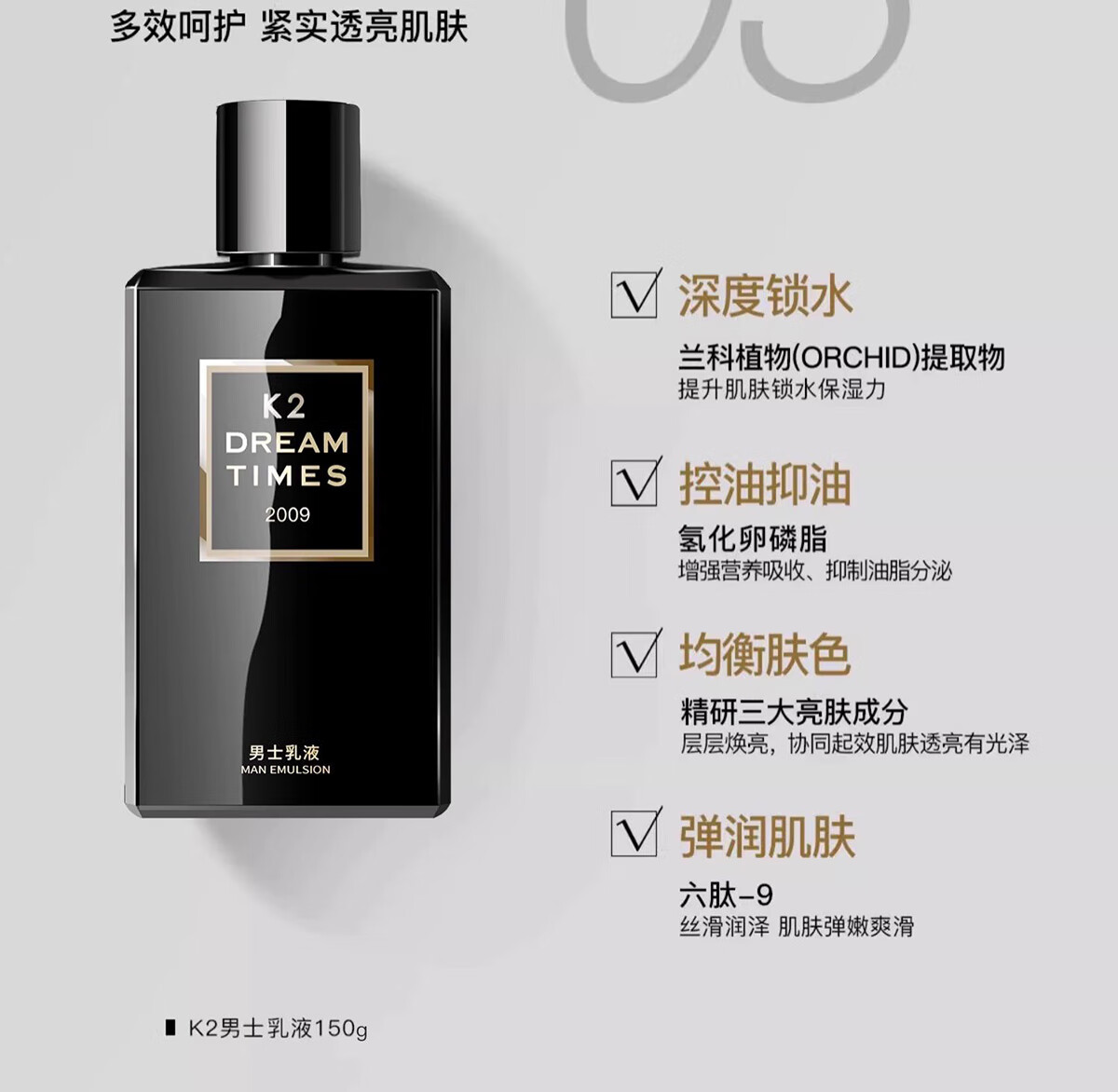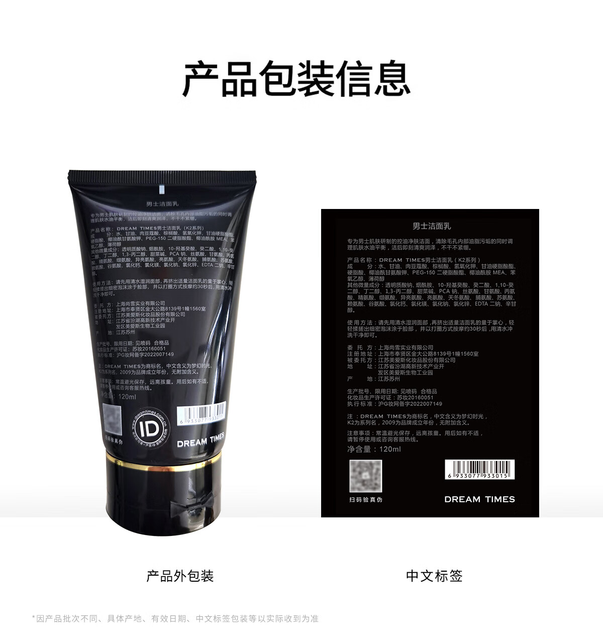 DreamtimesK2经典三部曲男士套装洁面爽肤水乳液清洁去黑头祛痘控油补水保 K2男士洁面乳120ml深层清洁祛痘