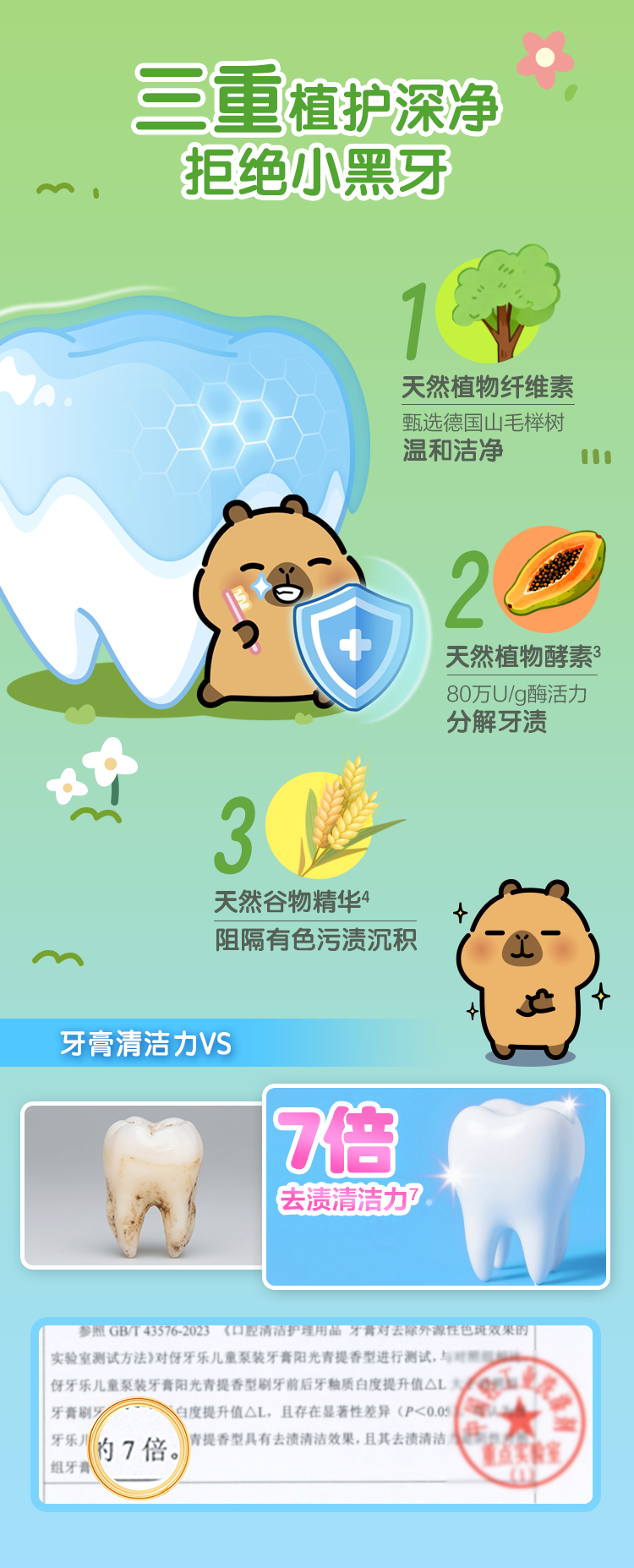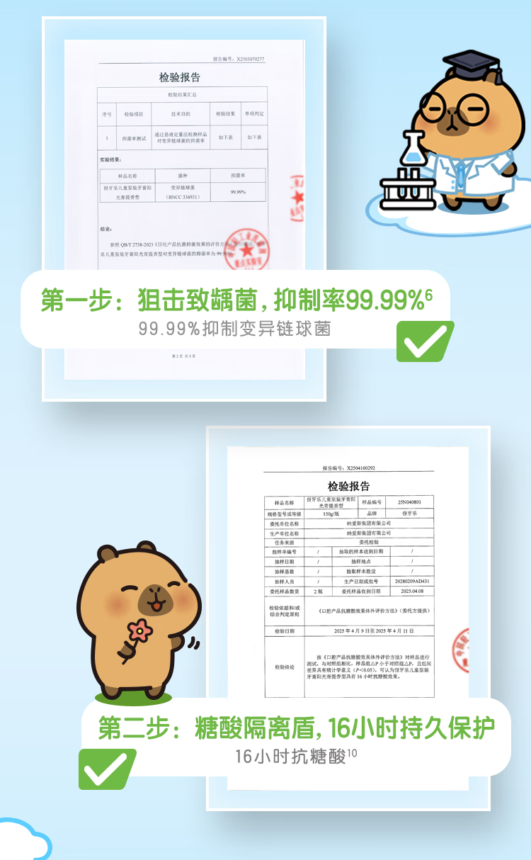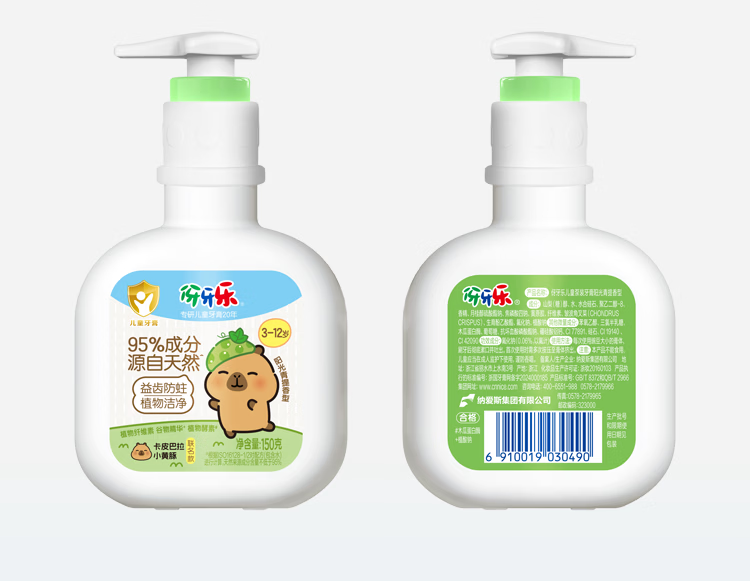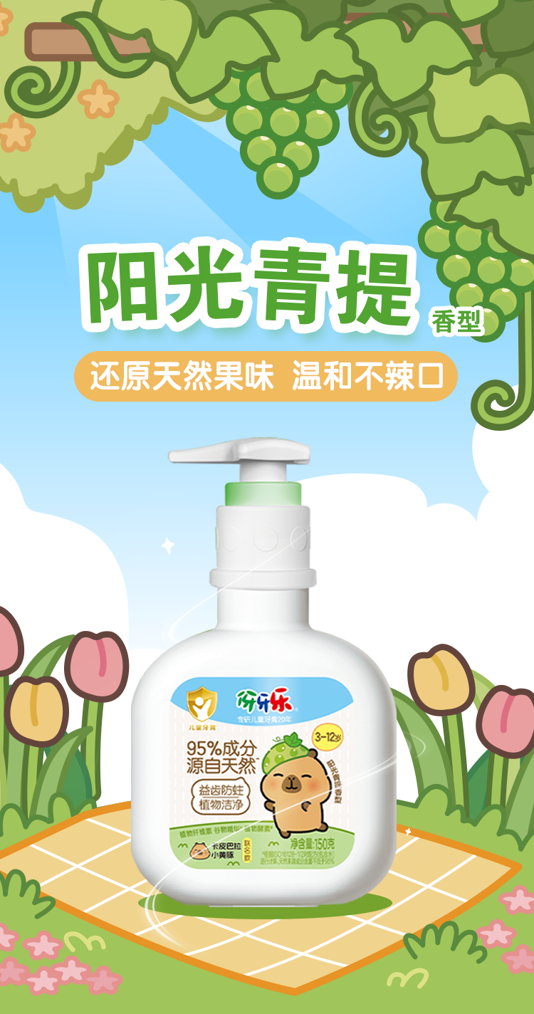 伢牙乐卡皮巴拉牙膏防蛀益齿清新口气95%成分源自天然3-12岁专研无刺激 【双支加赠】阳光青提味压泵牙膏共320g