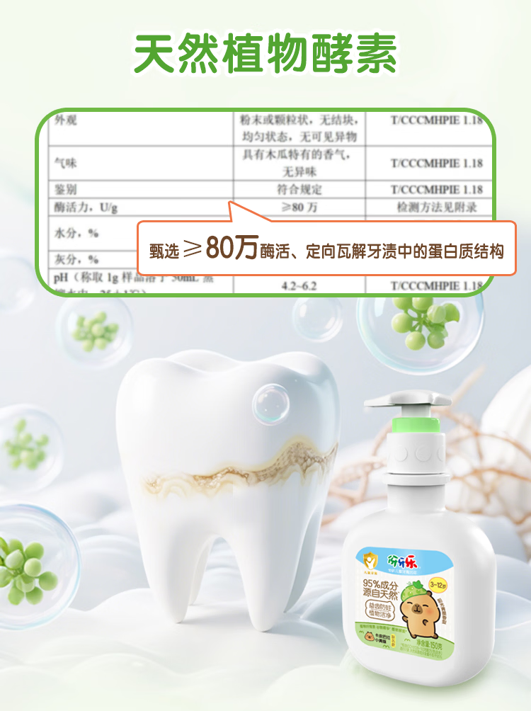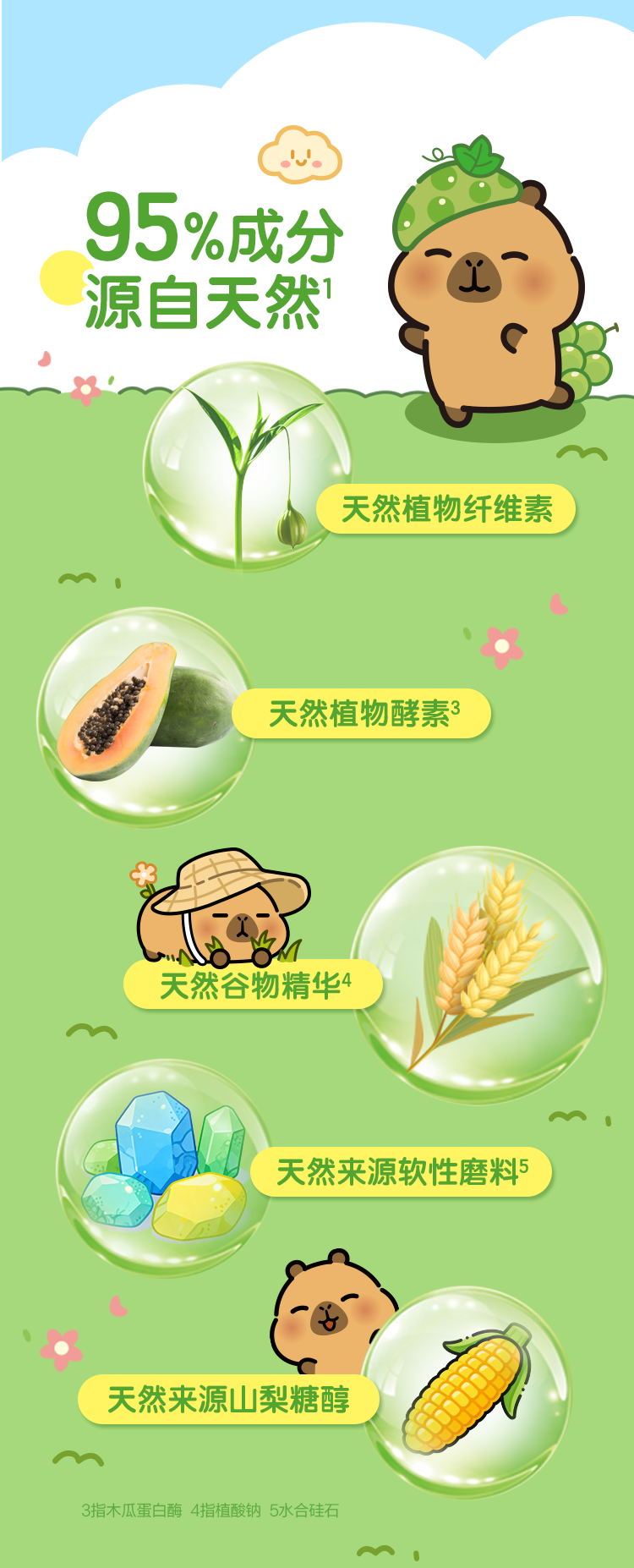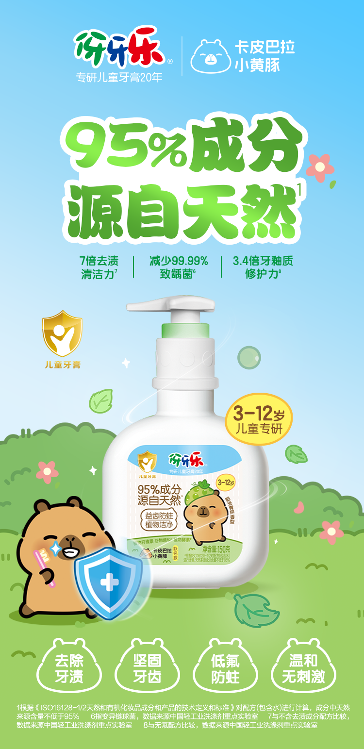 伢牙乐卡皮巴拉牙膏防蛀益齿清新口气95%成分源自天然3-12岁专研无刺激 【双支加赠】阳光青提味压泵牙膏共320g