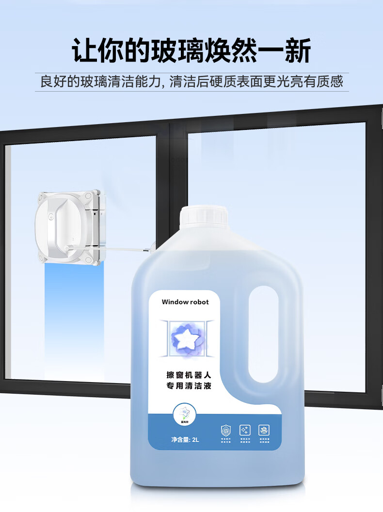 万创适用科沃斯擦窗机器人窗宝清洁液W1S Pro/Mini/W2/W920/30/50/60窗宝专用玻璃清洁剂液2L×1配件
