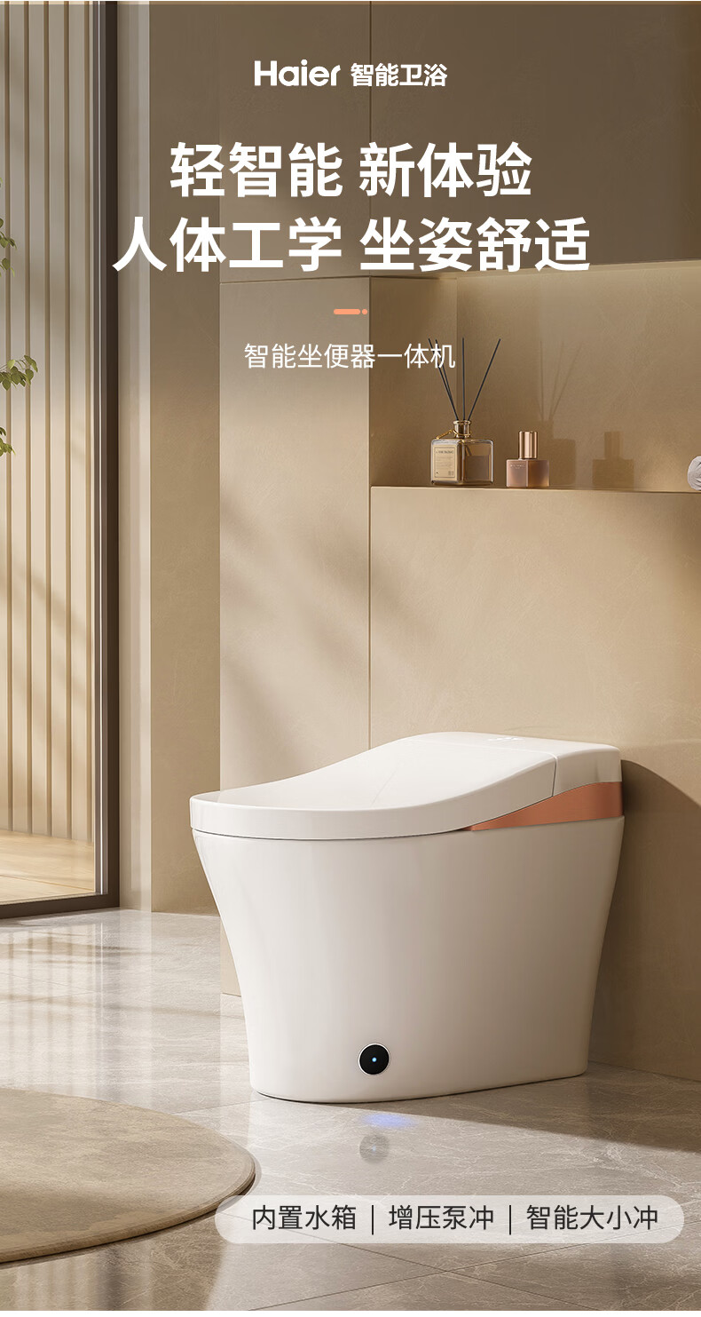 海尔(Haier)智能马桶一体机 内置水箱 增压泵冲 免触翻盖 HY30 385以上选 400mm