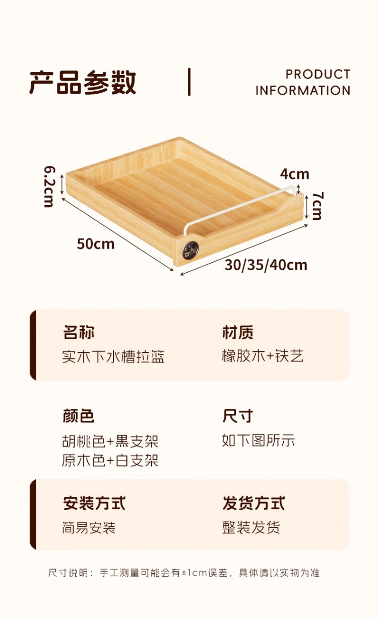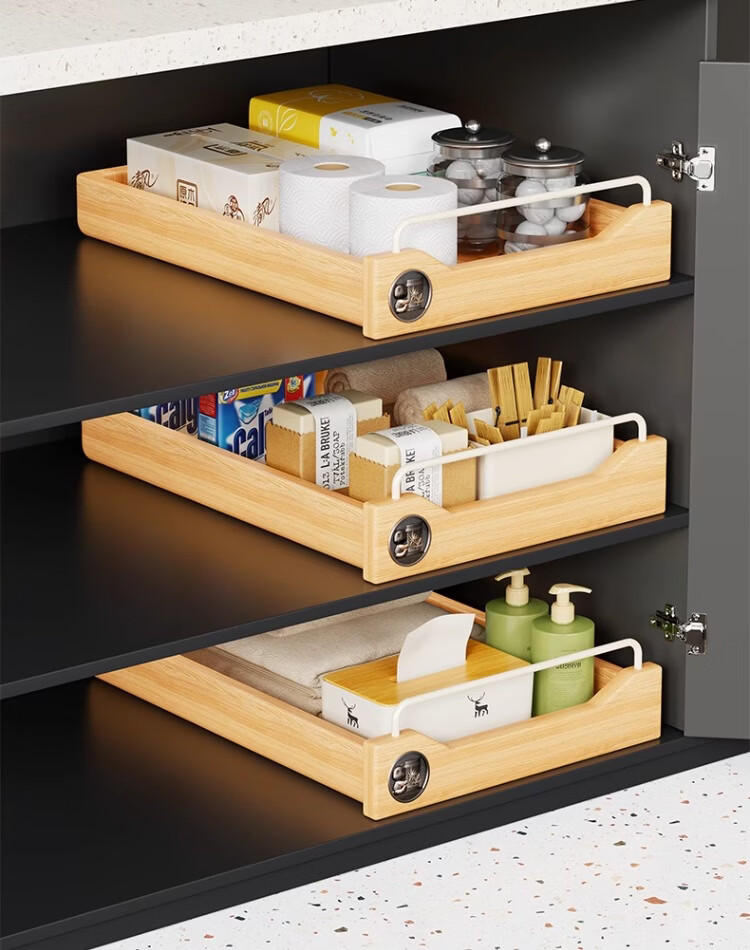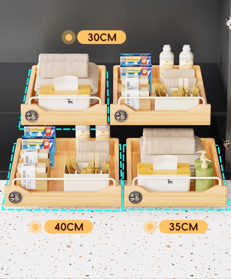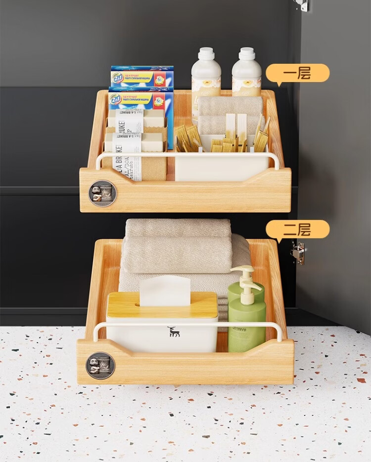 尔思家卫生间下水槽置物架浴室洗漱台下拉篮柜子内收纳抽拉式整理分层架 原木色30cm【进口实木】