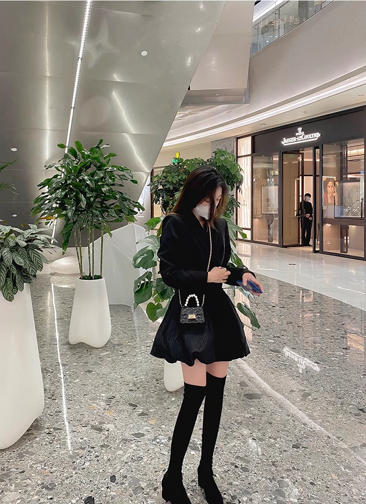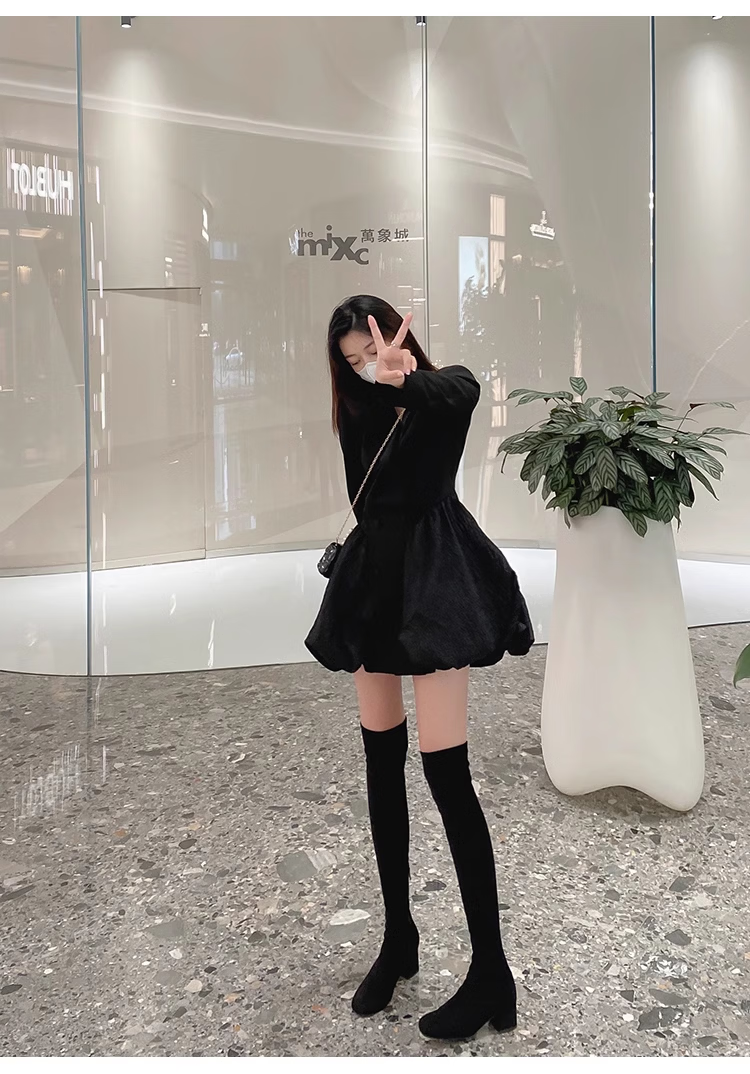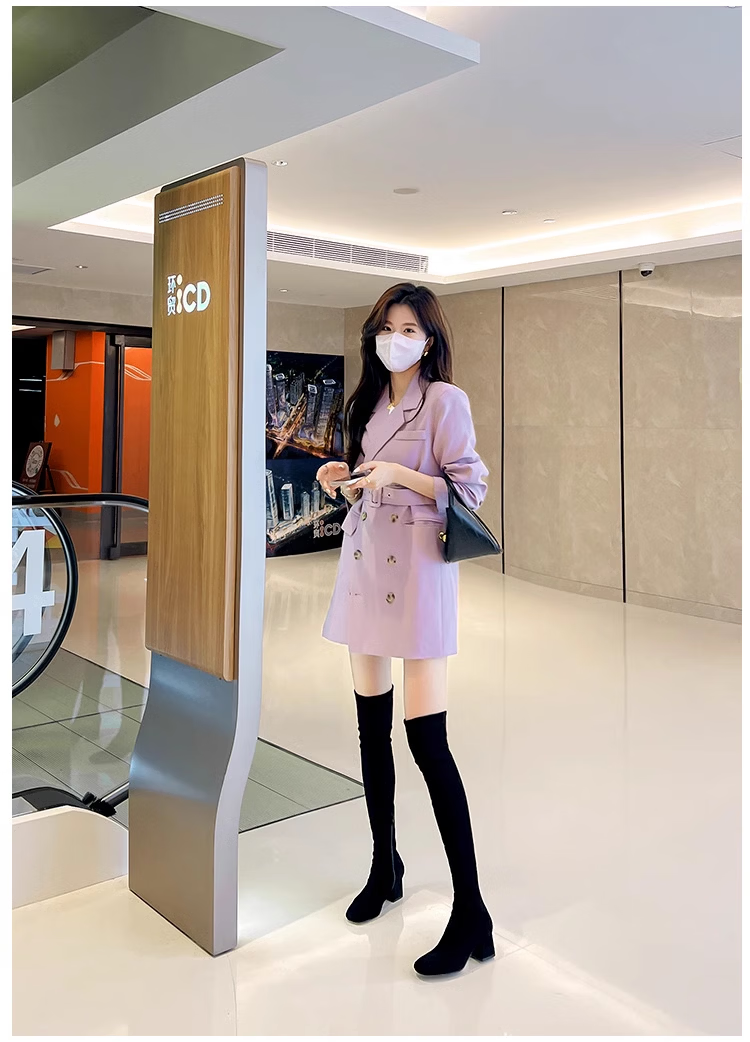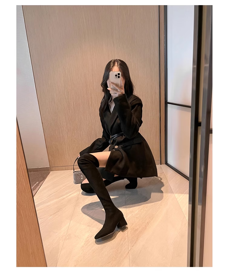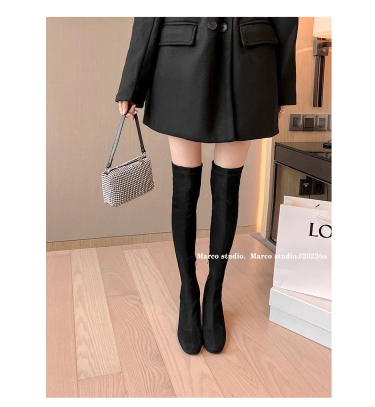 稻草人(MEXICAN)过膝靴长靴女2026秋冬季新款弹力高筒靴小个子增高粗跟瘦瘦高跟靴 杏色升级版【有拉链款】 35