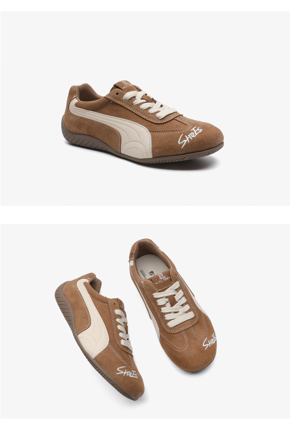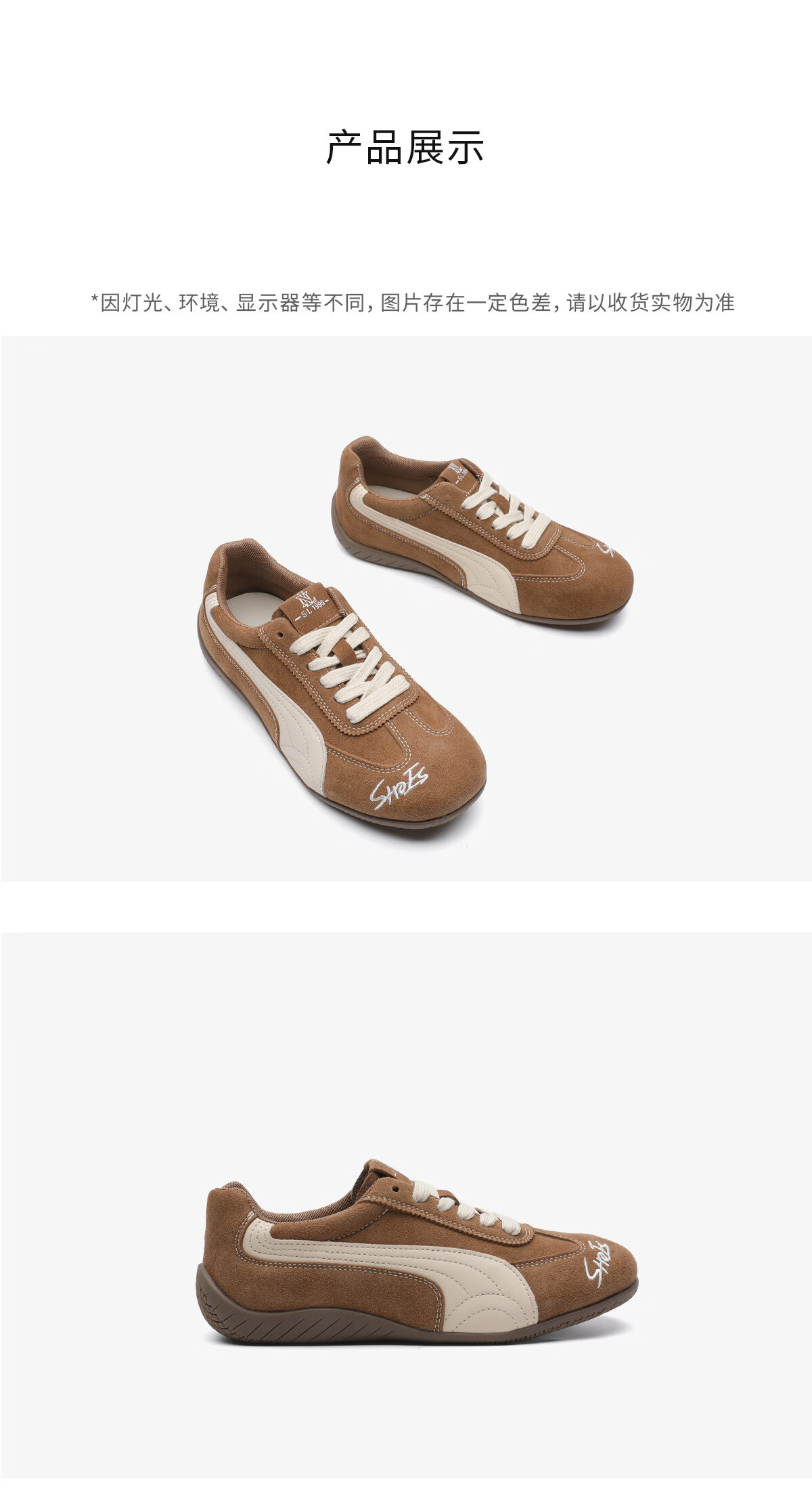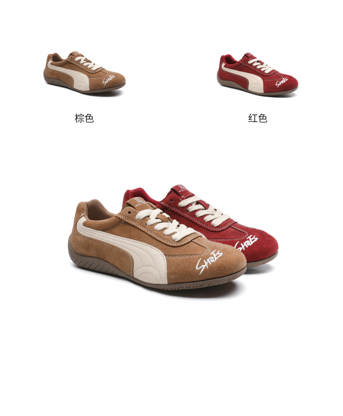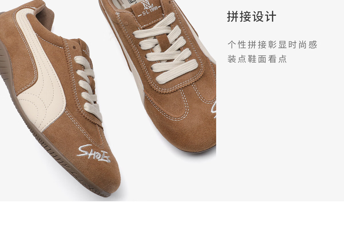 月芽儿红色拼色德训鞋女2025年冬季季新款系带休闲鞋复古运动软底女鞋 棕色03S 34