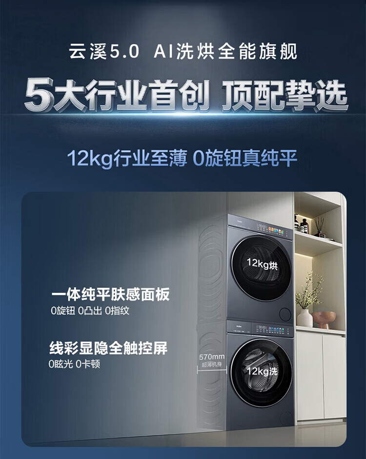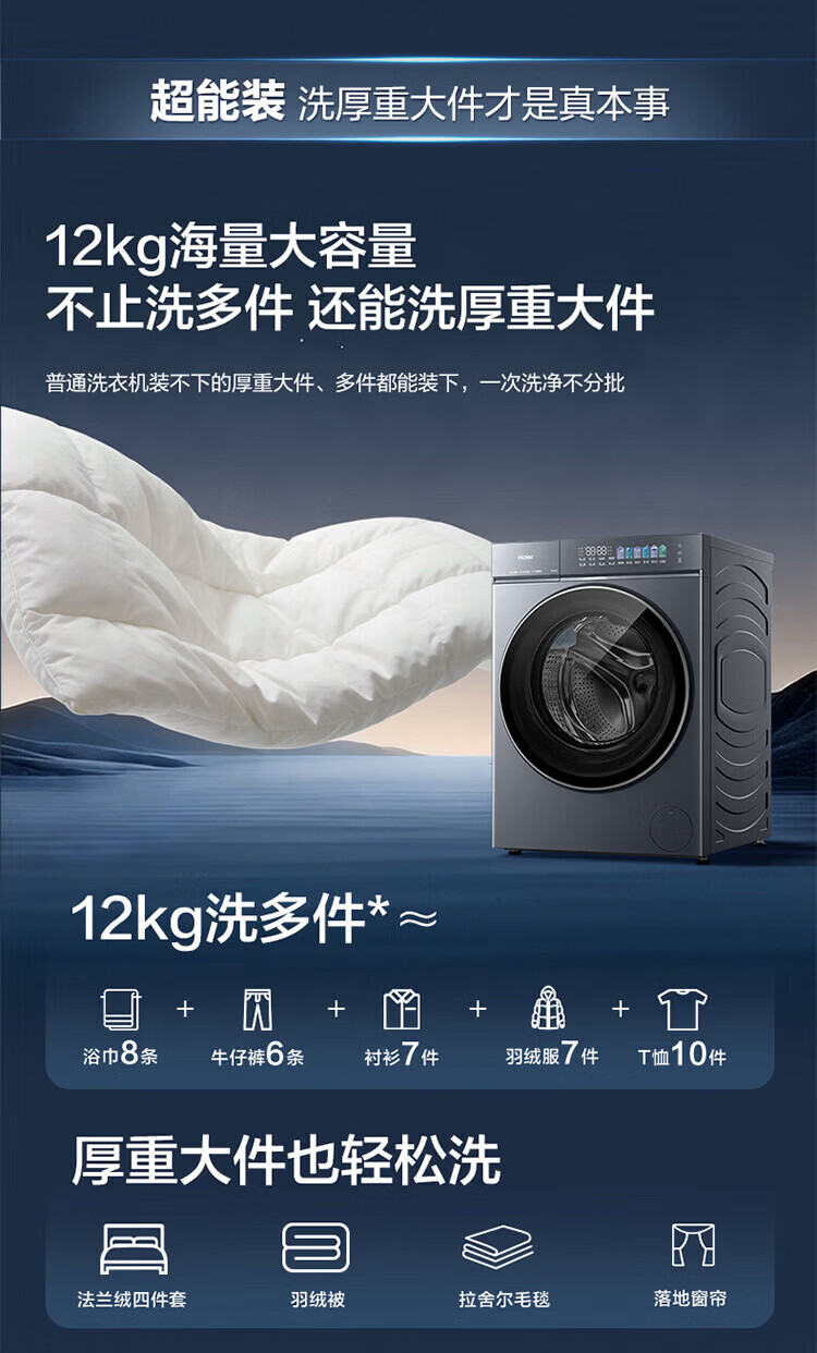 海尔(Haier)【云溪5.0重磅首发新品】12公斤直驱滚筒洗烘套装全自动滚筒洗衣机+双擎热泵烘干机 蓝盾双效除菌 重磅新品|洗烘套装|12KG洗+12KG烘