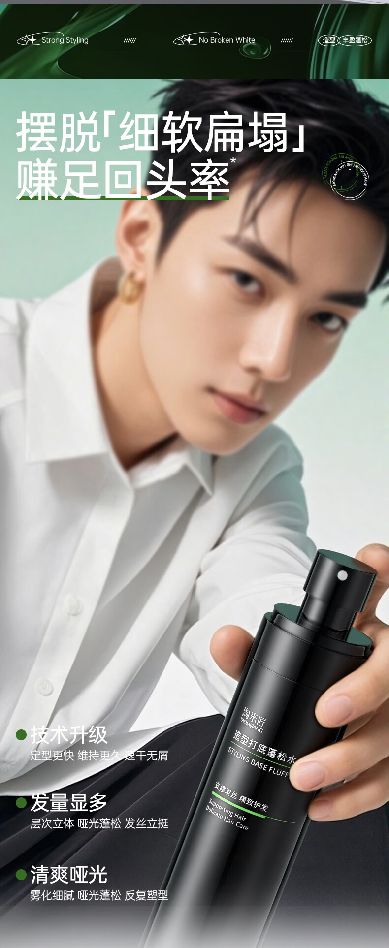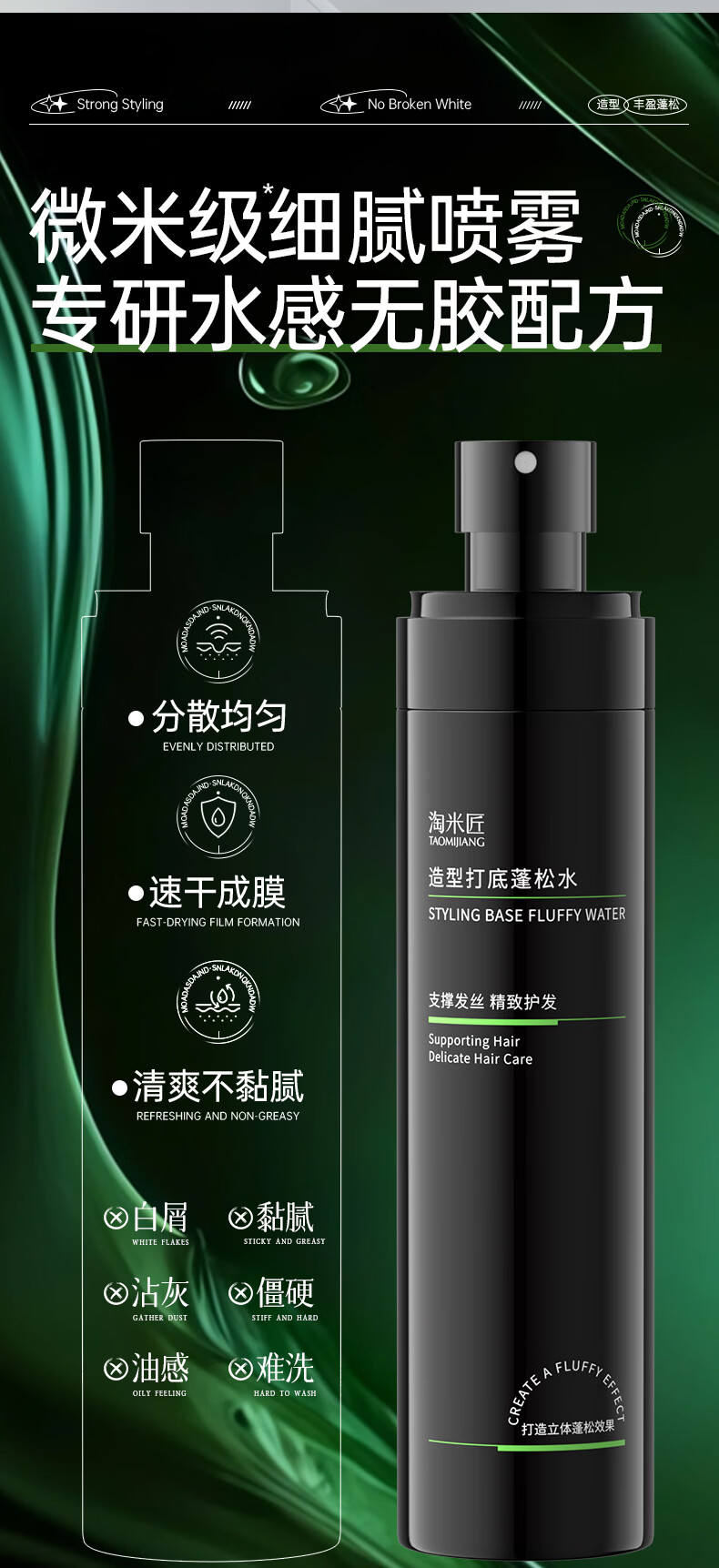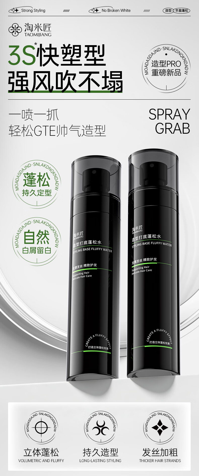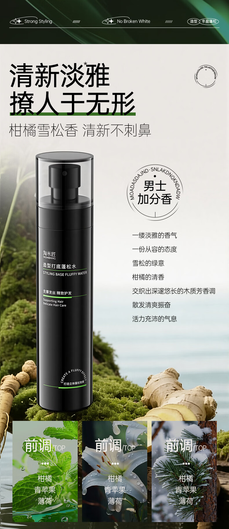 淘米匠蓬松水免洗头发蓬松喷雾去油定型干发喷雾控油持久蓬松高颅顶男士