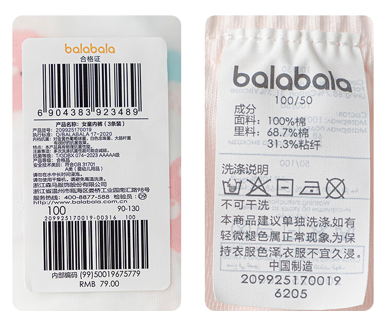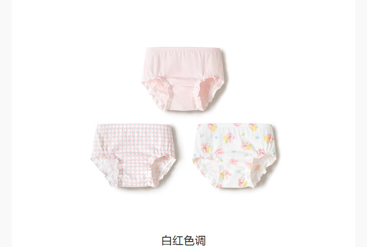 巴拉巴拉宝宝面包裤女童三角短裤婴儿内裤戒尿不湿a类亲肤三条装 白红色调00316 3条 100