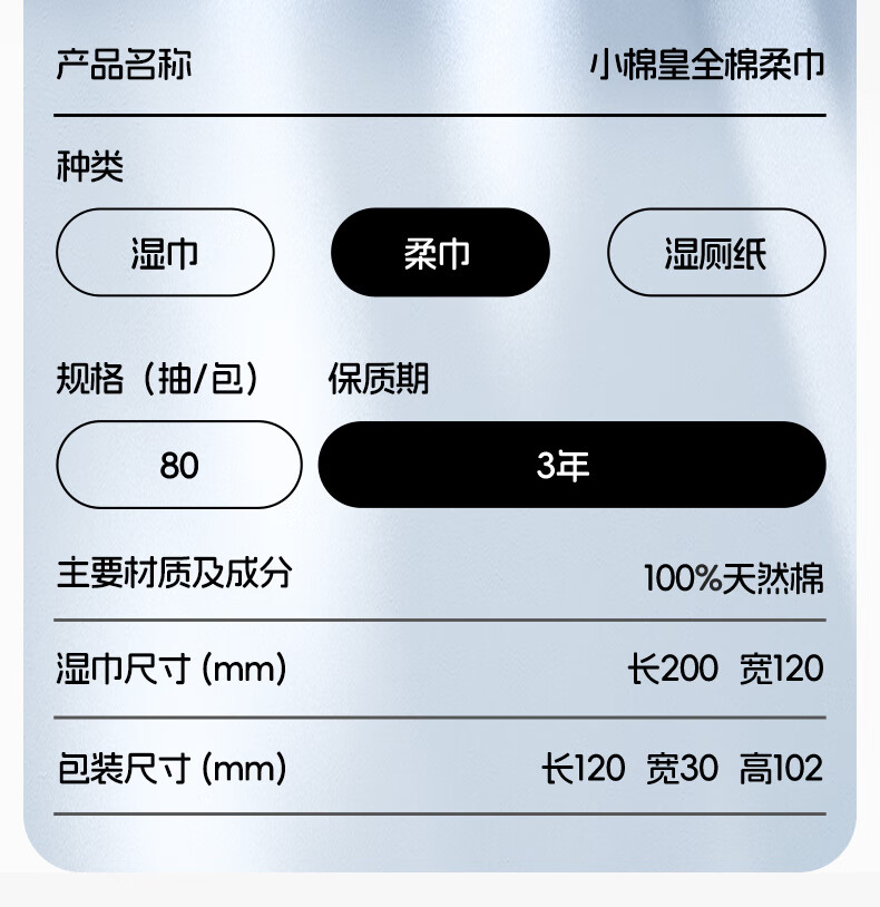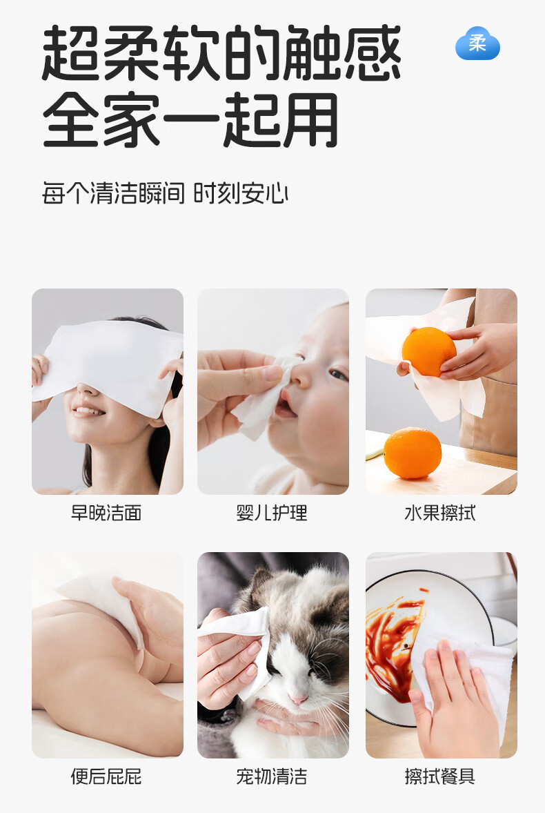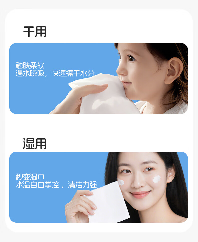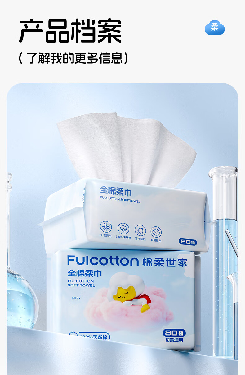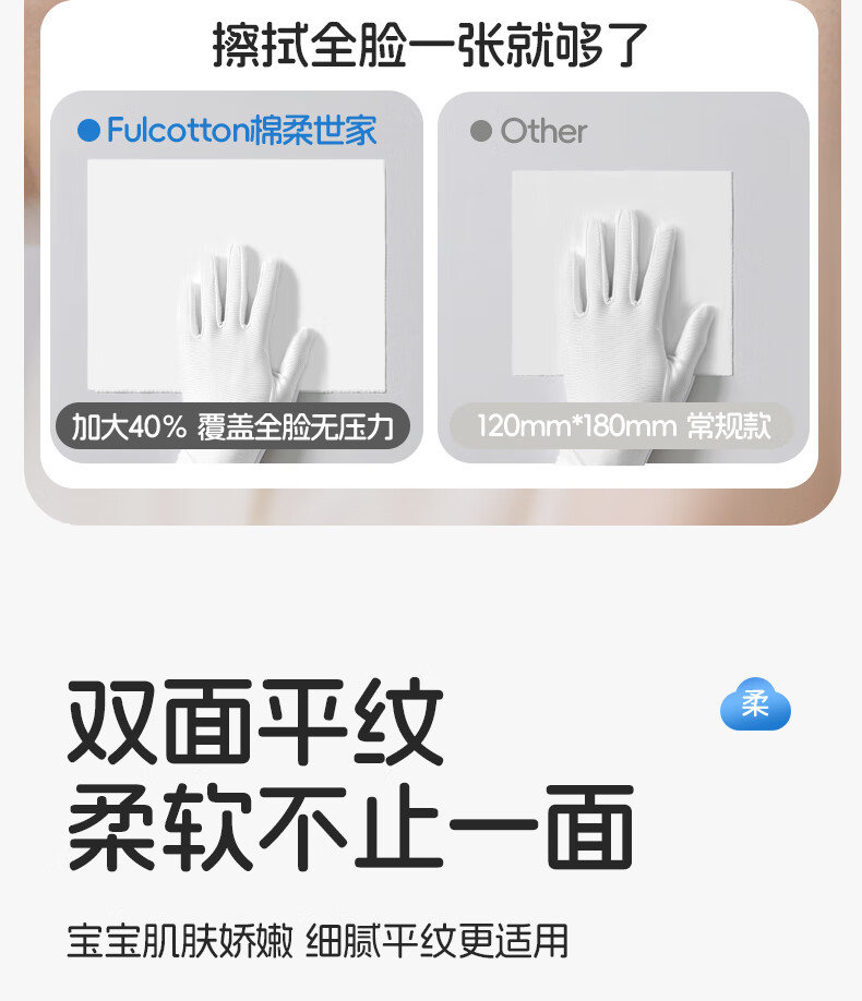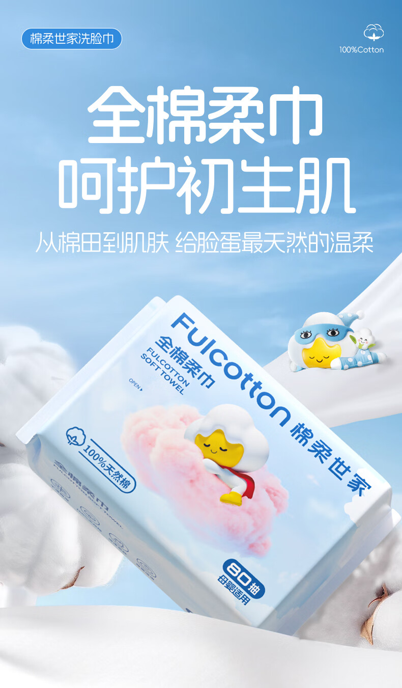 FulCotton棉柔世家 婴儿棉柔巾100%纯棉干湿两用加厚洗脸巾面巾 80抽*1包