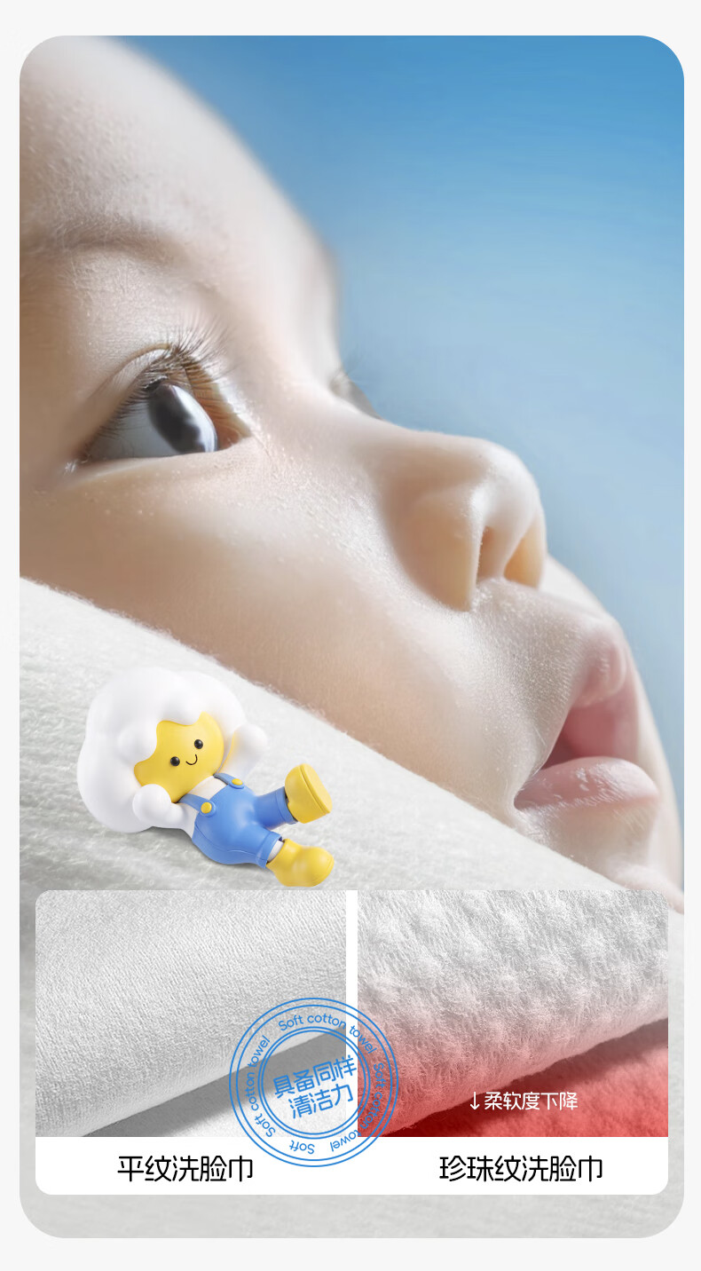 babycare面膜柔巾婴儿干湿两用一次性洗脸巾小熊巾加厚绵柔巾 80抽*1包