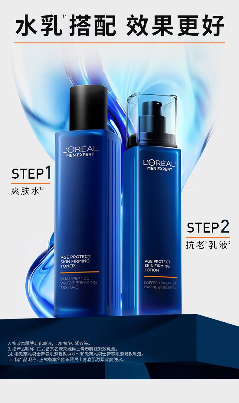 欧莱雅男士青春肌源紧致抗皱淡纹保湿补水乳液秋冬季用护肤品新年礼物