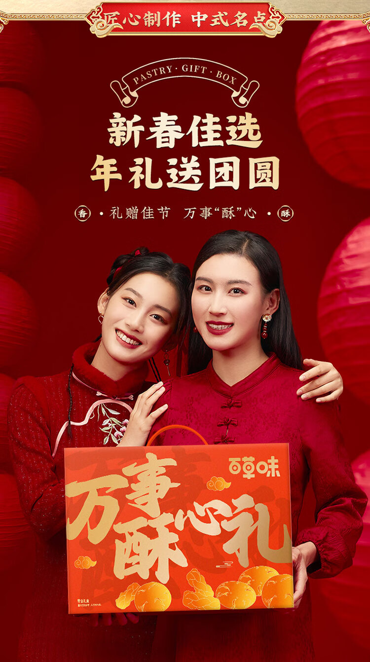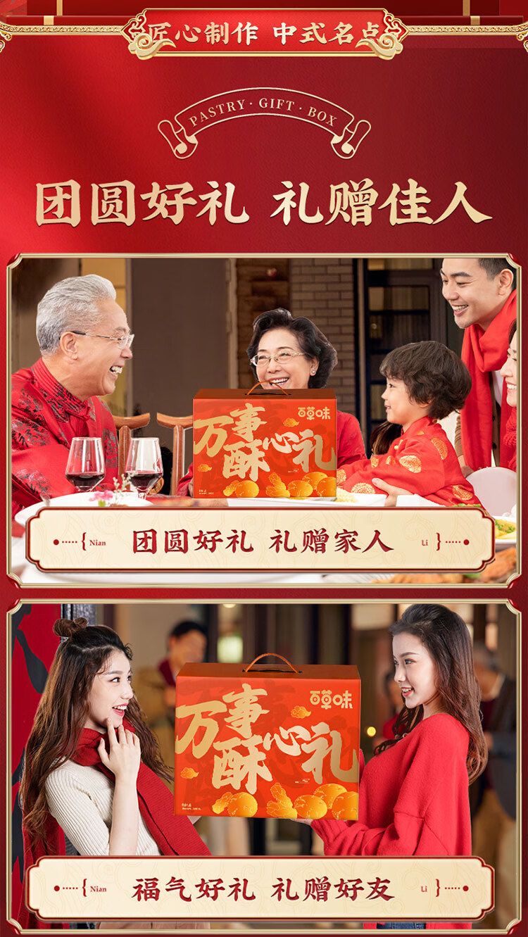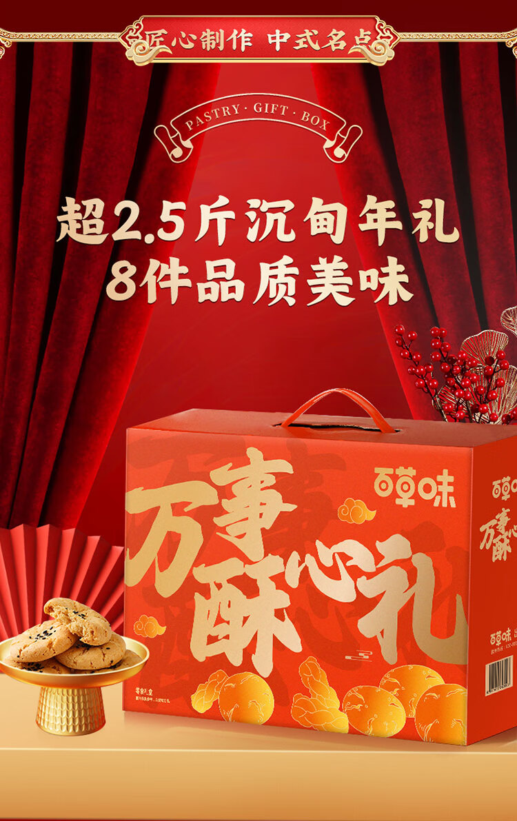百草味万事酥心礼糕点礼盒1420g 饼干休闲零食送礼企业团购年货节