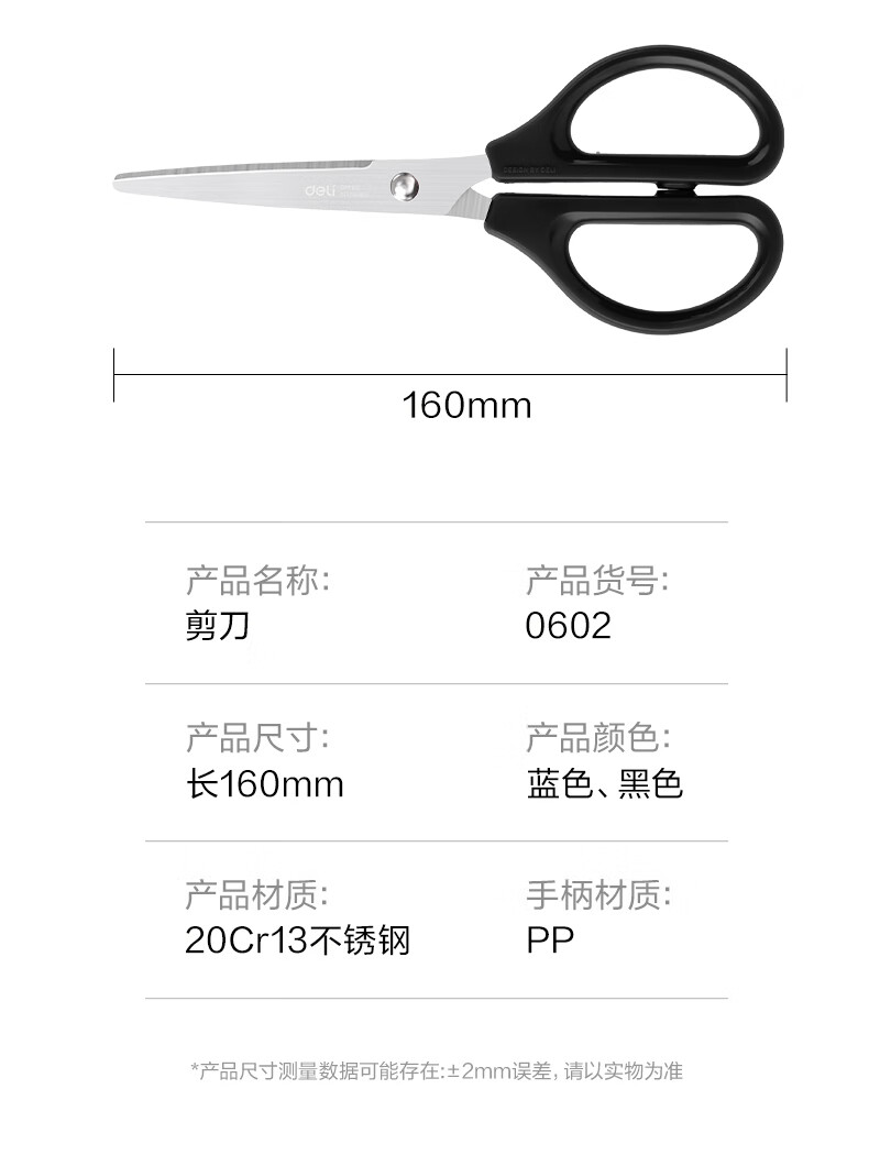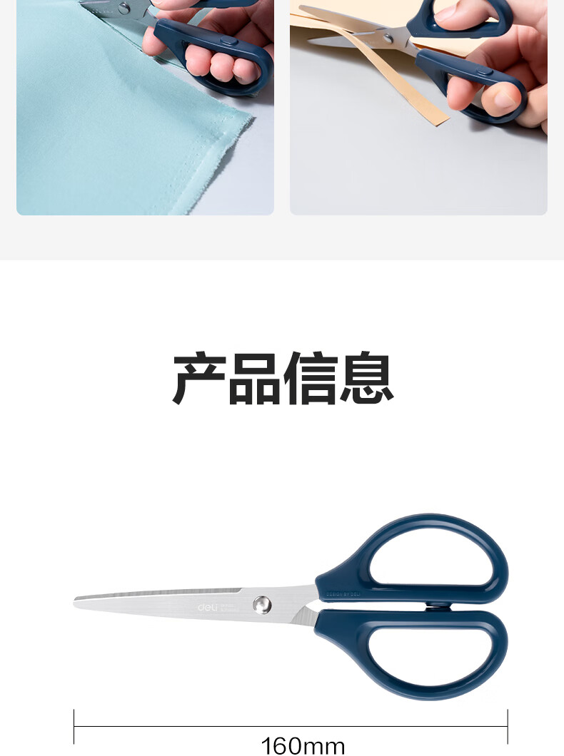 得力(deli)160mm办公生活家用剪刀 小剪子手工剪纸刀 办公用品 蓝色0602