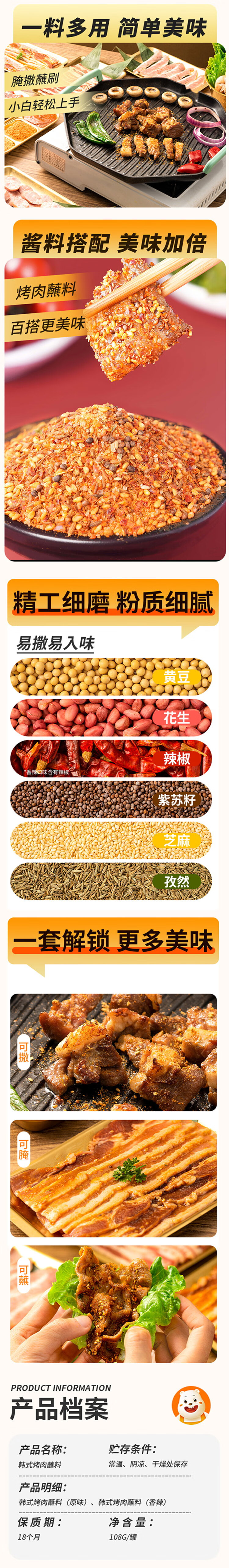 小熊驾到韩式烤肉蘸料108g*2罐(原味+香辣)烧烤料火锅蘸料干料调味料