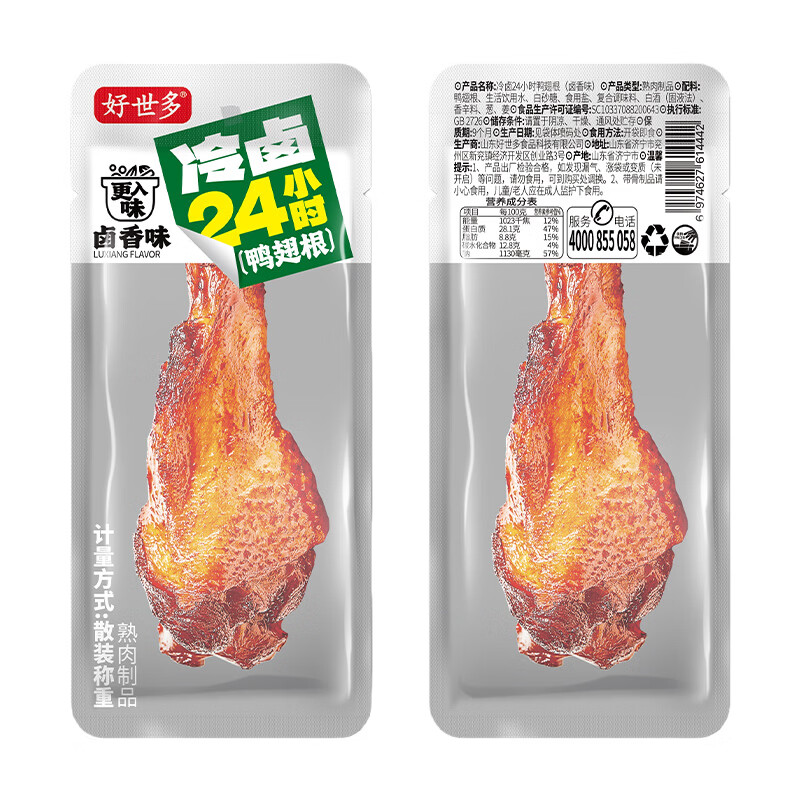 好世多24小时冷卤鸭翅根即食速食 【卤香】24小时冷卤鸭翅根*1